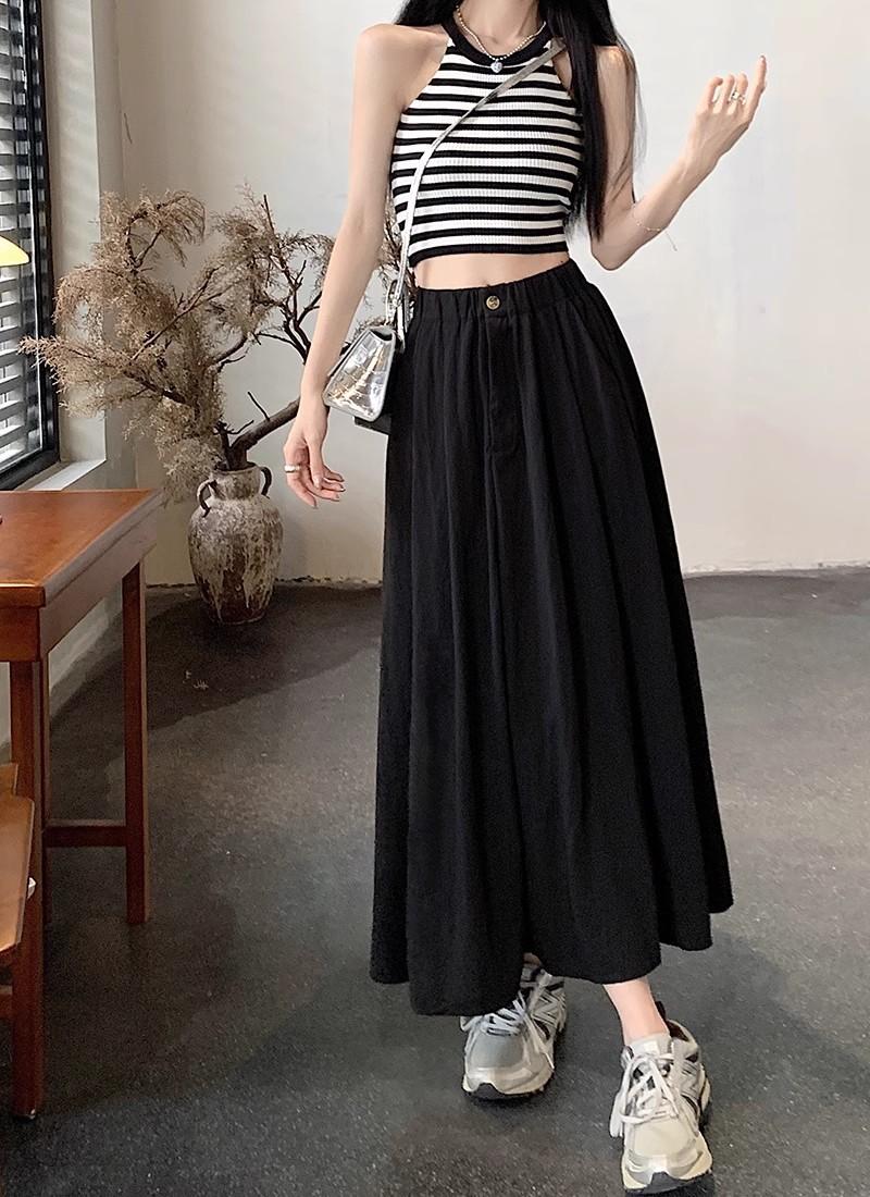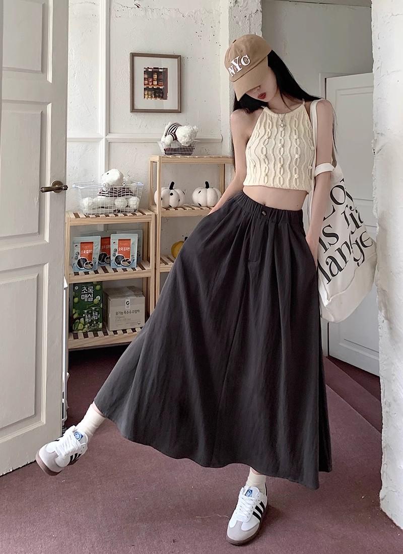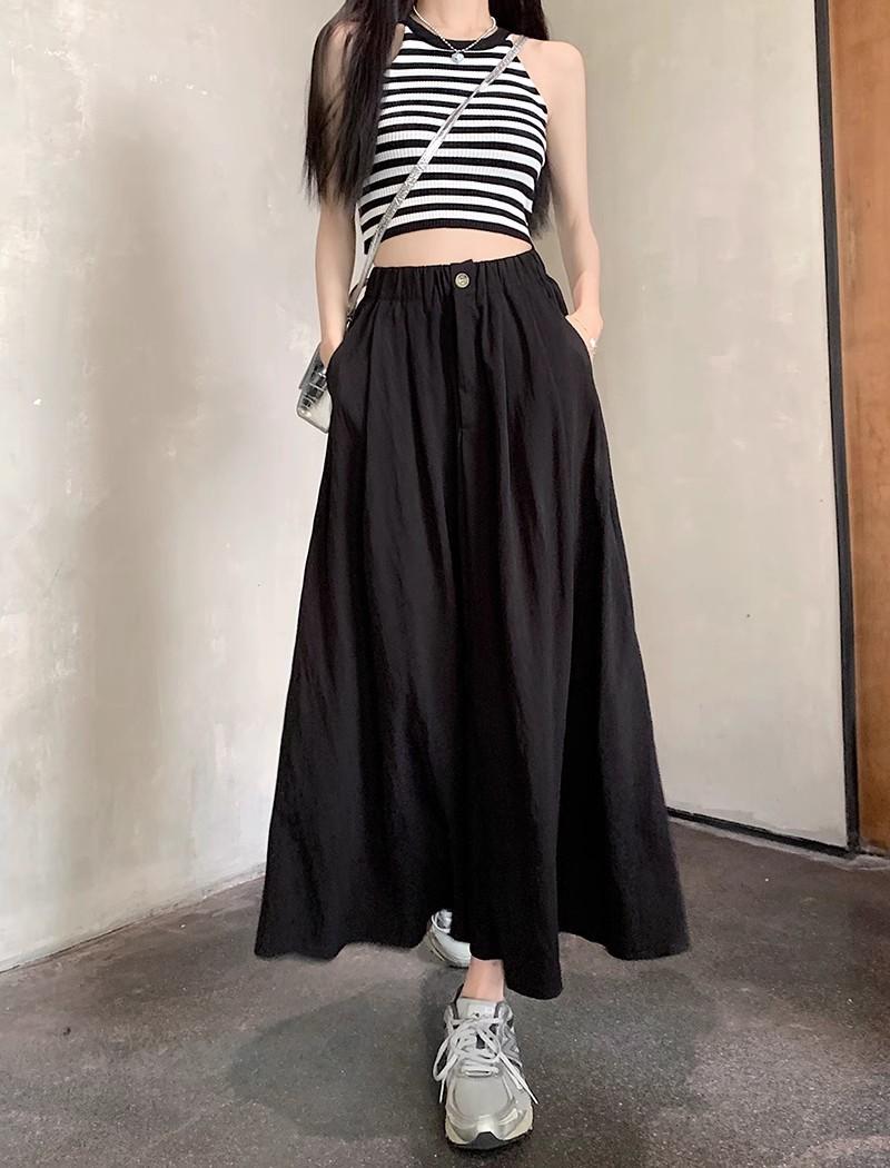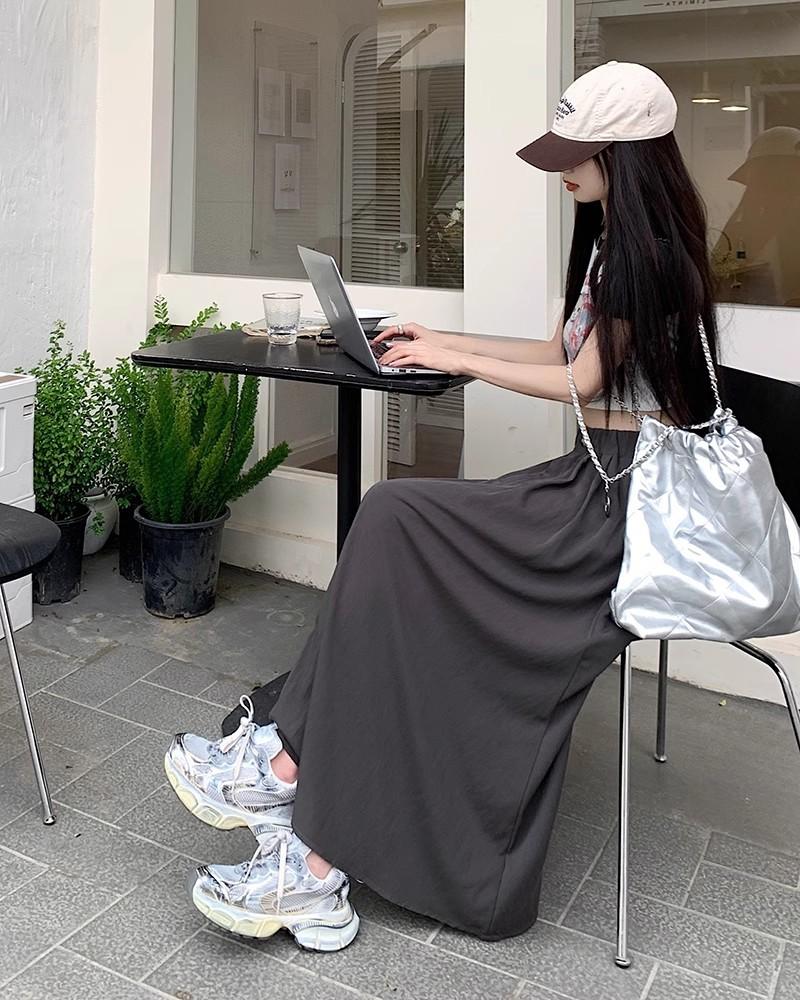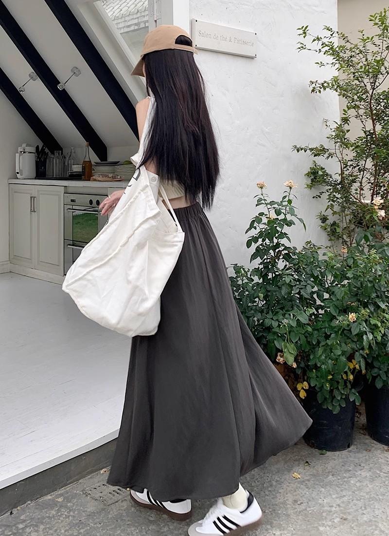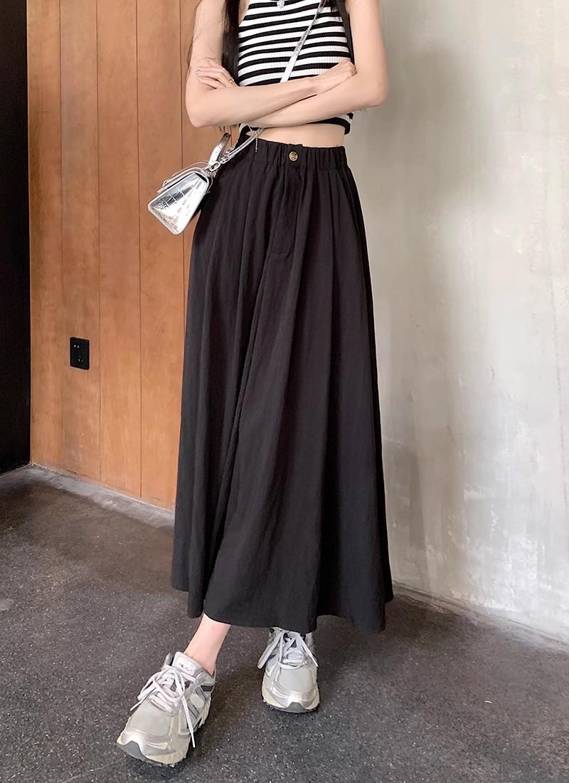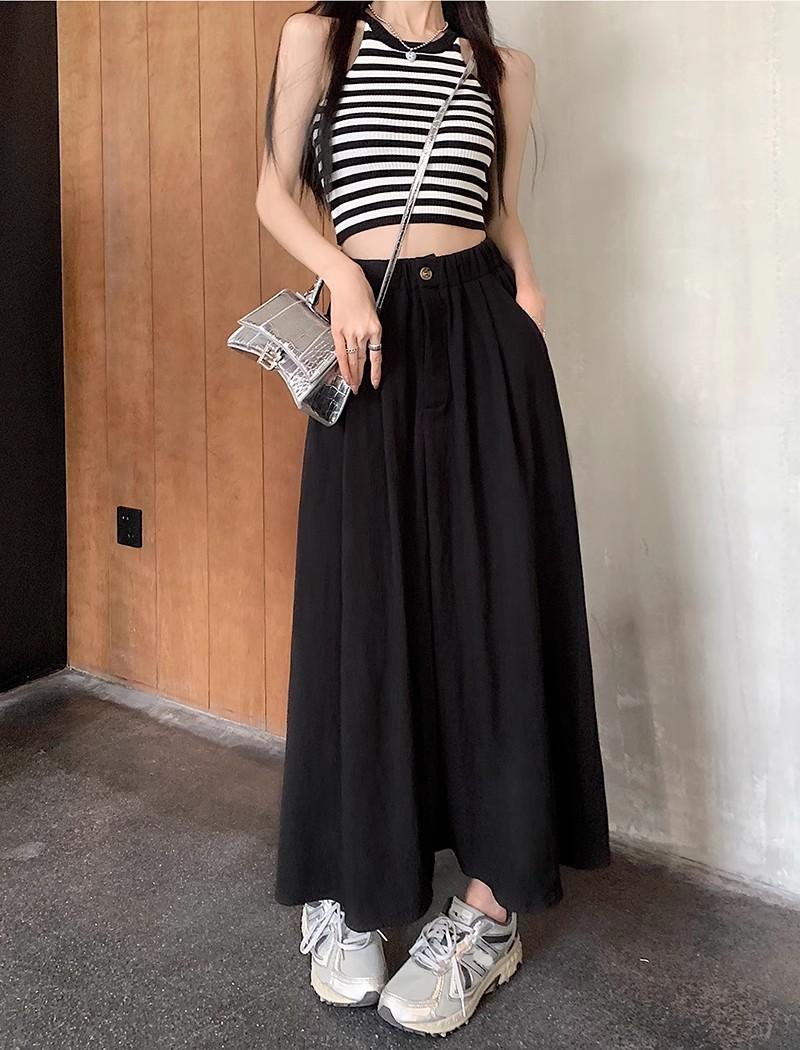 (con pantalones de bolsillo con solapa) Falda Plisada Drapeada de Tencel Seda Helada, Versátil Nueva 2025 Talla Grande Cintura Alta Línea A Falda Larga