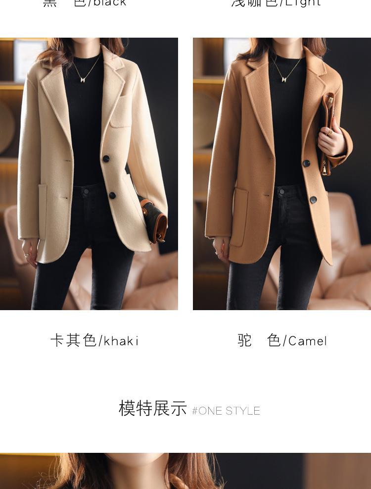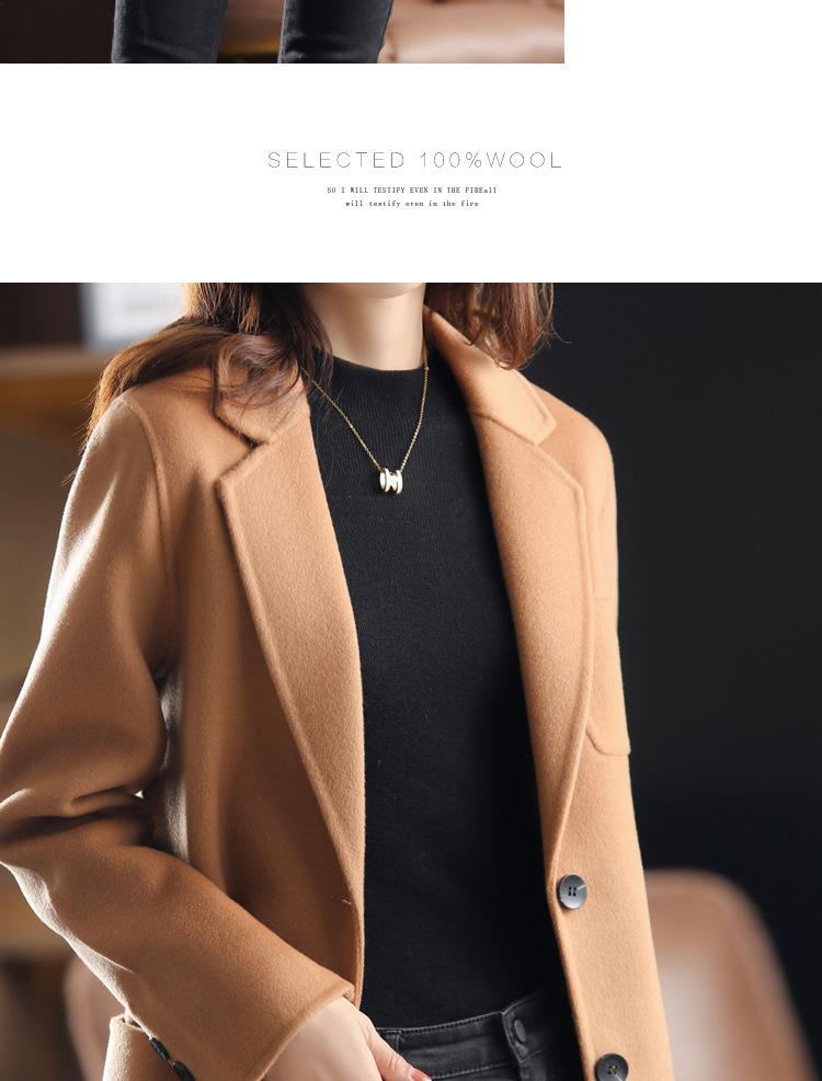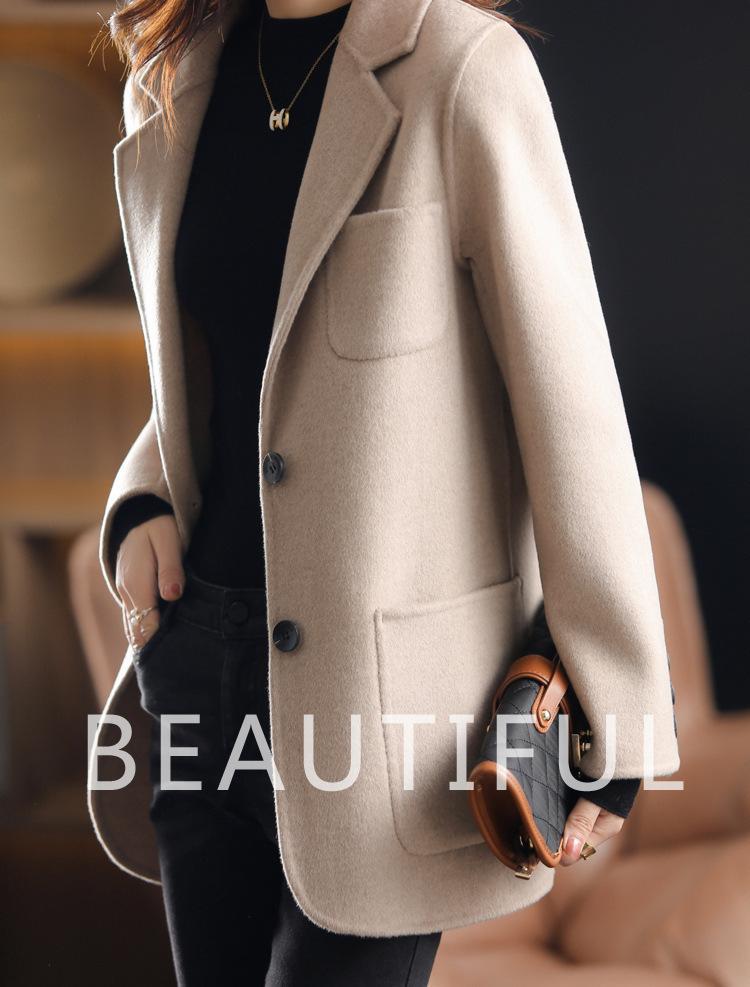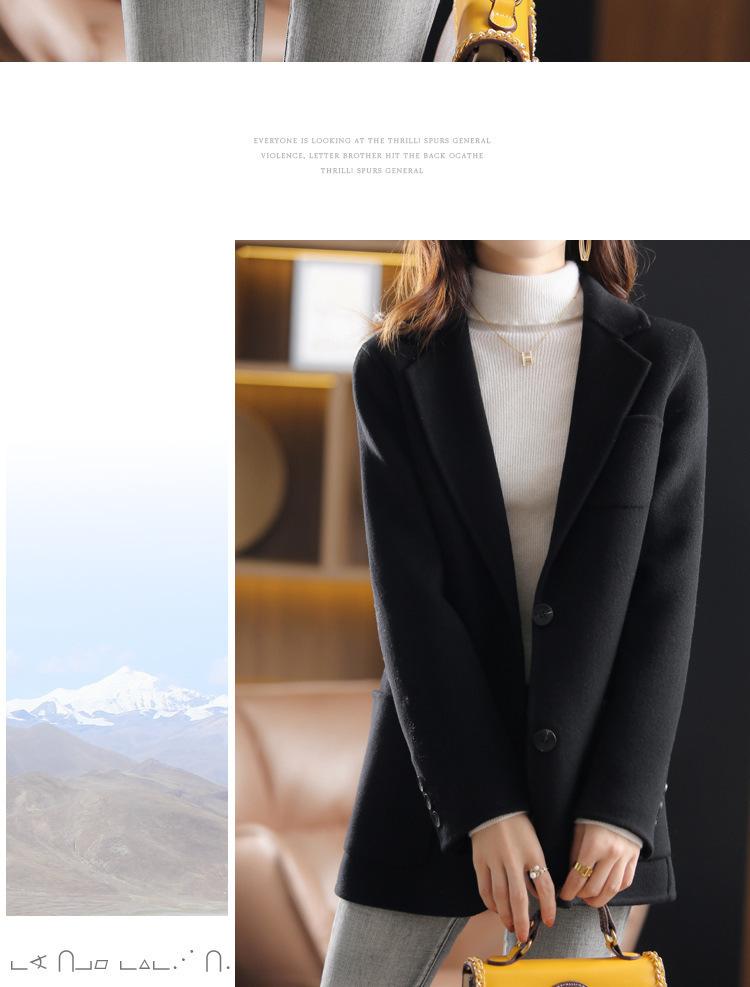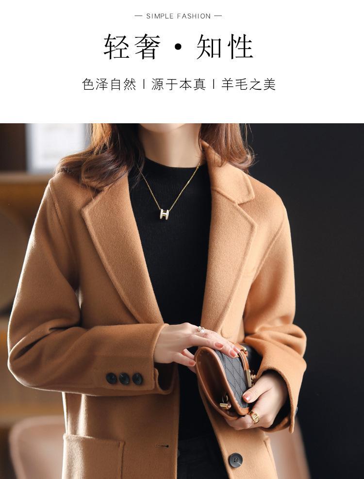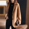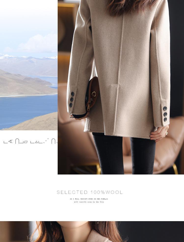 2025 Nuevo Otoño e Invierno Abrigo de Lana para Mujer Color Puro Engrosado Largo Medio Cuello de Traje Chaqueta de Lana para Mujer