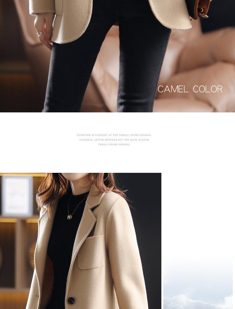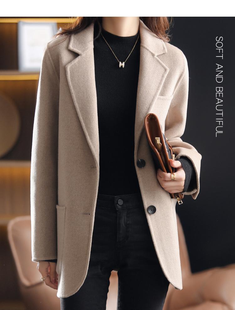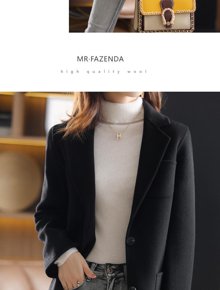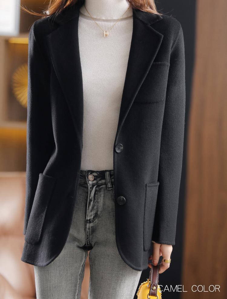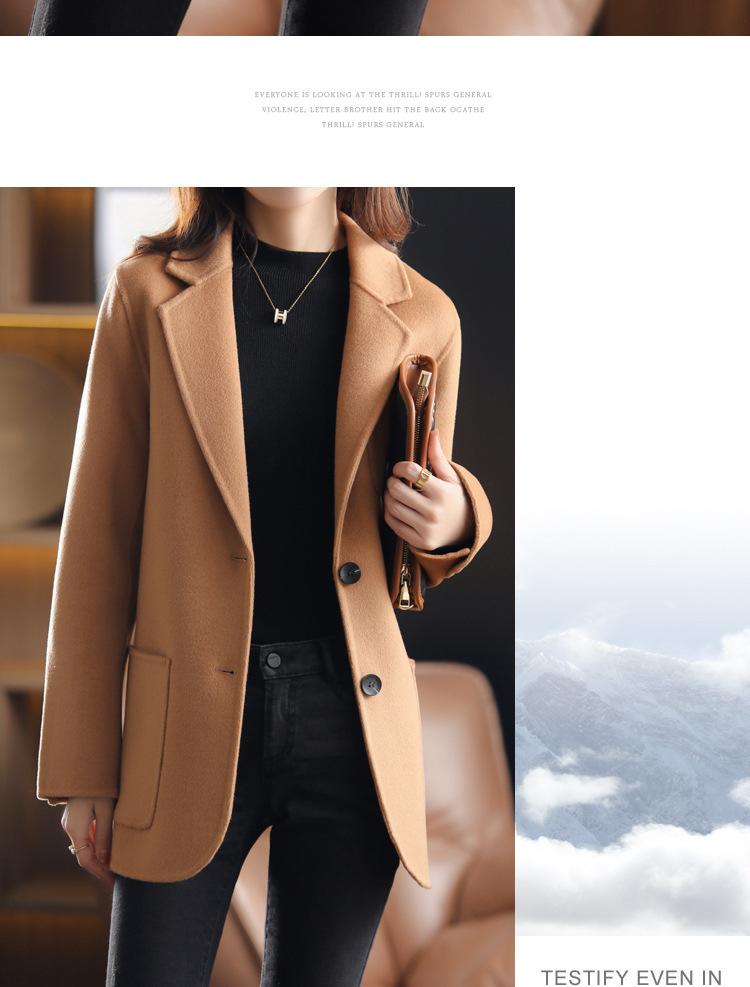2025 Nuevo Otoño e Invierno Abrigo de Lana para Mujer Color Puro Engrosado Largo Medio Cuello de Traje Chaqueta de Lana para Mujer