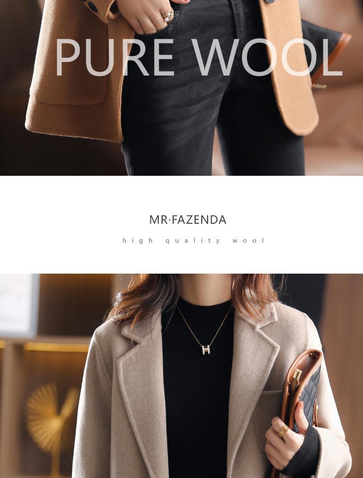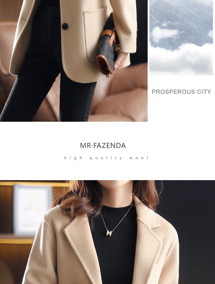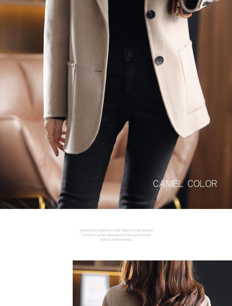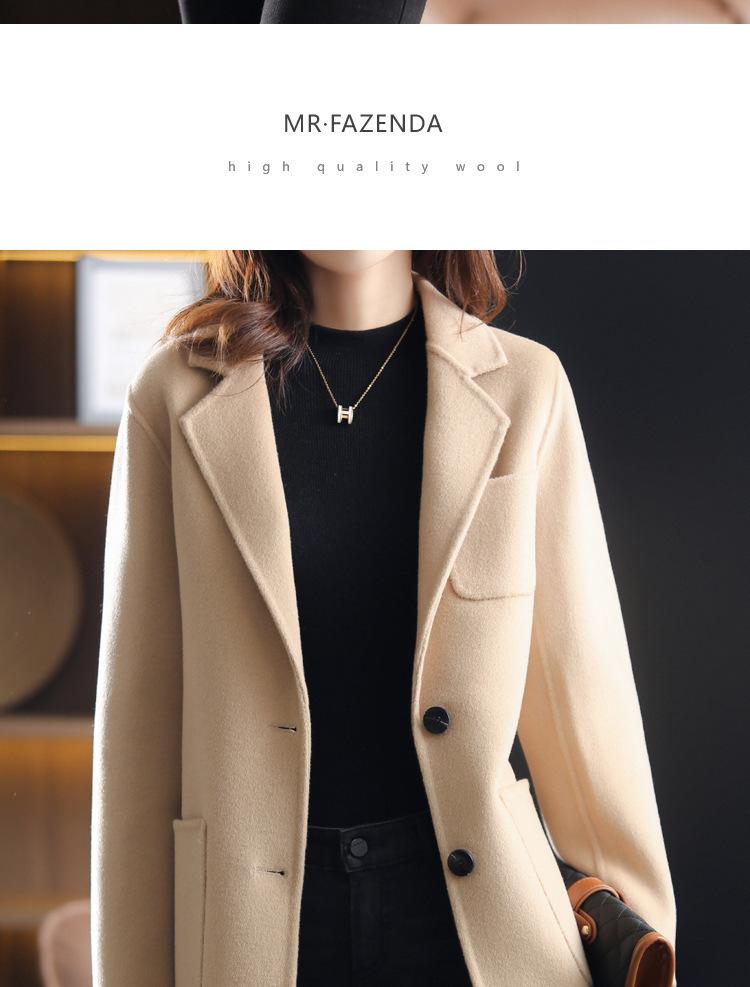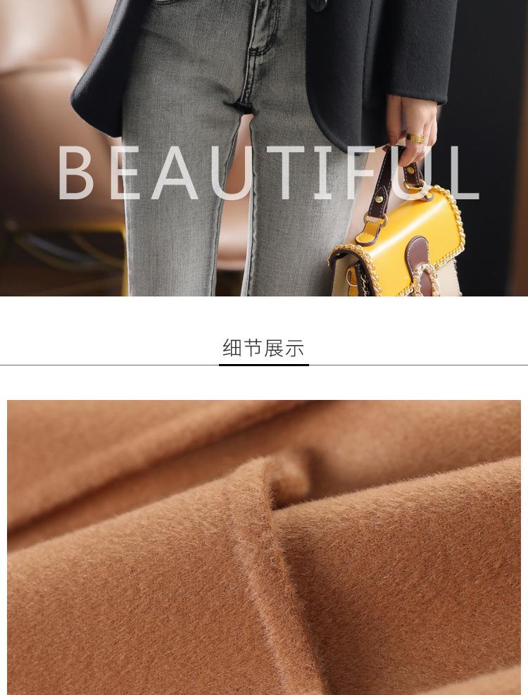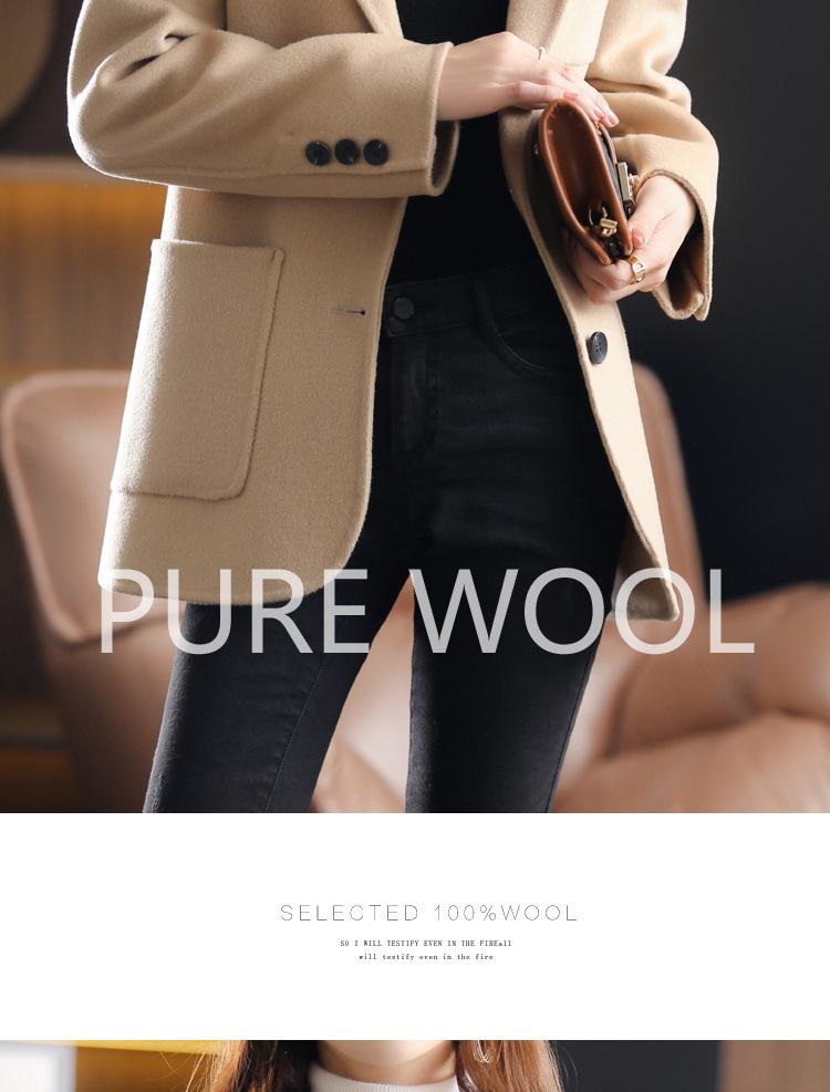 2025 Nuevo Otoño e Invierno Abrigo de Lana para Mujer Color Puro Engrosado Largo Medio Cuello de Traje Chaqueta de Lana para Mujer