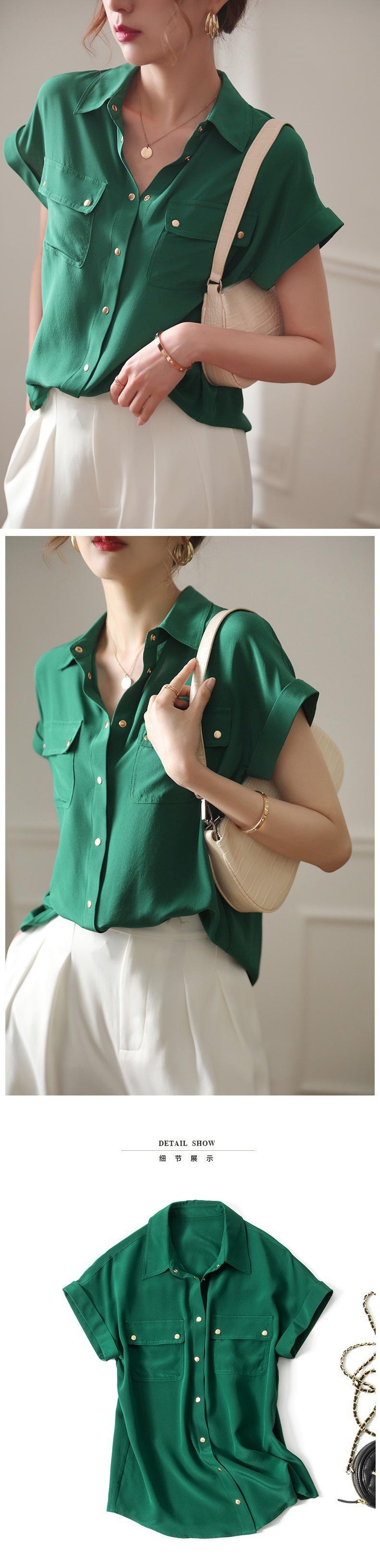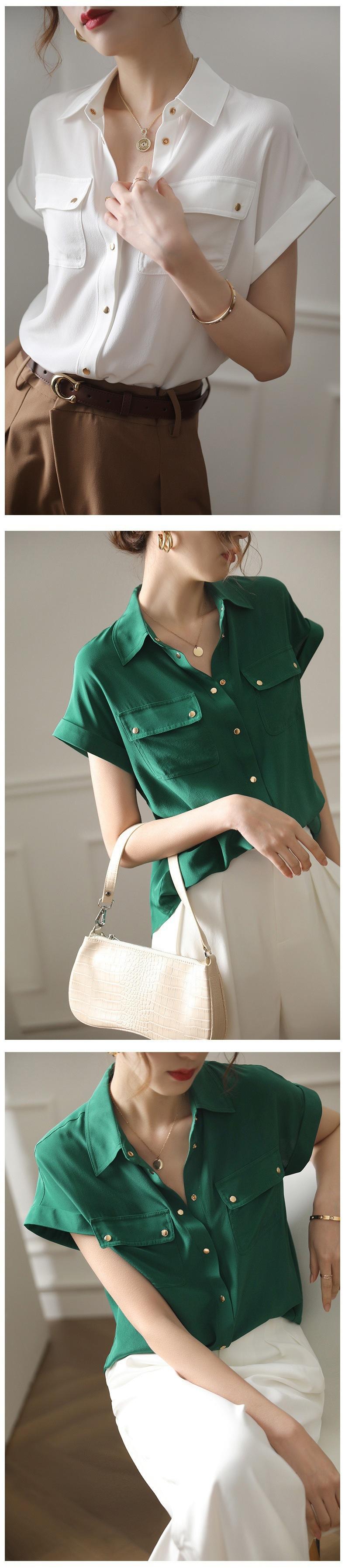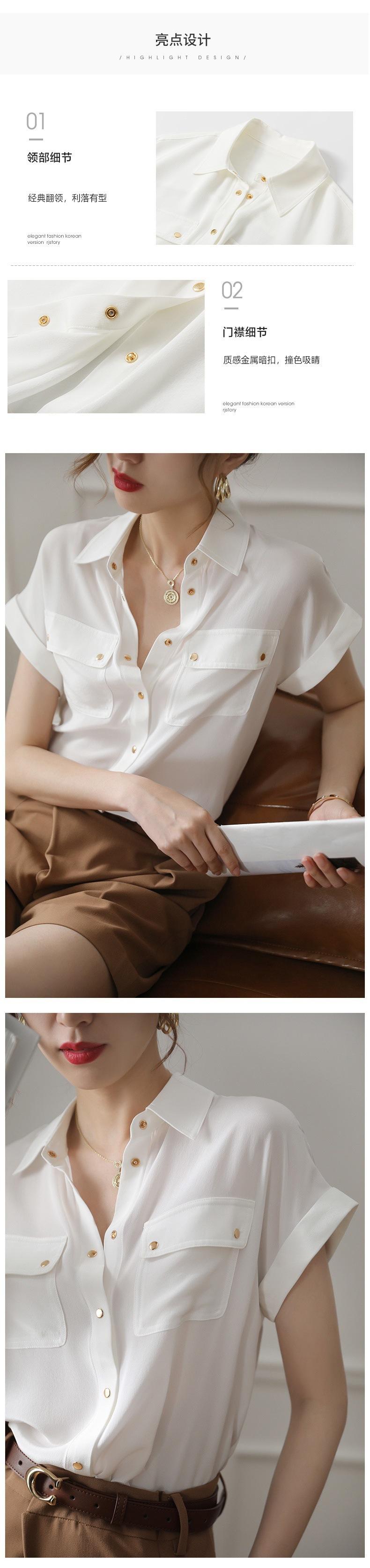 Camisa Blanca de Trabajo para Mujer Verano 2025 Camisa Retro de Manga Corta para Mujer con Solapa Elegante de Nicho Camisa Top