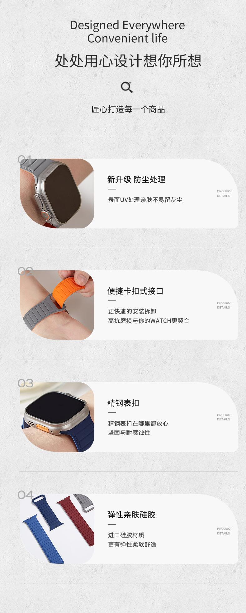 Adecuado para applewatch Correa Apple Watch Correa con hebilla plegable magnética Correa de silicona magnética para reloj inteligente