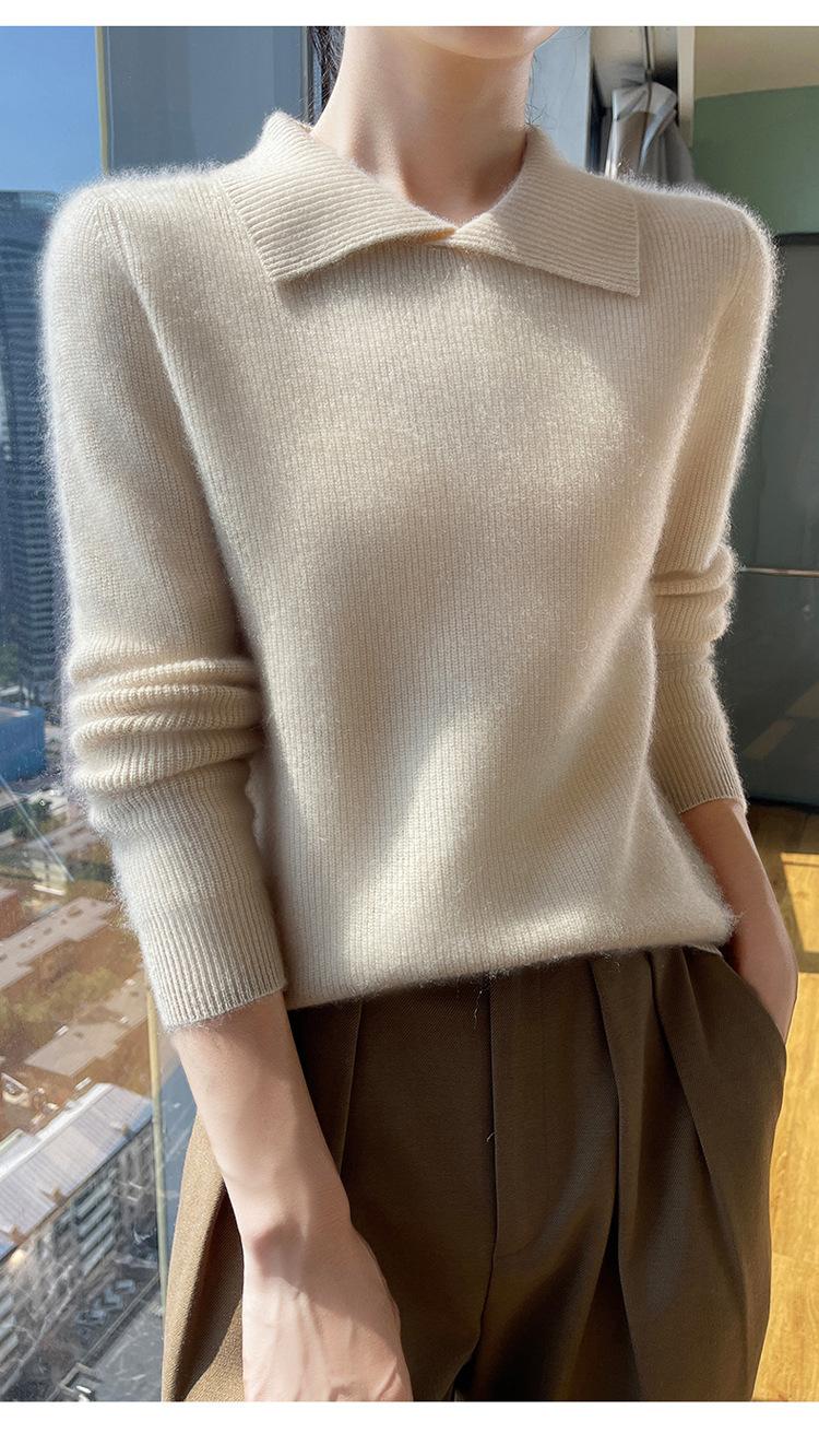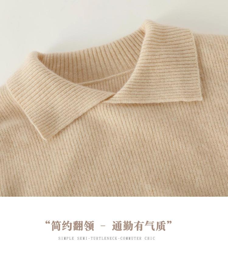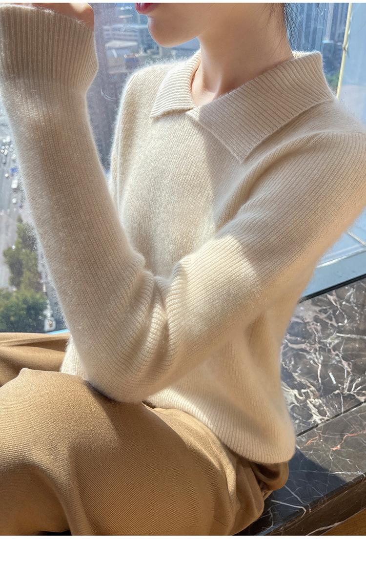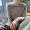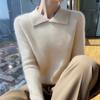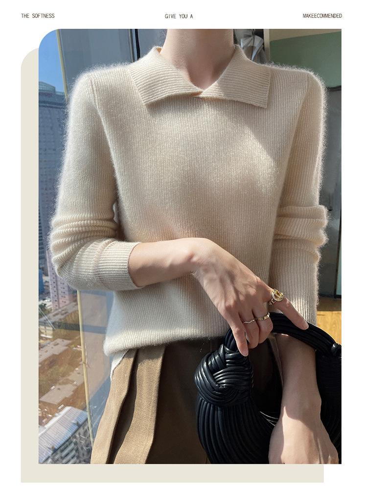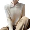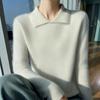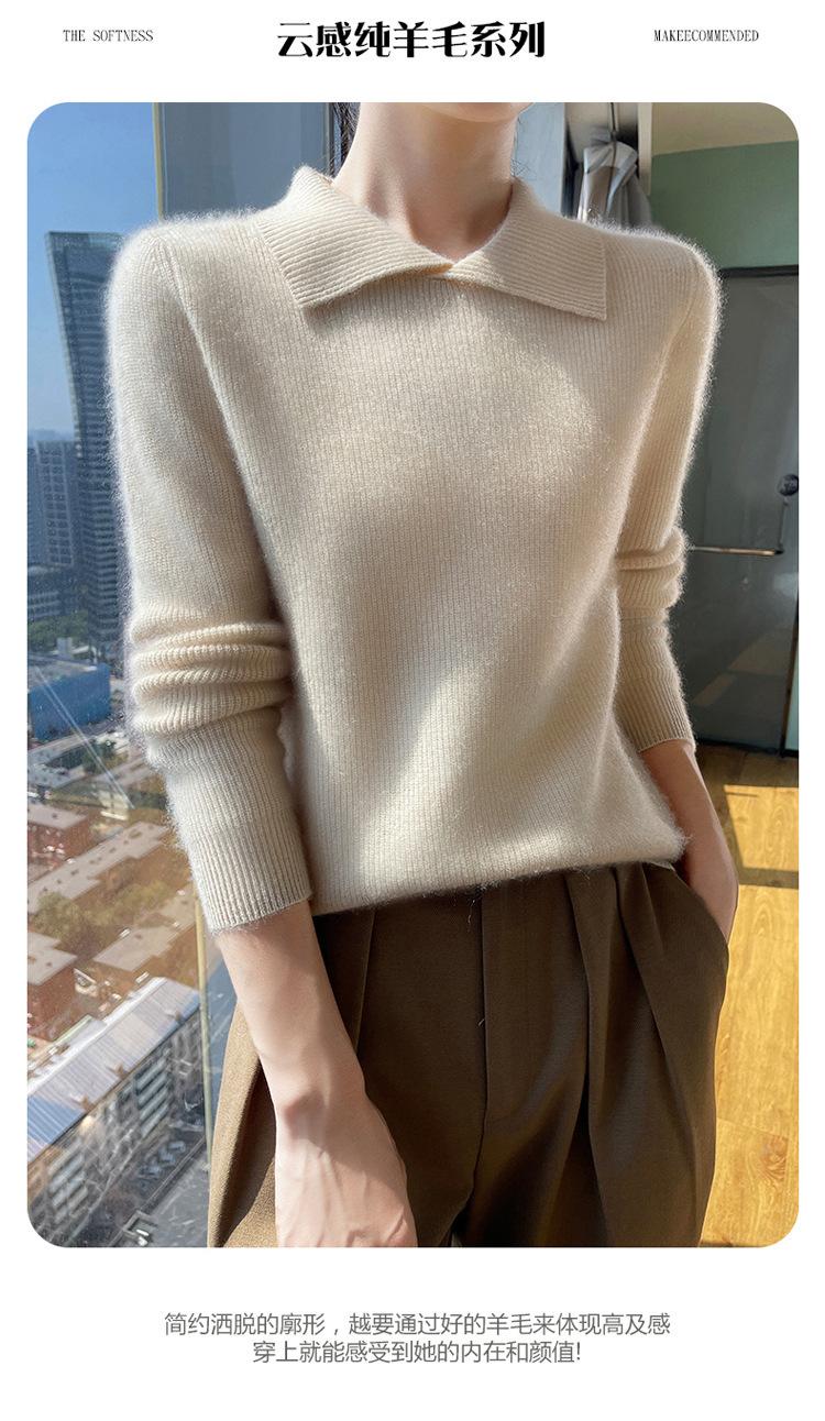 Suéter de Lana 100% Pura Otoño e Invierno Nuevo Suéter de Cuello Solapa Versátil para Mujer Aspecto Adelgazante Tejido de Punto Básico de Color Puro