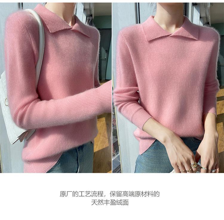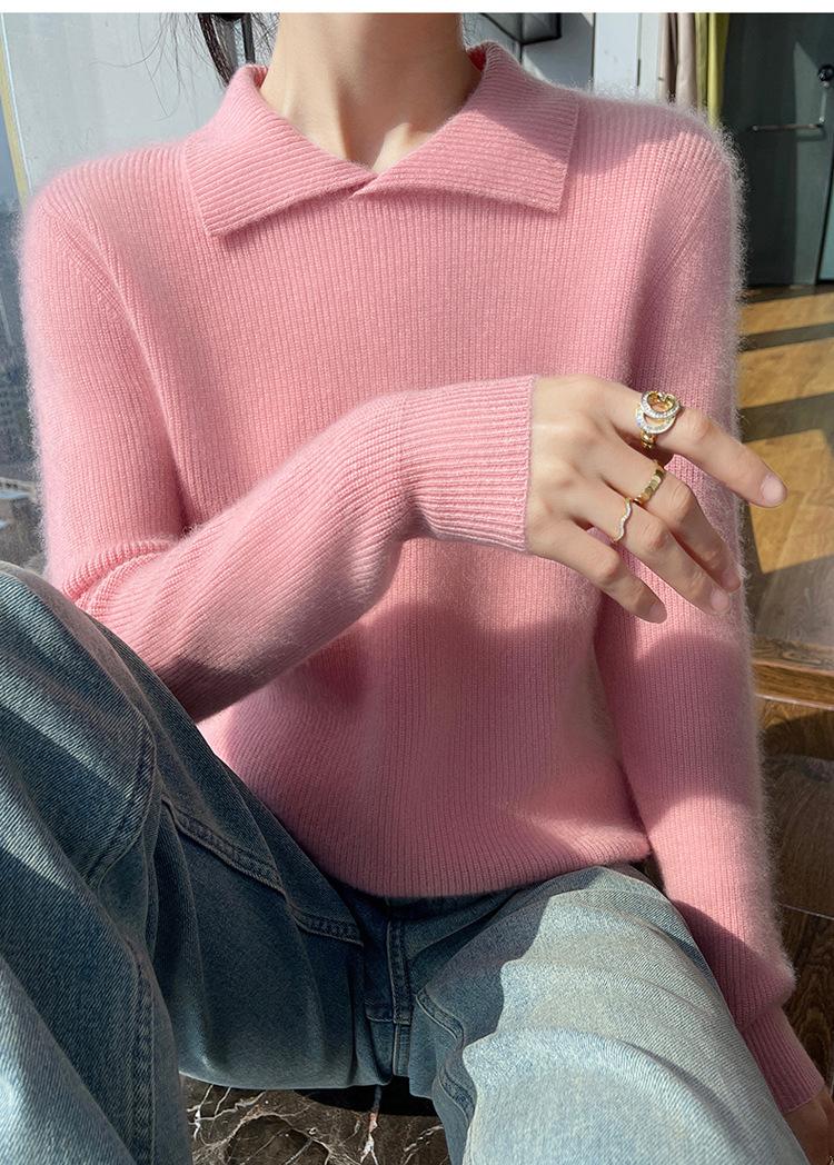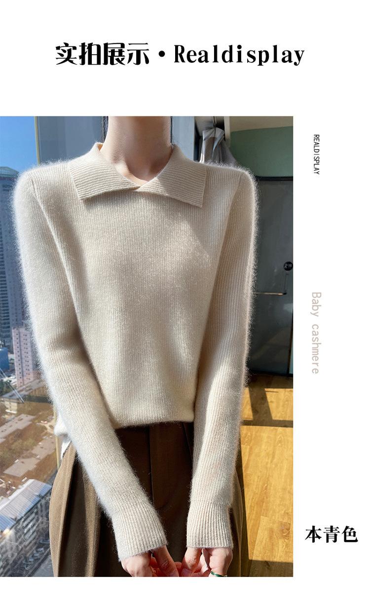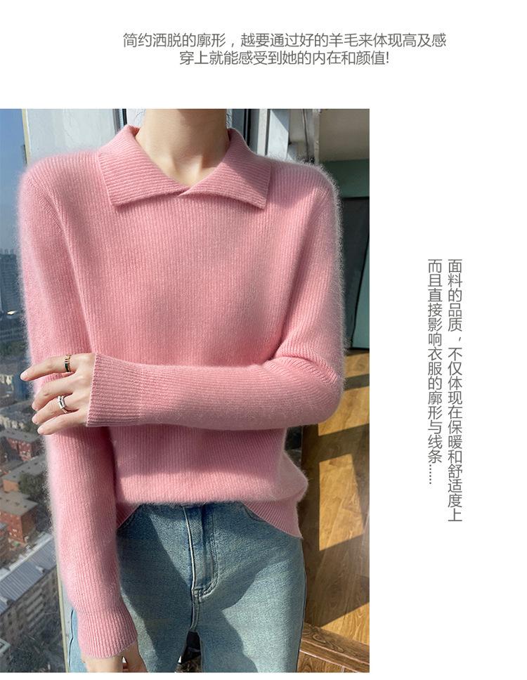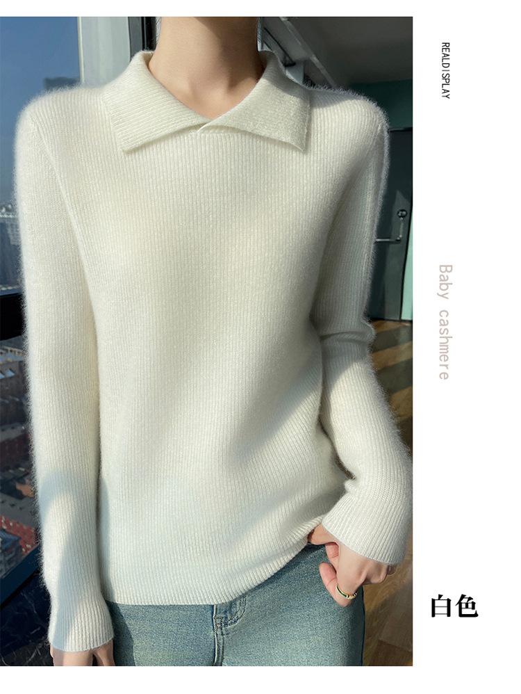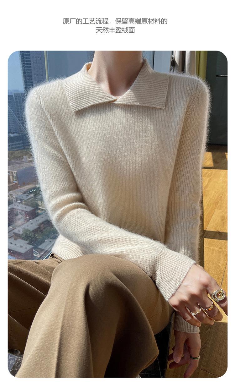 Suéter de Lana 100% Pura Otoño e Invierno Nuevo Suéter de Cuello Solapa Versátil para Mujer Aspecto Adelgazante Tejido de Punto Básico de Color Puro