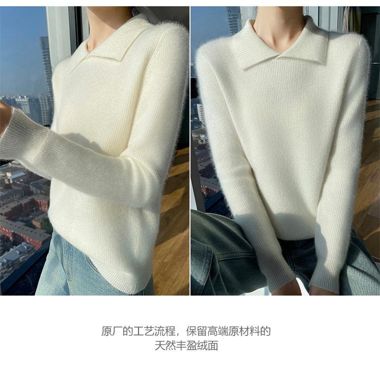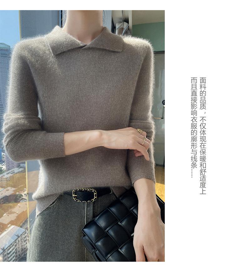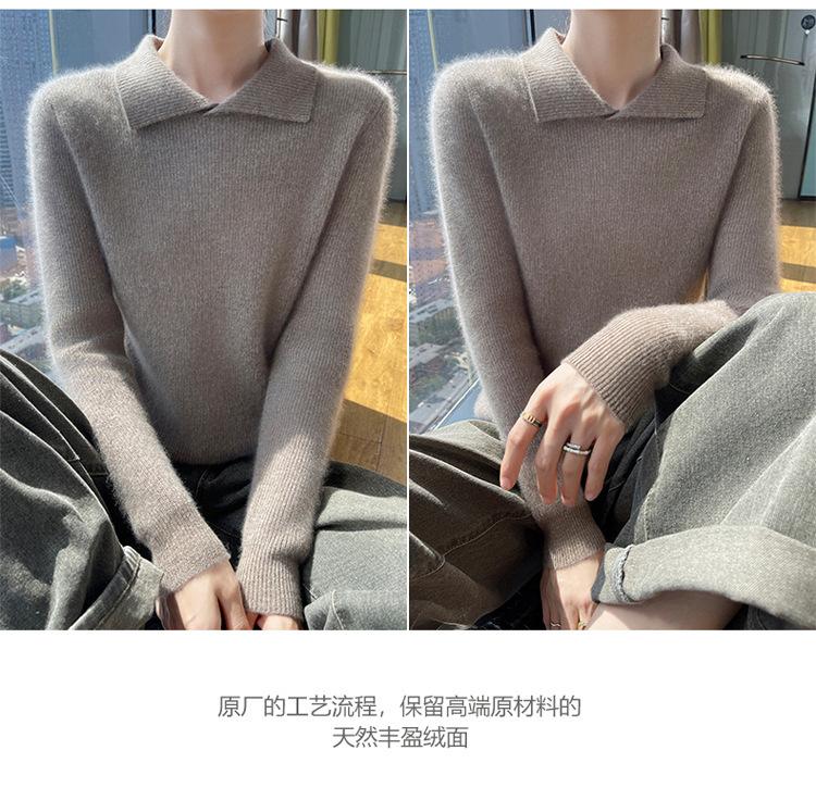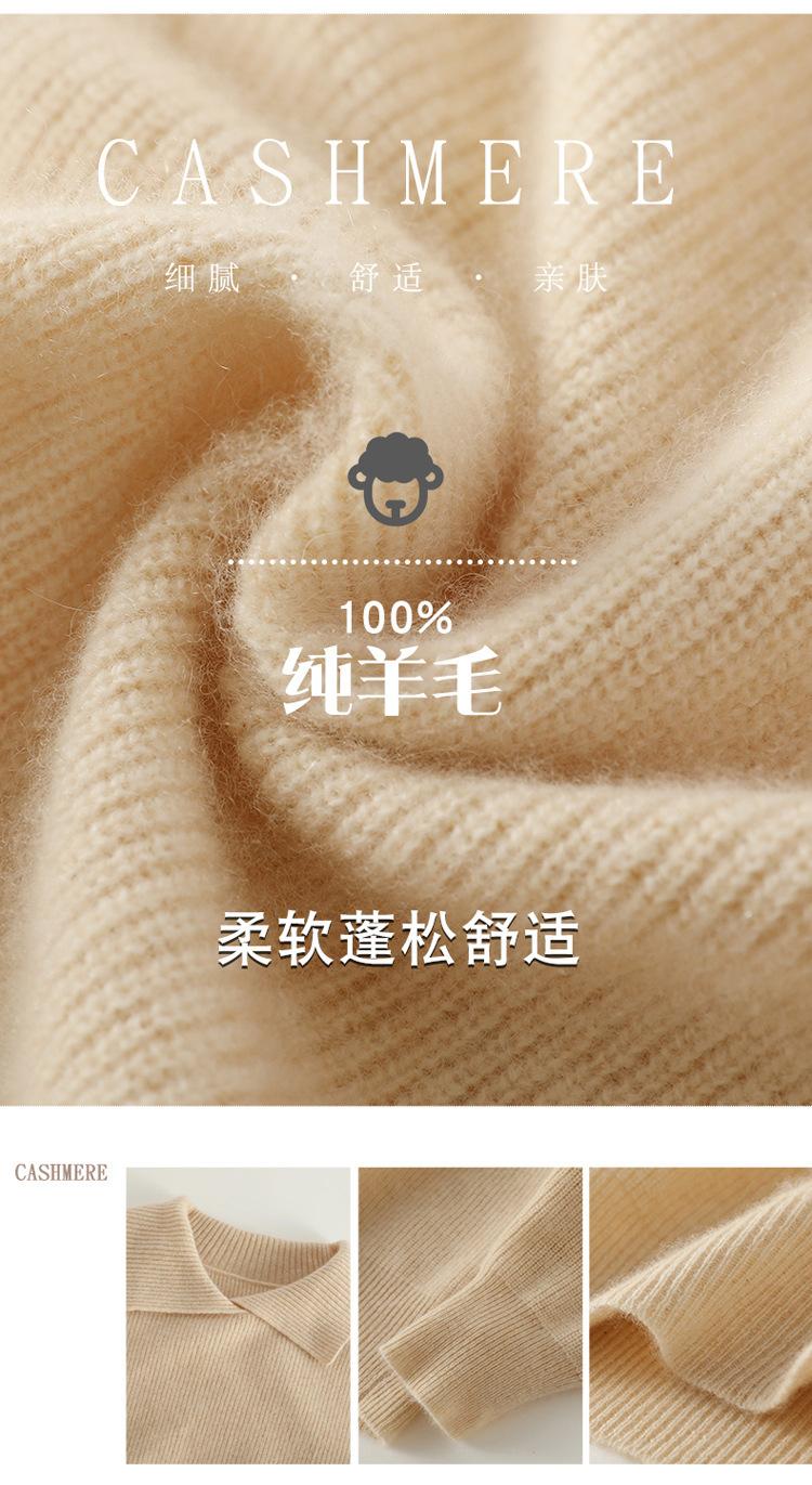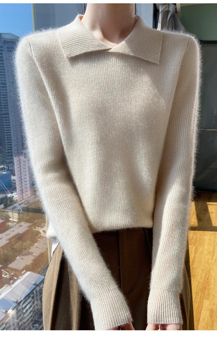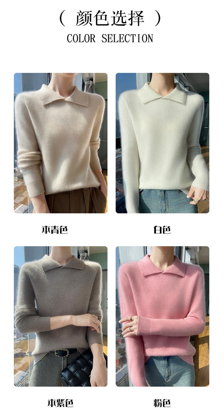 Suéter de Lana 100% Pura Otoño e Invierno Nuevo Suéter de Cuello Solapa Versátil para Mujer Aspecto Adelgazante Tejido de Punto Básico de Color Puro