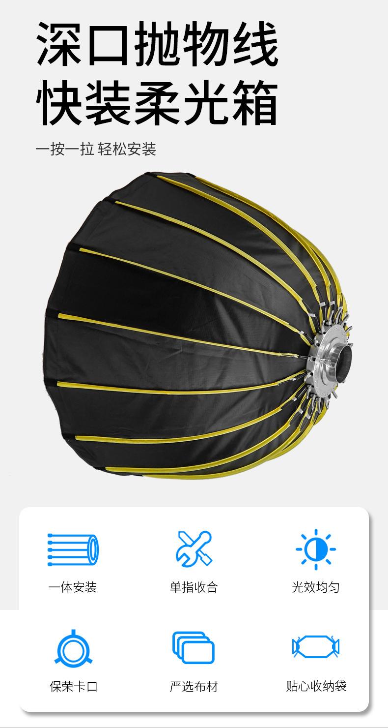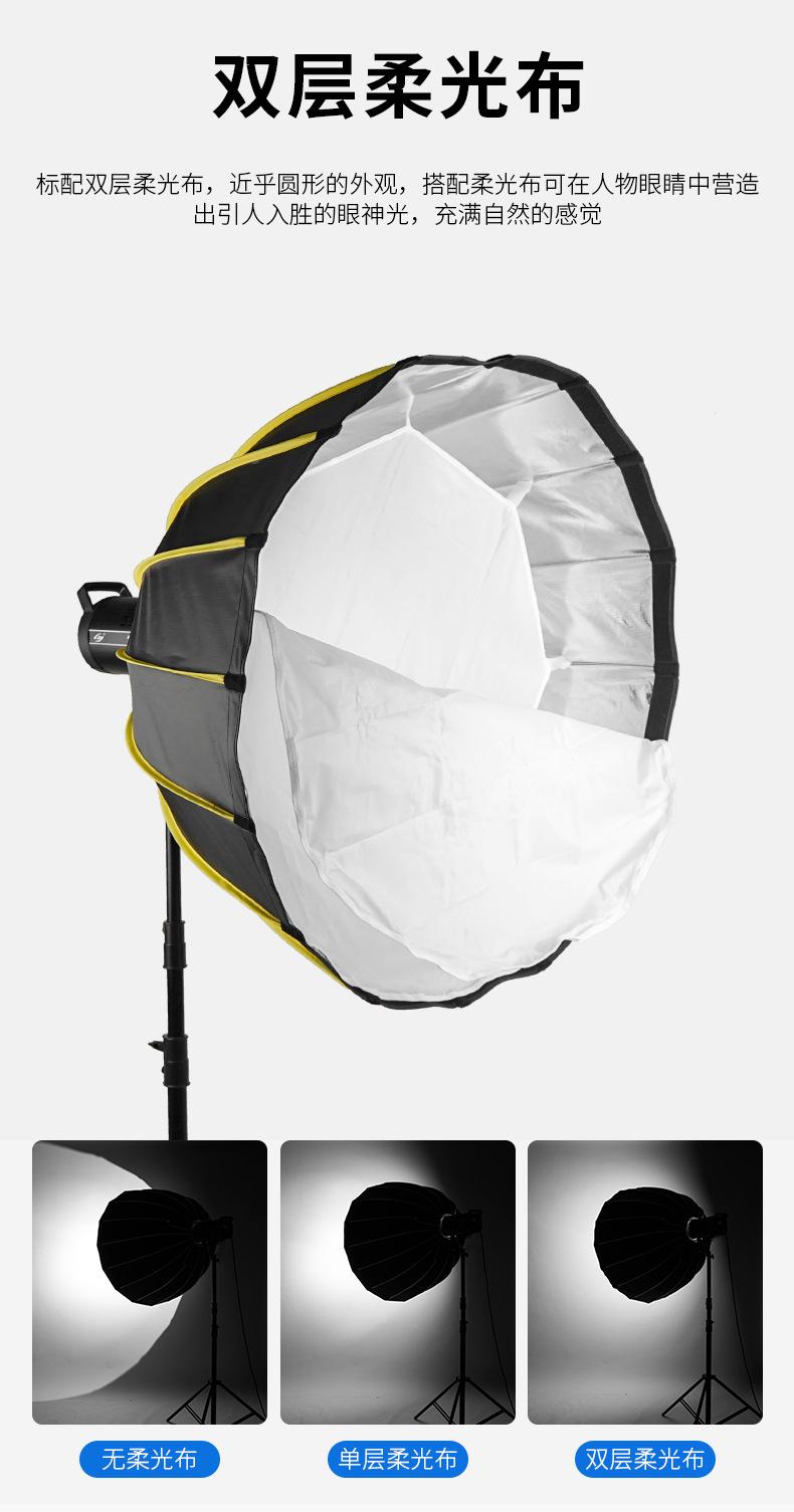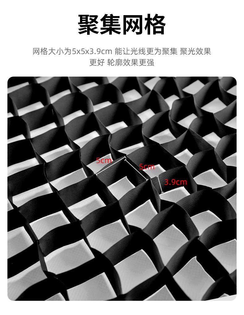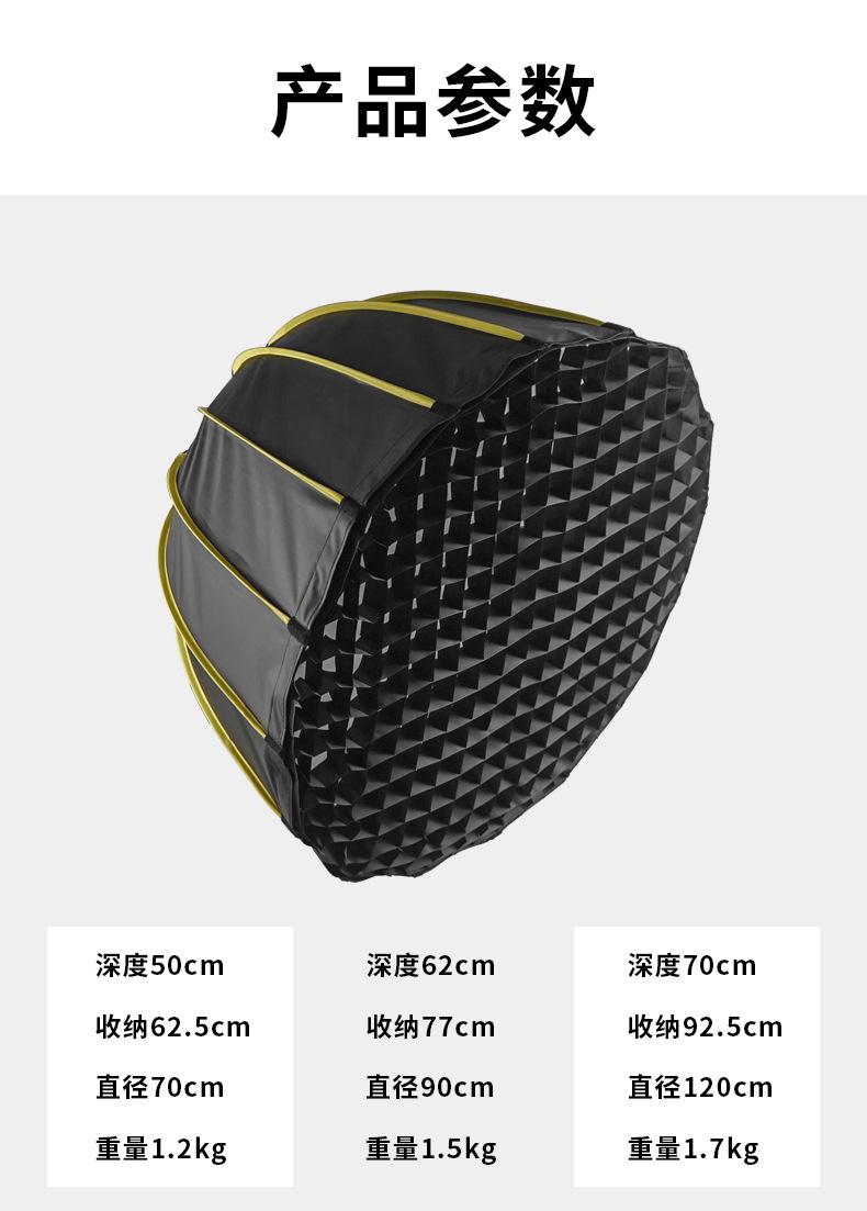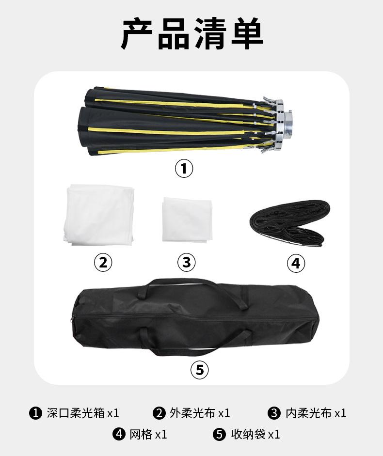 Deep mouth softbox * 1 outer softcloth * 1 inner softcloth * 1 grid * 1 storage bag * 1