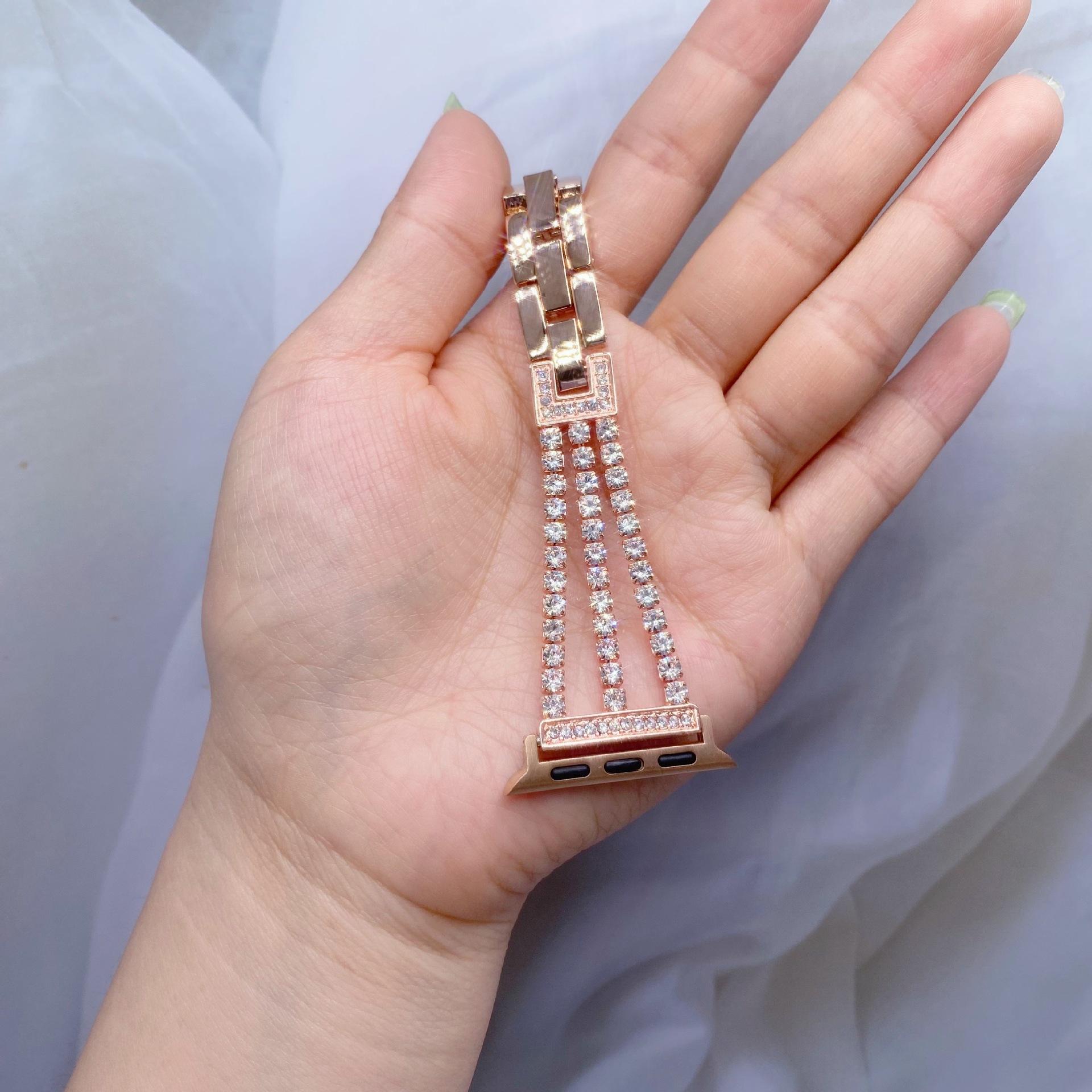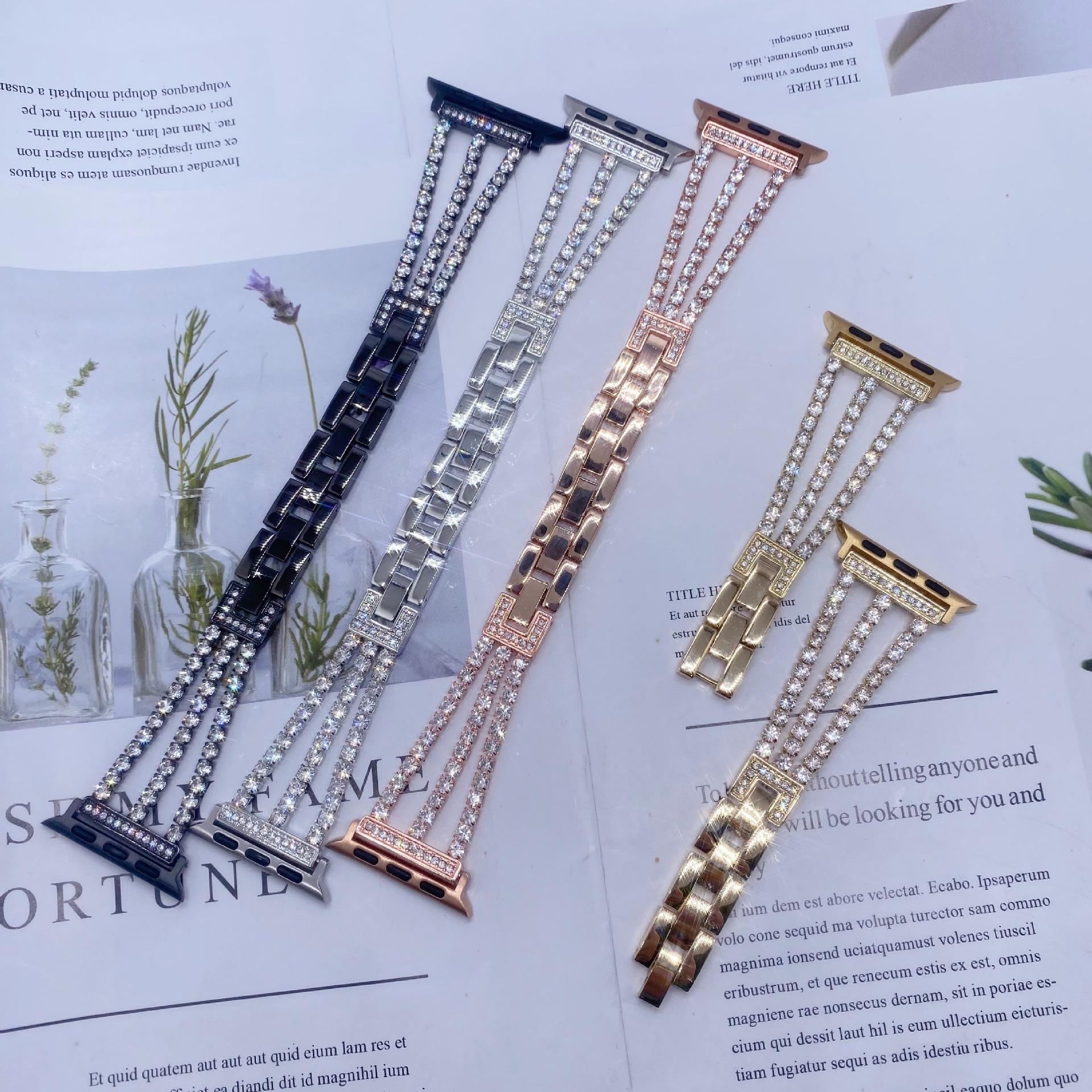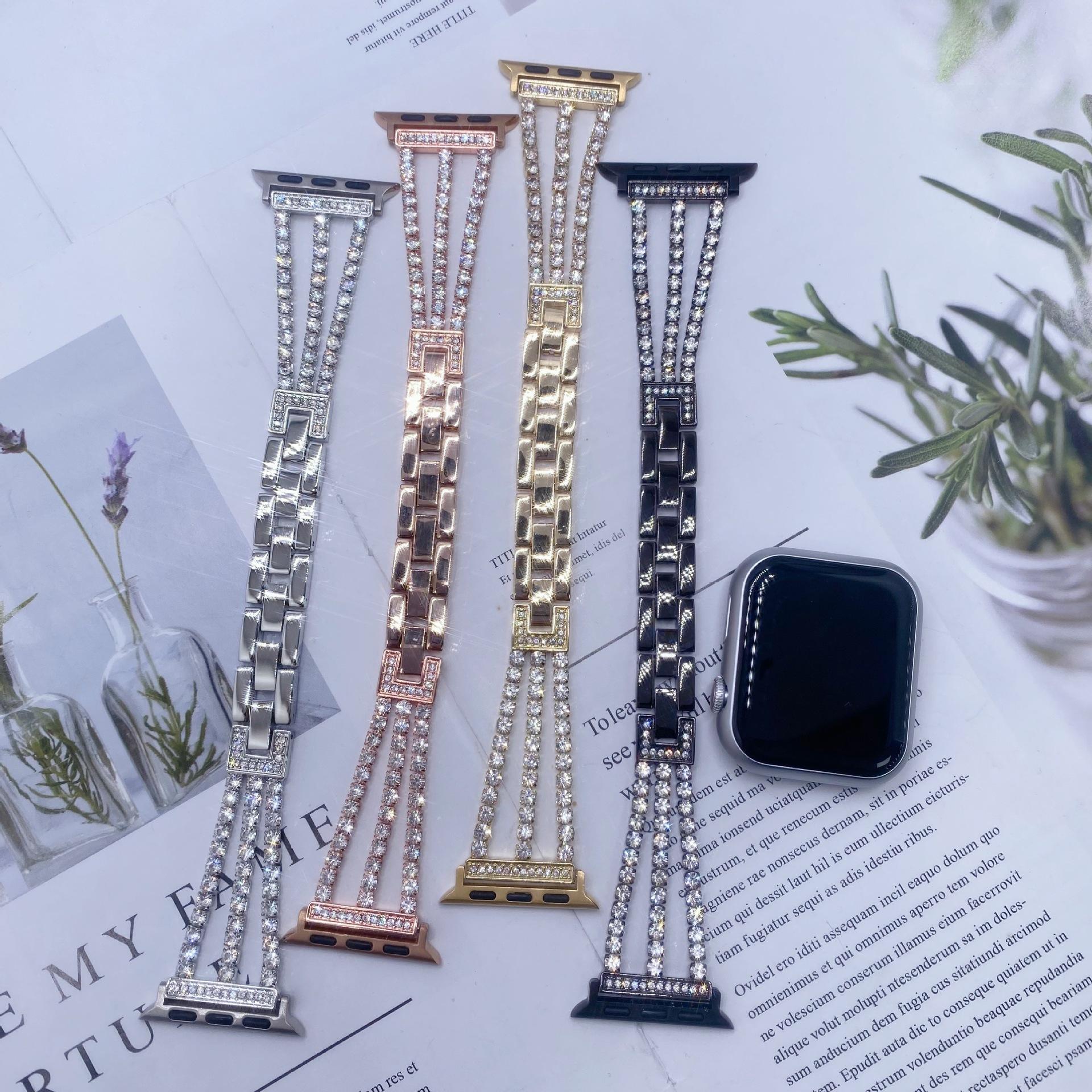 Adecuado para Apple Watch iWatch Correa Tres Cadenas Metal Diamante Correa de Reloj Applewatch Spot Trendy