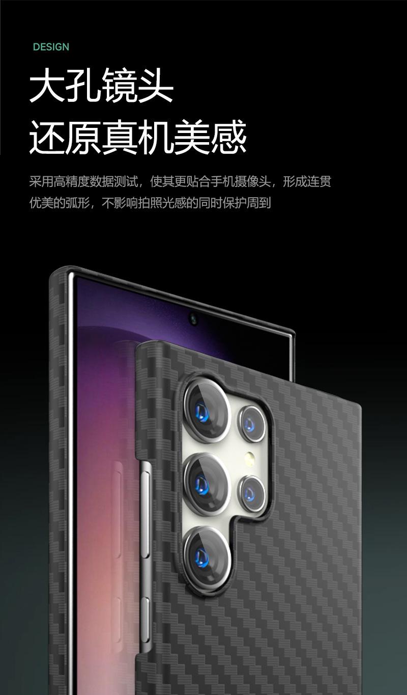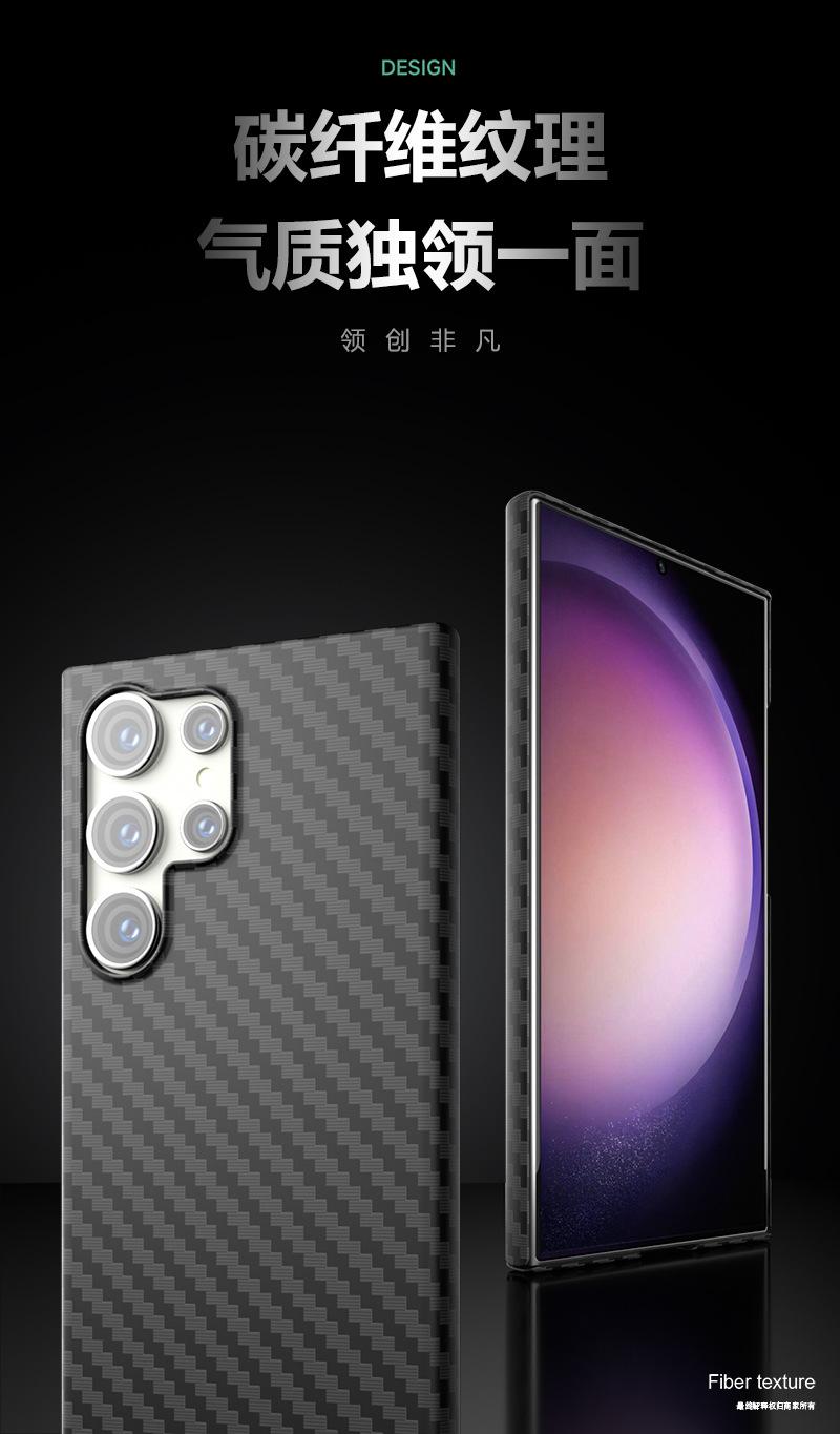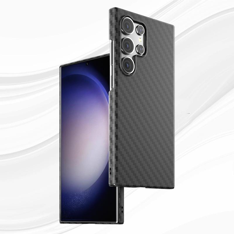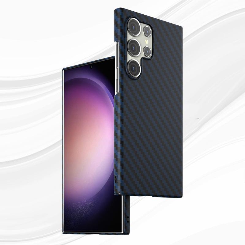 Fibra de carbono Kevlar para funda de teléfono Samsung S24 Ultra S23 + nueva funda protectora resistente a caídas de agujero grande S22