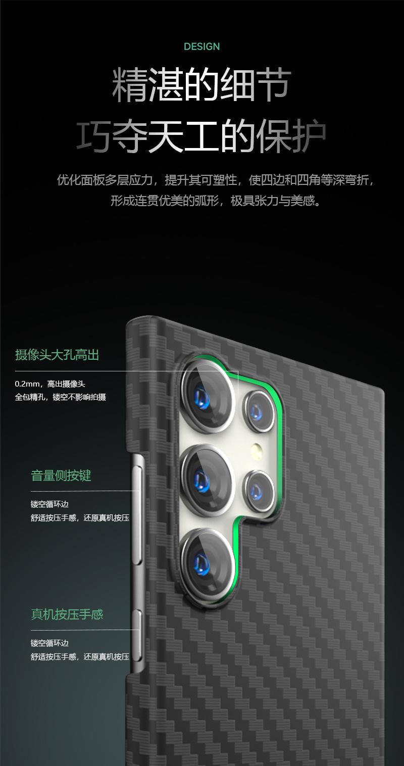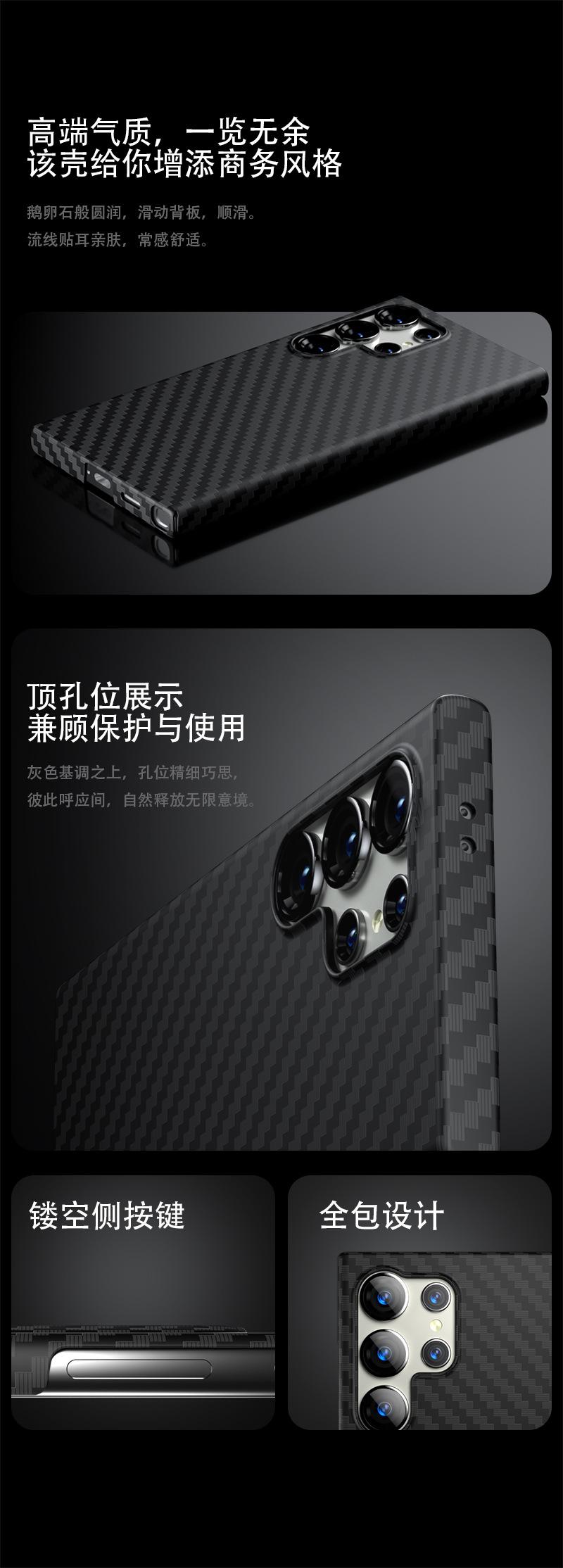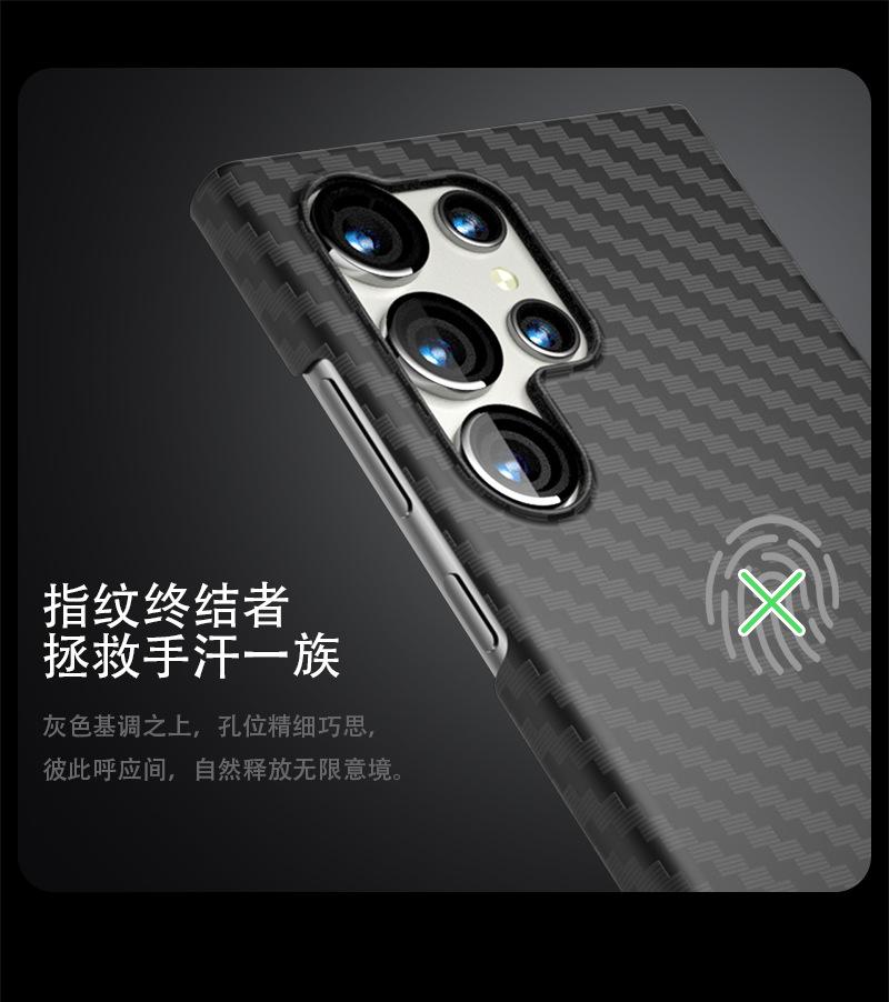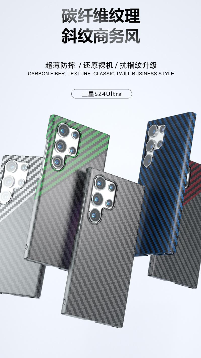 Fibra de carbono Kevlar para funda de teléfono Samsung S24 Ultra S23 + nueva funda protectora resistente a caídas de agujero grande S22