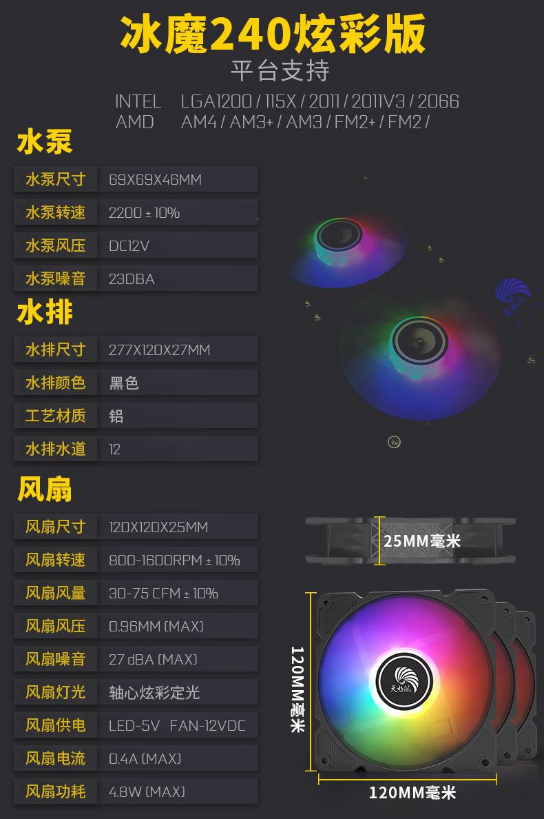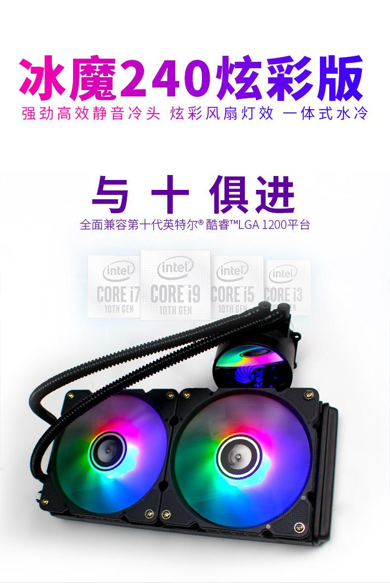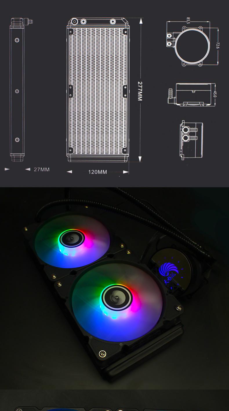 Host de computadora de escritorio transfronterizo radiador de CPU refrigerado por agua integrado ventilador silencioso colorido RGB fila fría