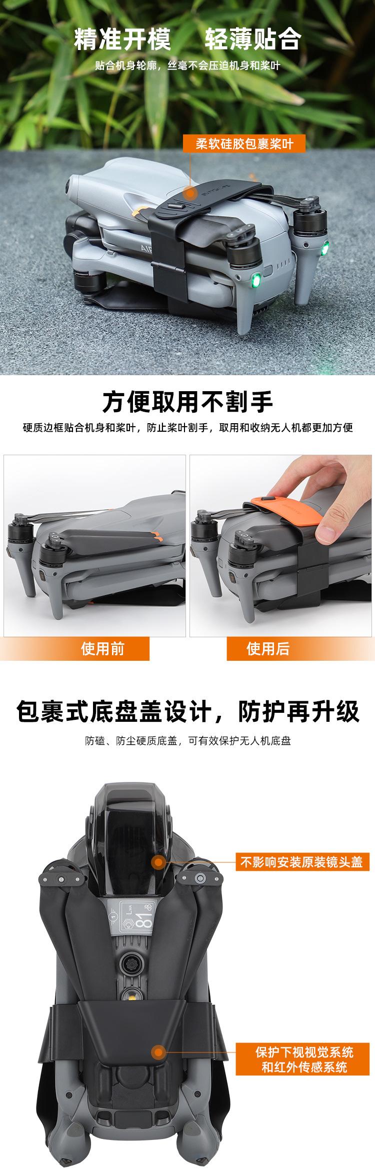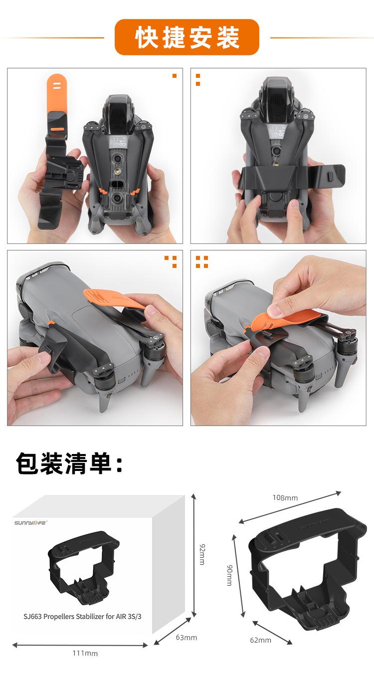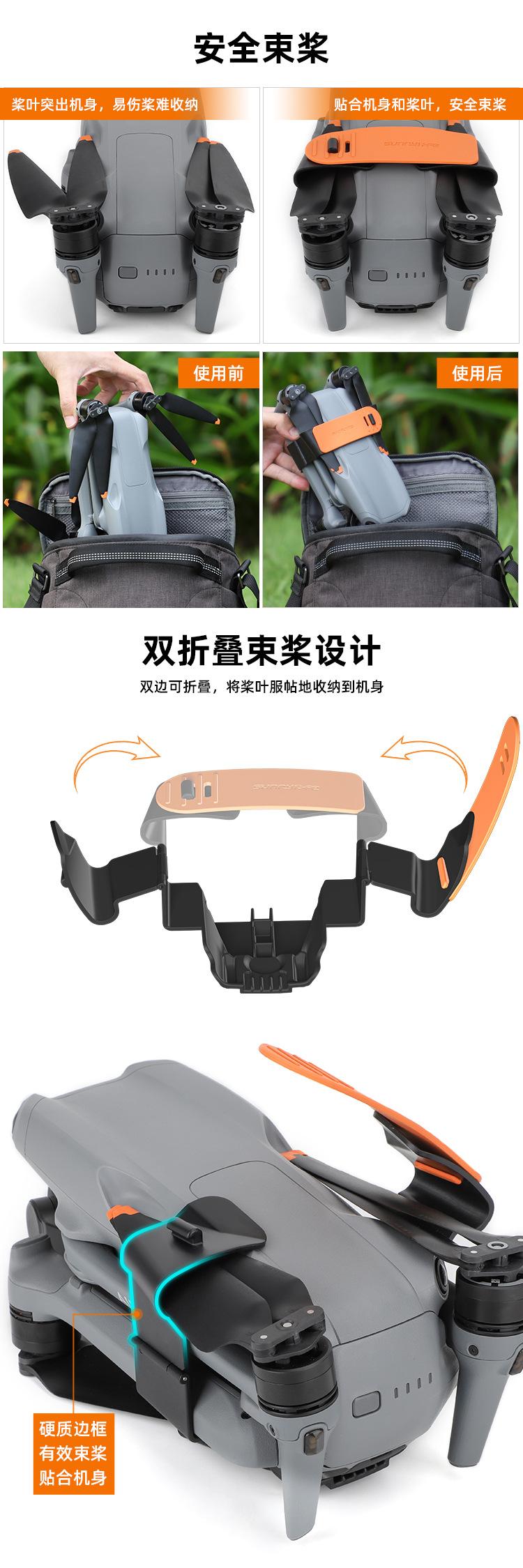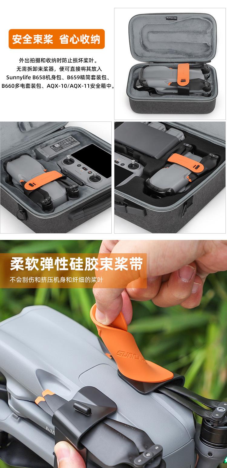Evita daños a las hélices al grabar en exteriores o al almacenar. No es necesario quitar el soporte para hélices, y puedes ponerlo directamente en la bolsa para el cuerpo Sunnylife B658, la bolsa de kit aerodinámico B659, la bolsa de kit multipotencia B660, la caja de seguridad AQX-10/AQX-11.