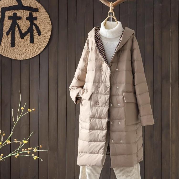 Chamarra de plumón para mujer de longitud media 2023 Invierno nueva moda con capucha holgada adelgazante plumón de pato blanco abrigo ligero cálido