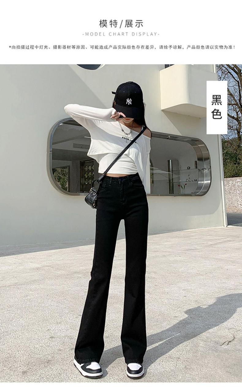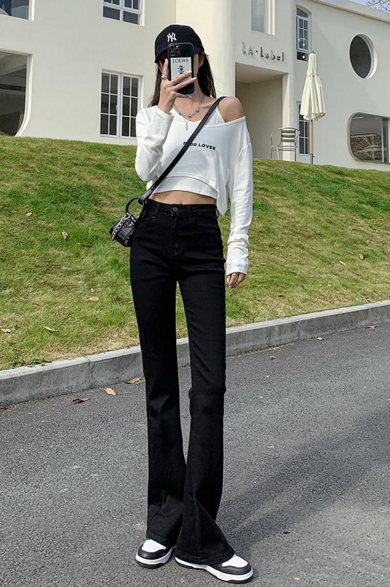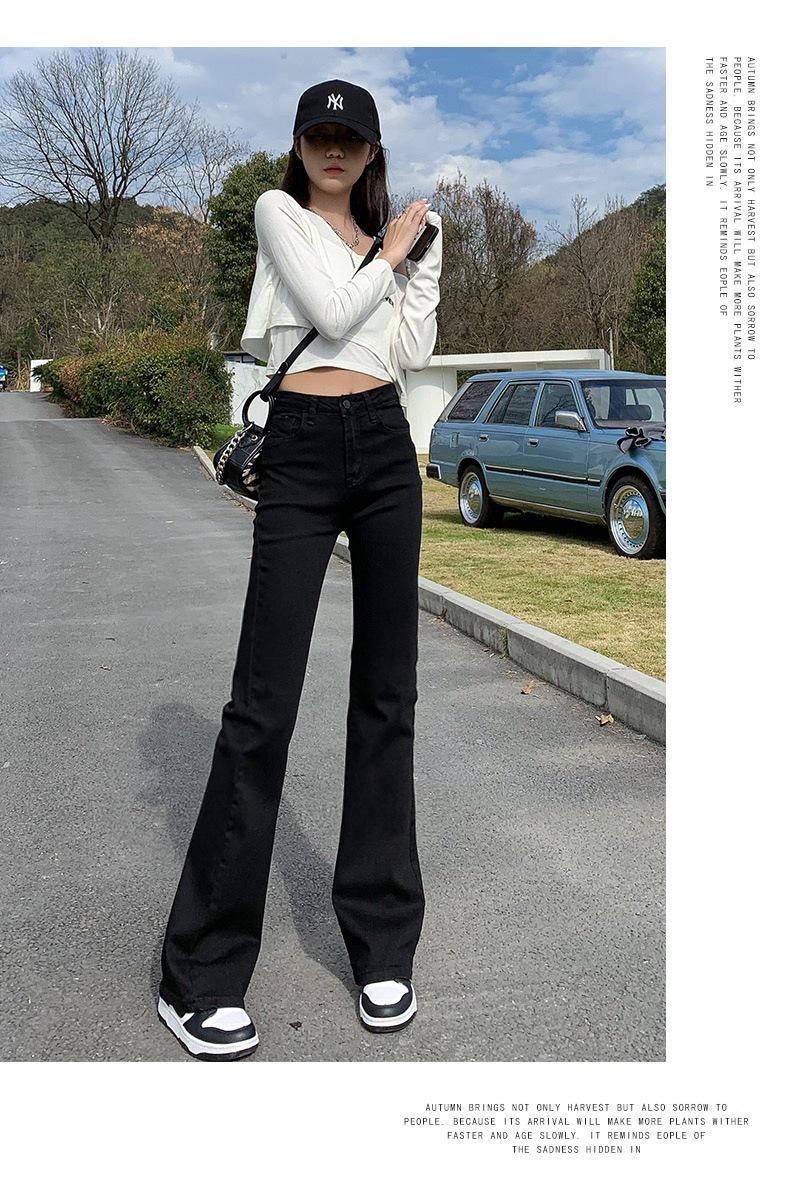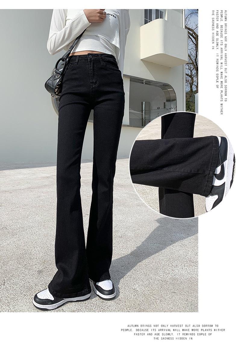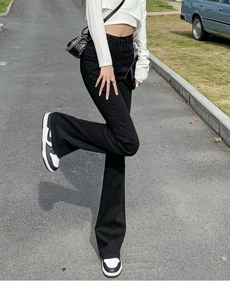Pantalones vaqueros negros Micro La para mujer, de principios de otoño de 2022, nuevos, de cintura alta, elásticos, ajustados, combinables, con campana para fregar el suelo, para niños