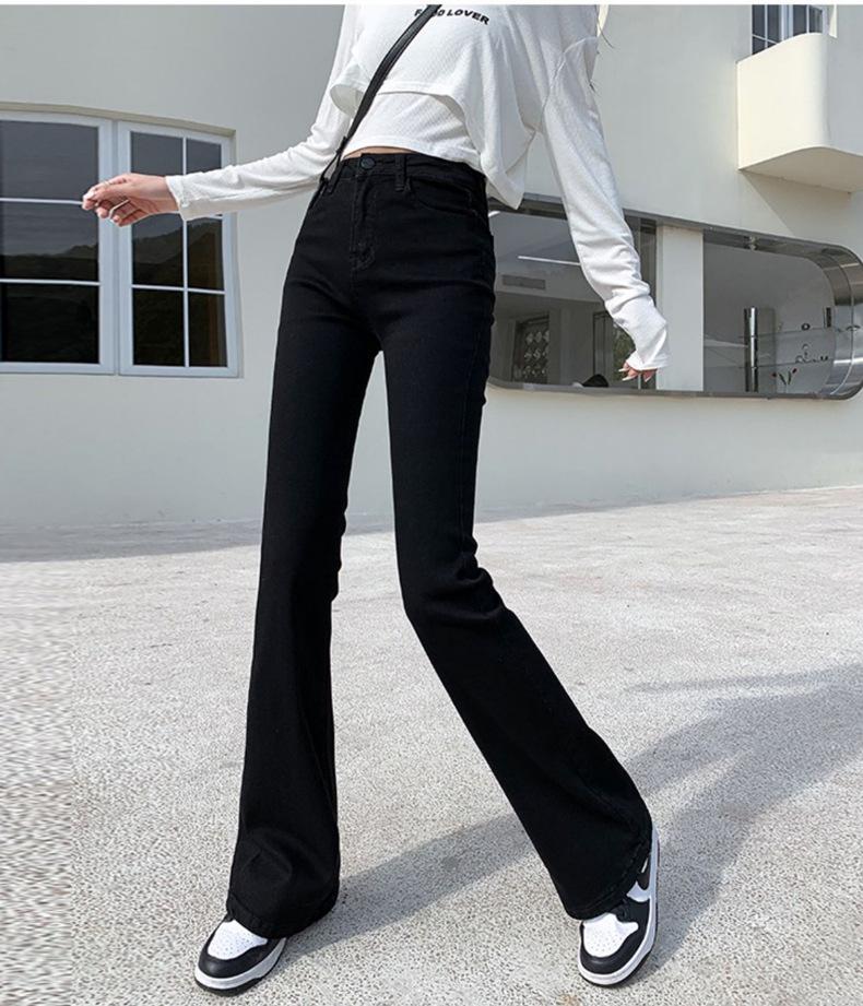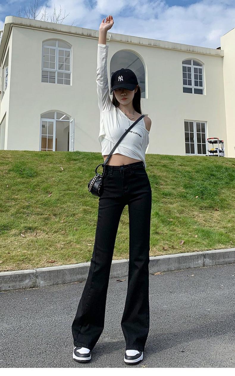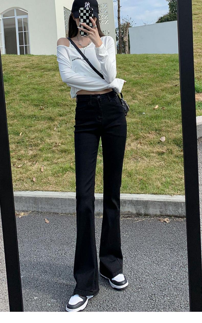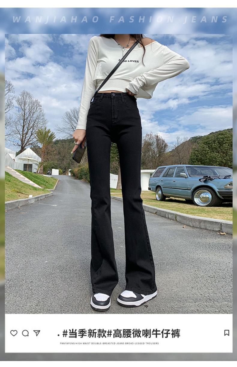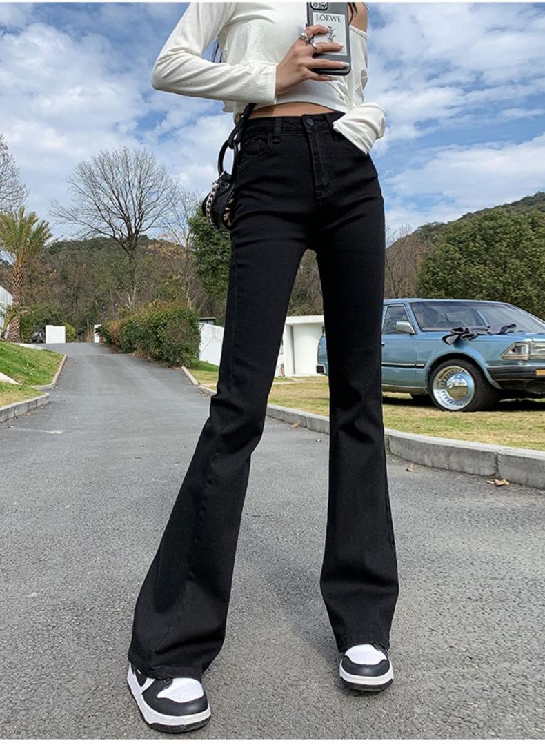 Pantalones vaqueros negros Micro La para mujer, de principios de otoño de 2022, nuevos, de cintura alta, elásticos, ajustados, combinables, con campana para fregar el suelo, para niños