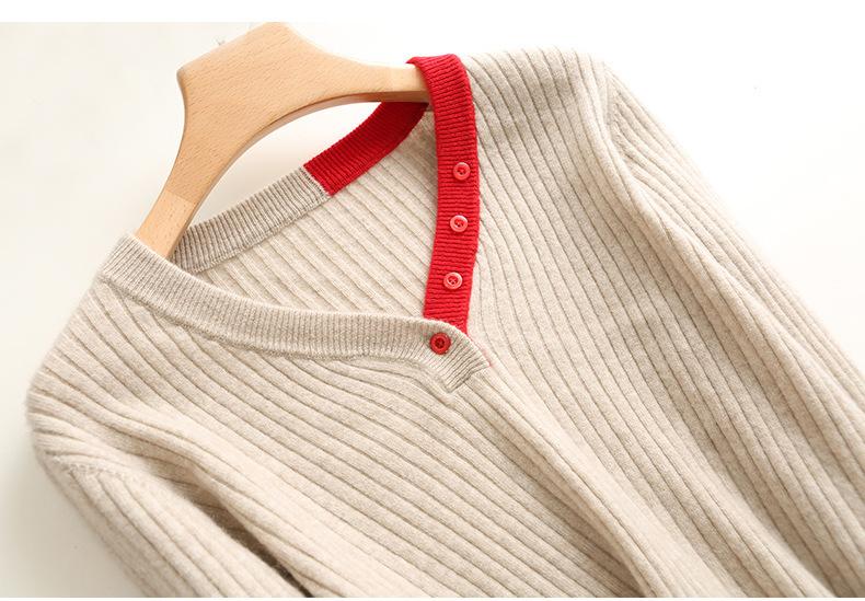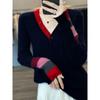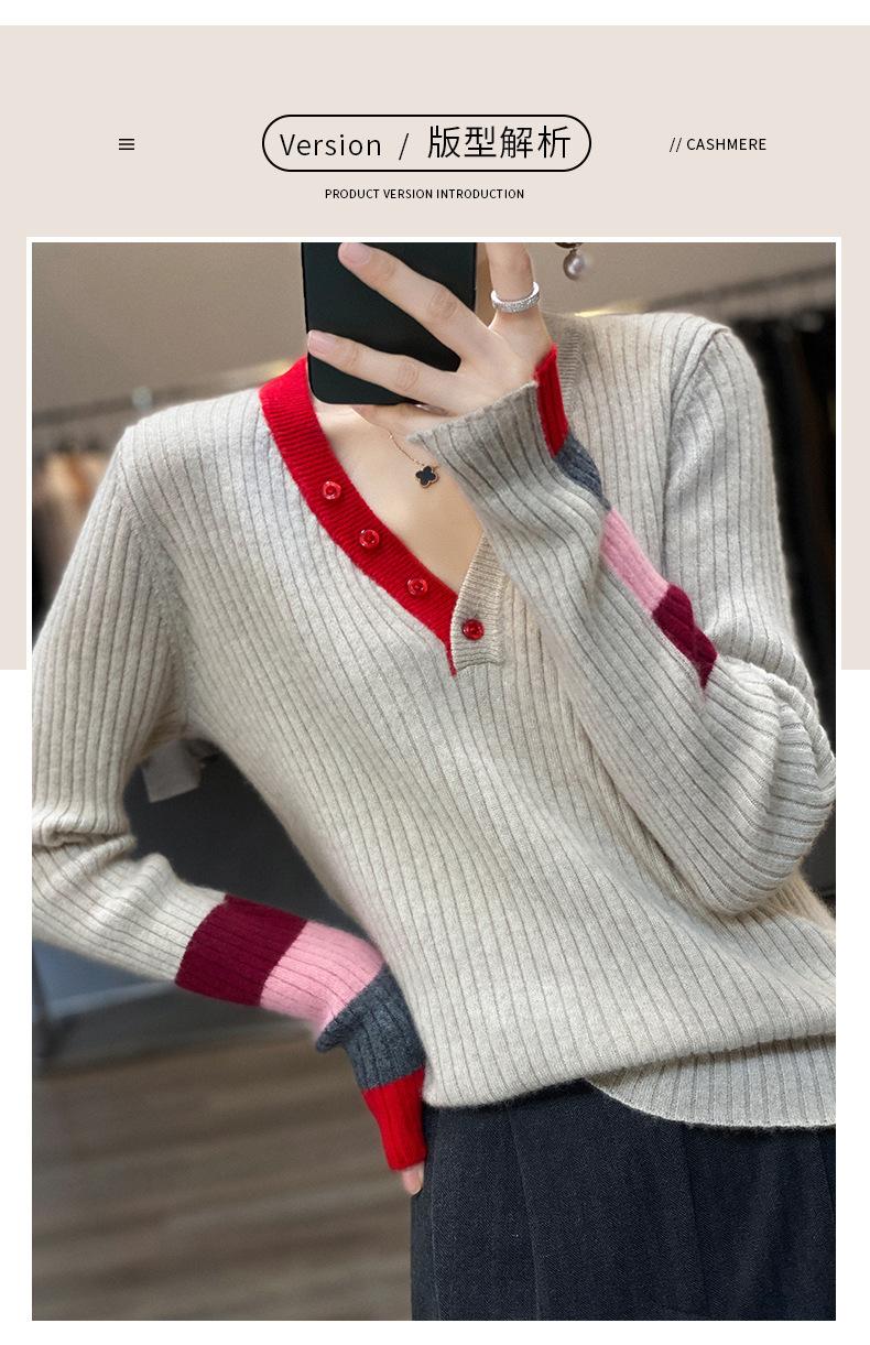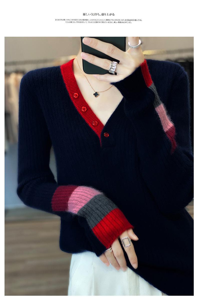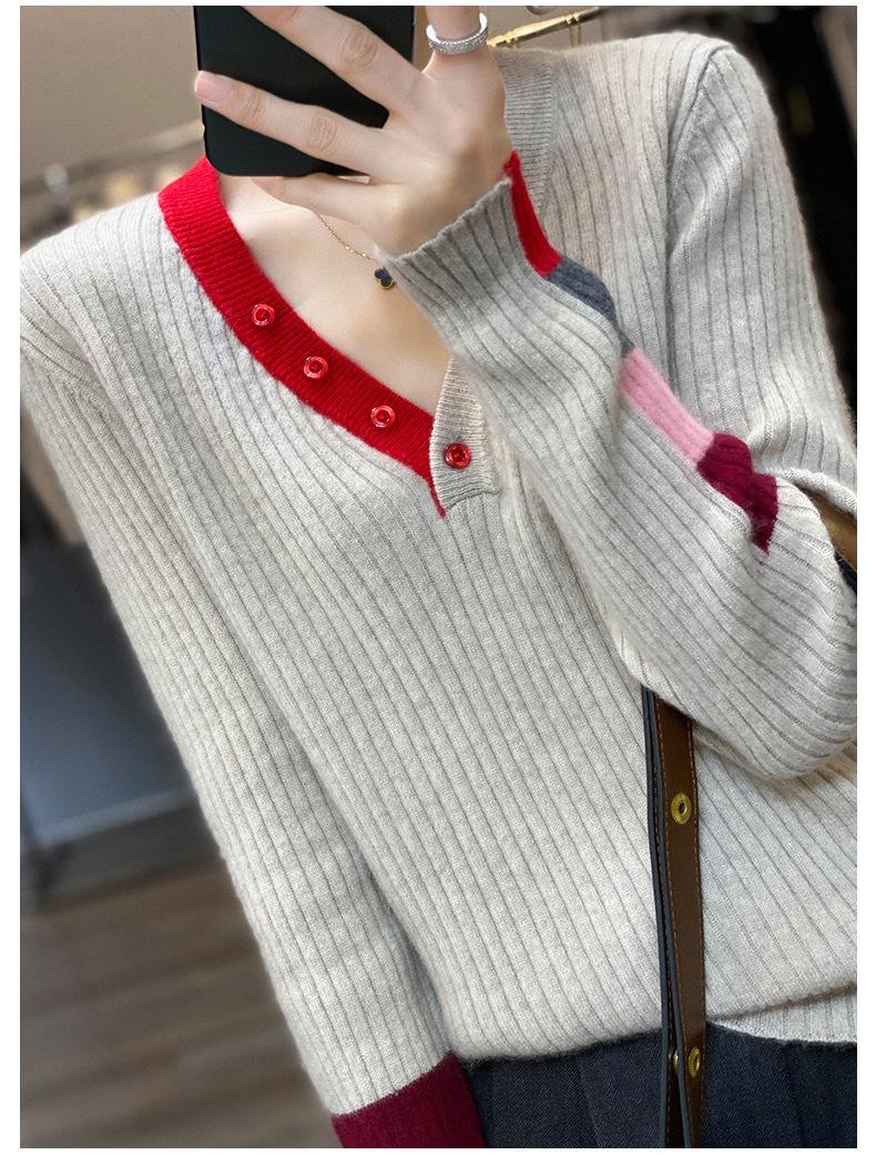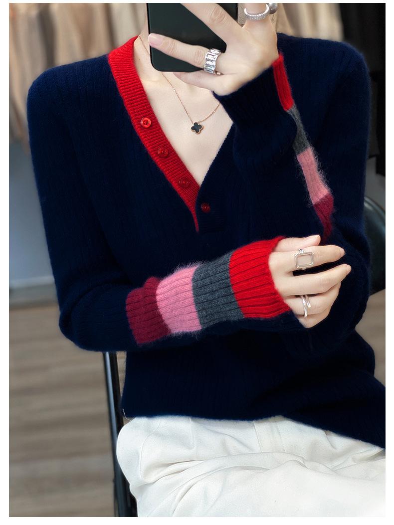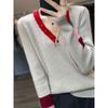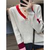 2025 Nuevo Otoño e Invierno Jersey de Lana Pura para Mujer para Mujer con Versión Regular Cuello en V Prendas de Punto Camiseta Base