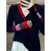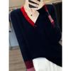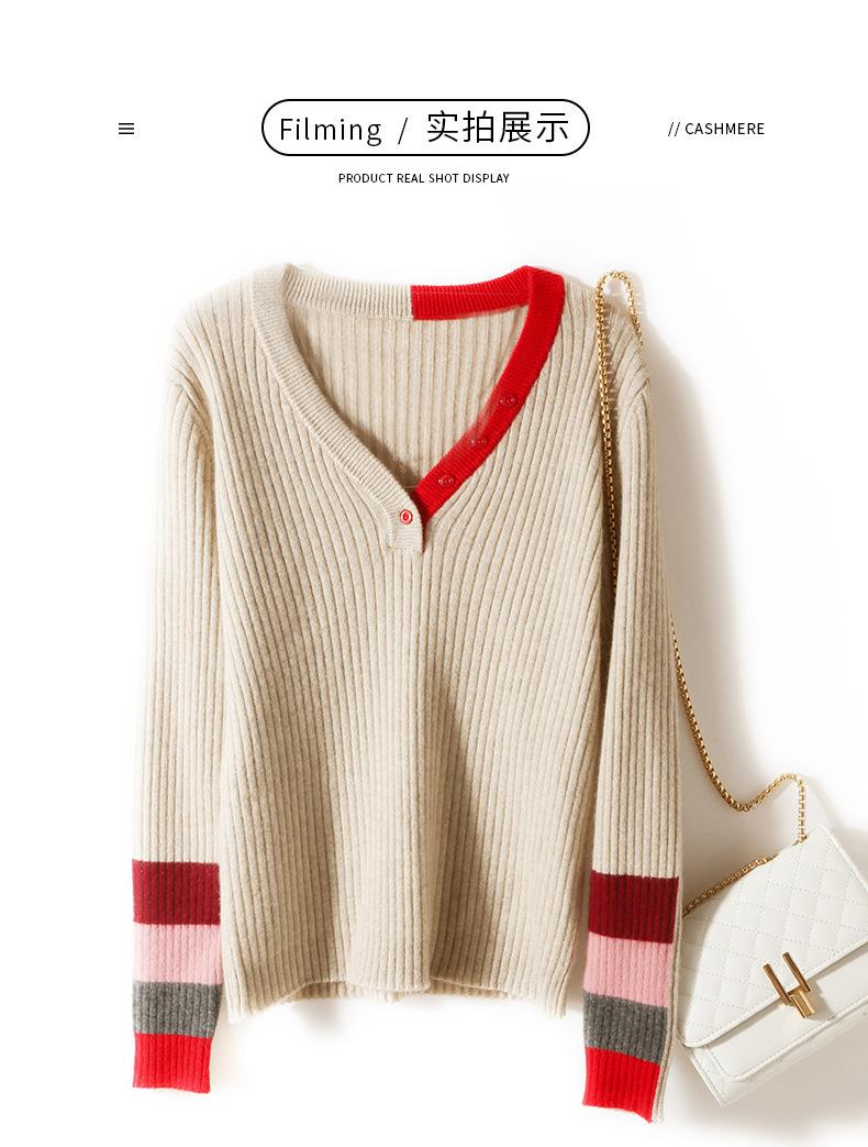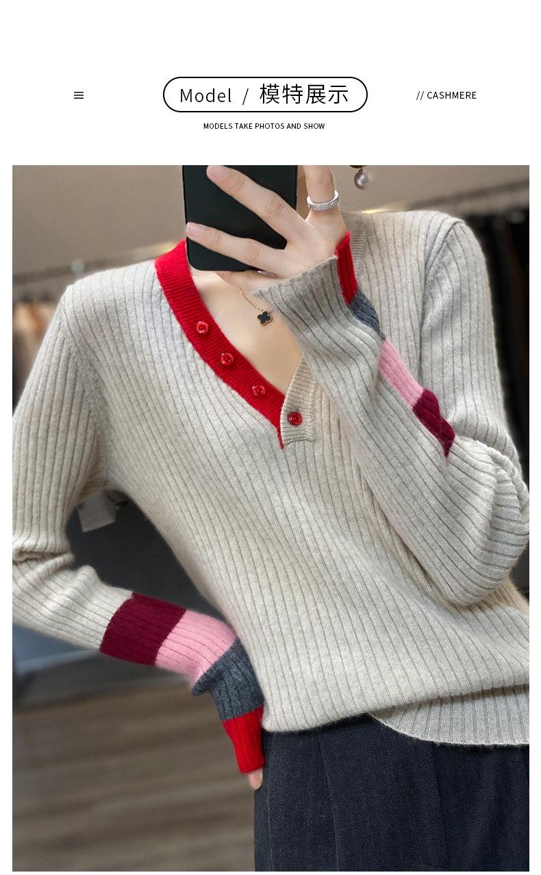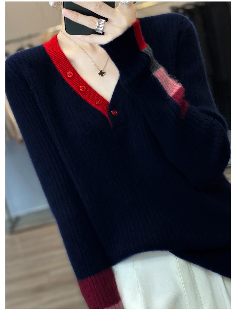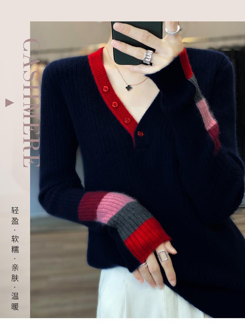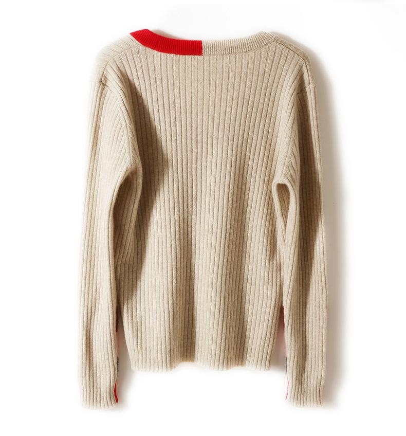 2025 Nuevo Otoño e Invierno Jersey de Lana Pura para Mujer para Mujer con Versión Regular Cuello en V Prendas de Punto Camiseta Base