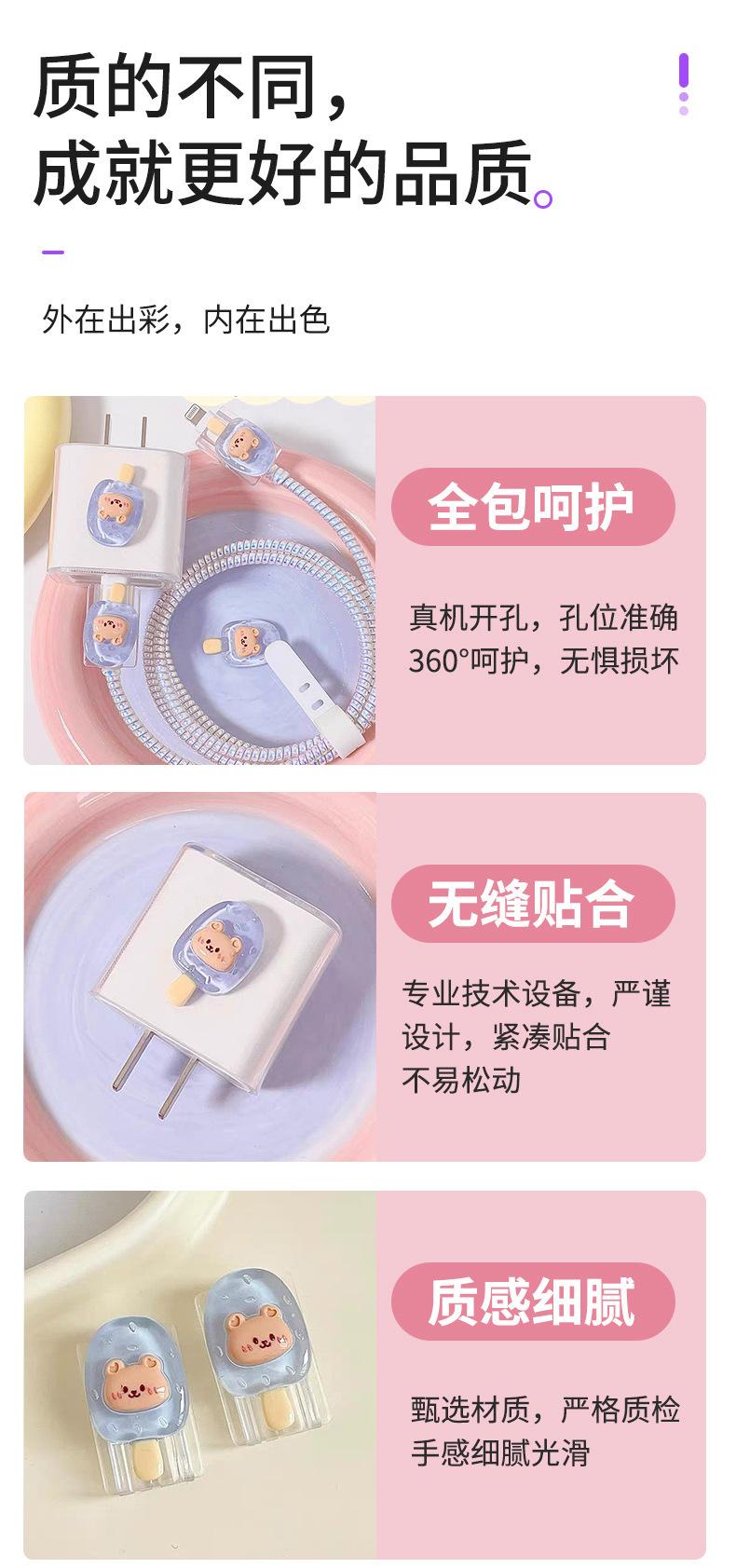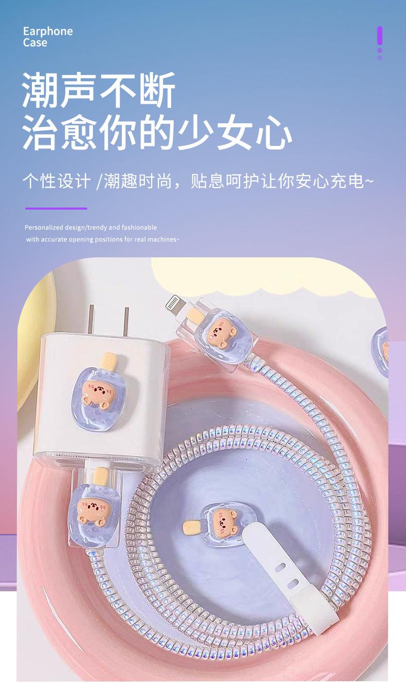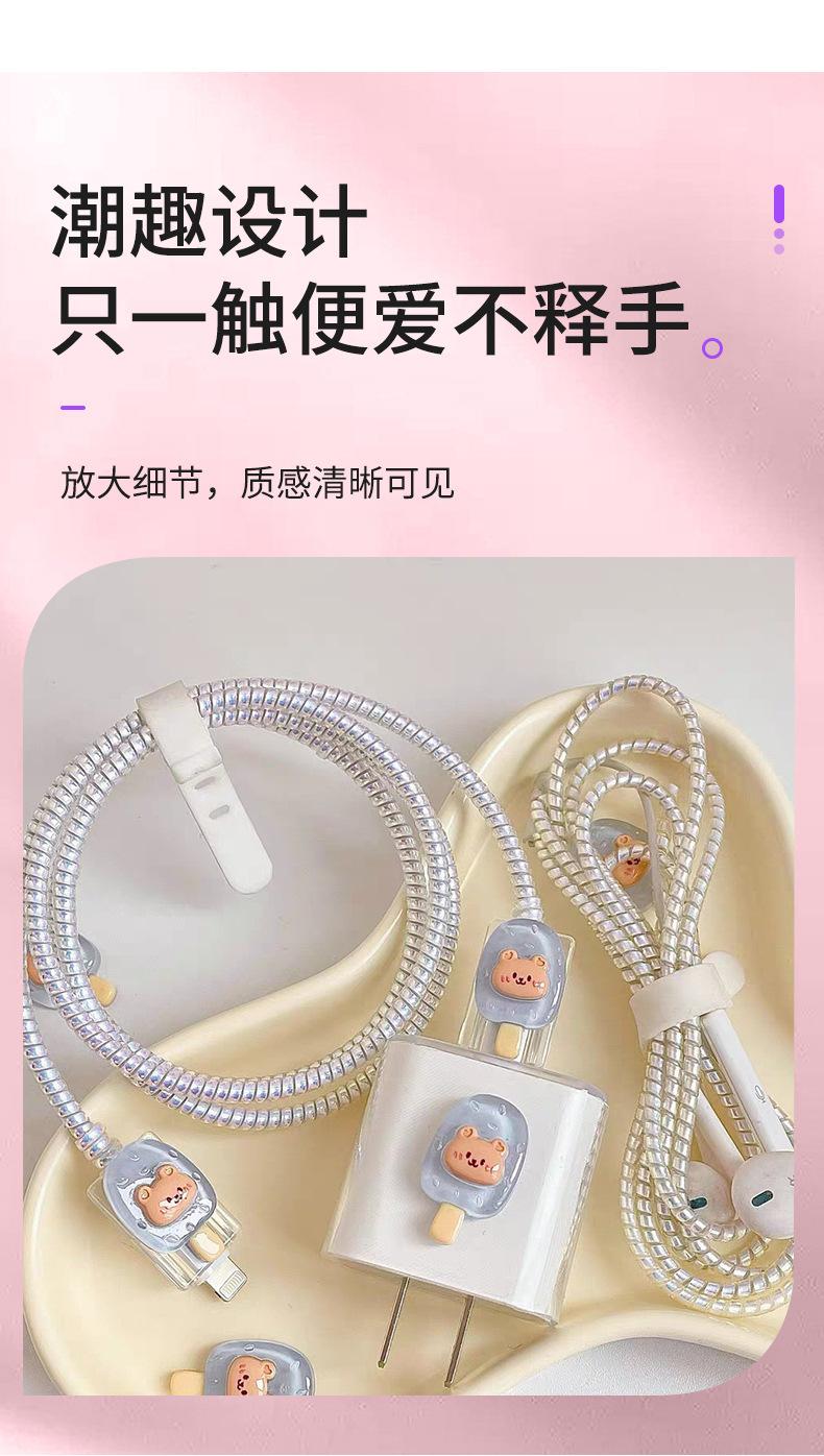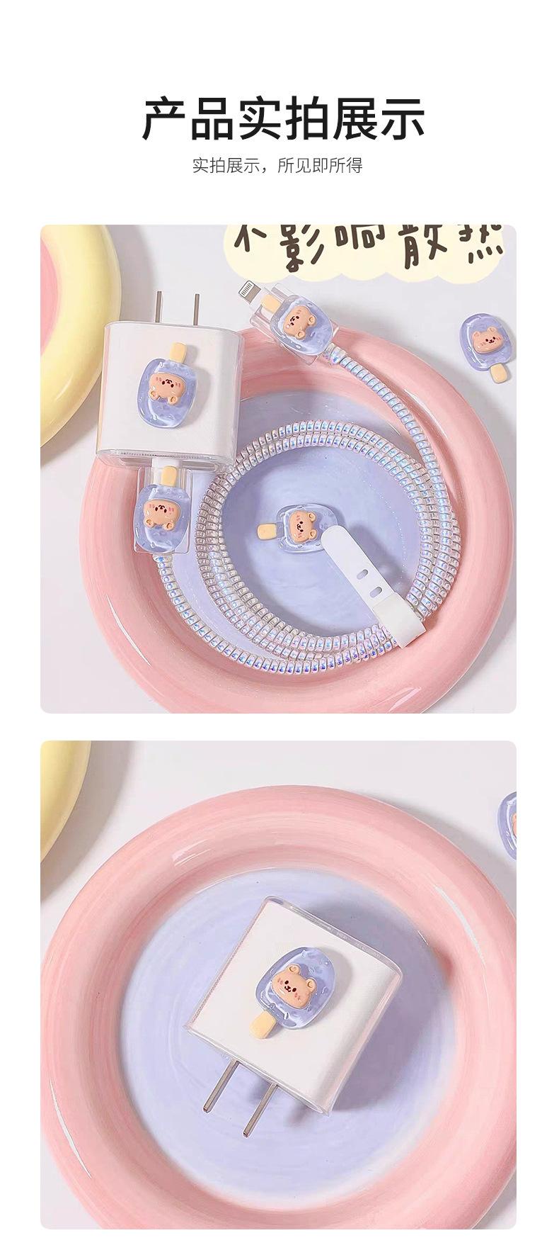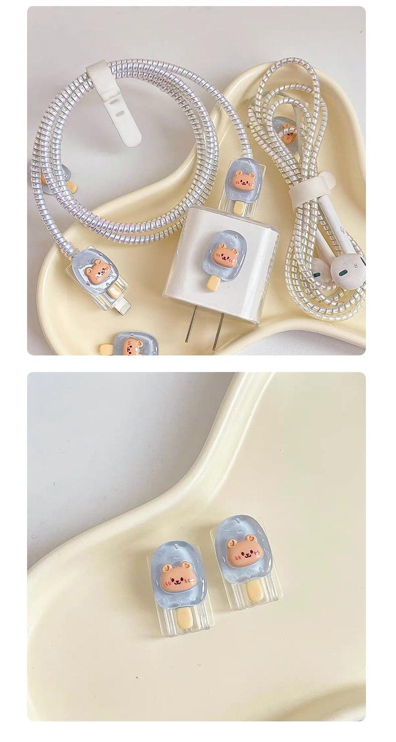 Estuche de carga con diseño de oso de helado, funda protectora, apto para cables de carga de 18 W a 20 W, con cuerda antirroturas.