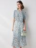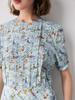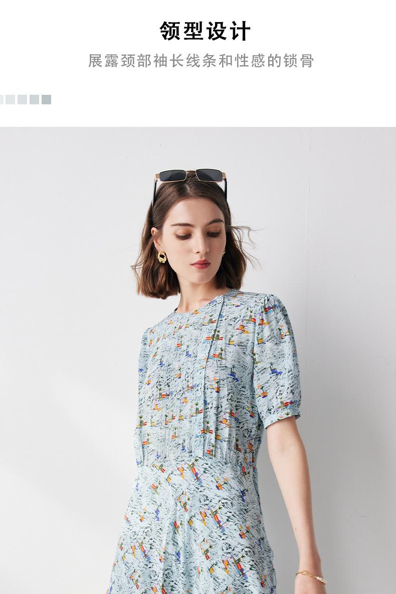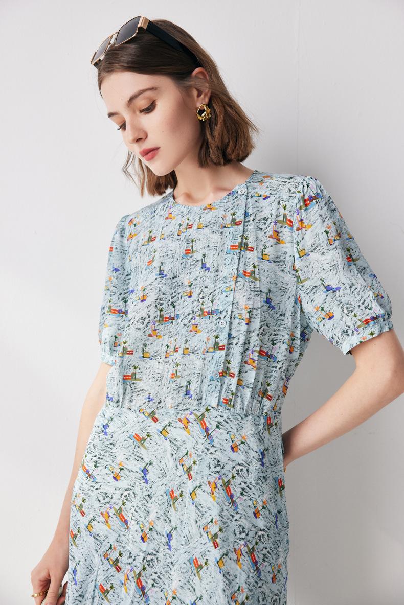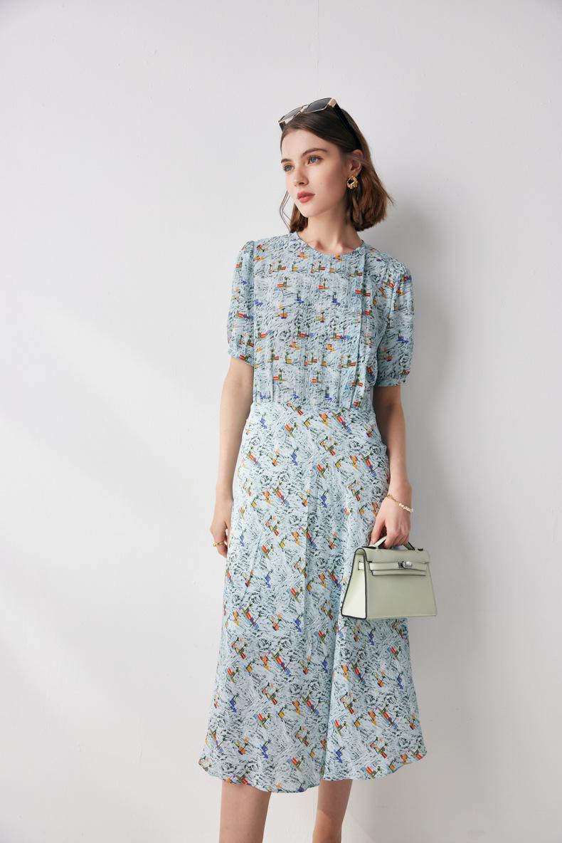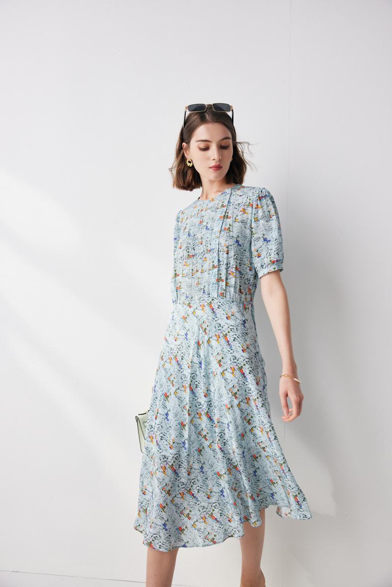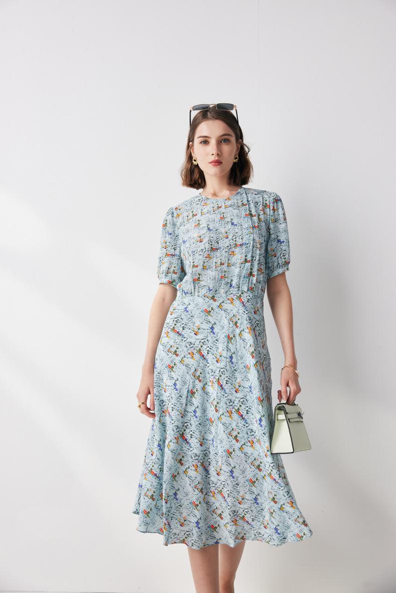 Vestido de seda de manga corta para mujer 2025 verano nuevo diseño cuello redondo crepé de china estampado falda de seda de morera 100