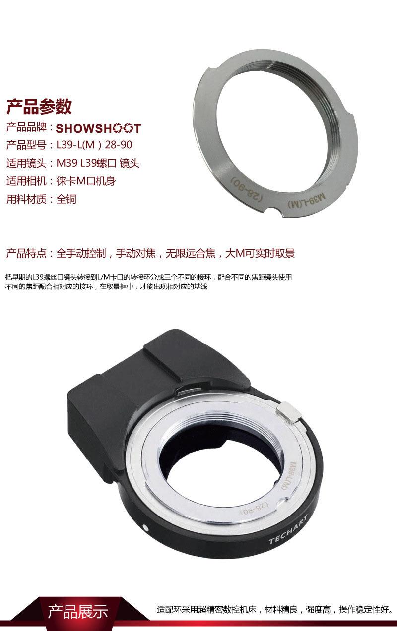 Ámbito aplicable: Objetivo - Distancia focal de 28 mm y 90 mm LEICA Objetivo de montura de rosca de diámetro LM39 mm incluyendo objetivo L39 producido por Canon, Nikon, Rusia y otras fábricas subsidiarias (Nota: Los objetivos con diferentes distancias focales deben combinarse con anillos adaptadores correspondientes, para que la línea base correspondiente aparezca en el visor (excepto para el visor LCD digital), por lo que los compradores deben asegurarse de comprender la distancia focal de sus objetivos antes de comprar y elegir el anillo adaptador correspondiente)