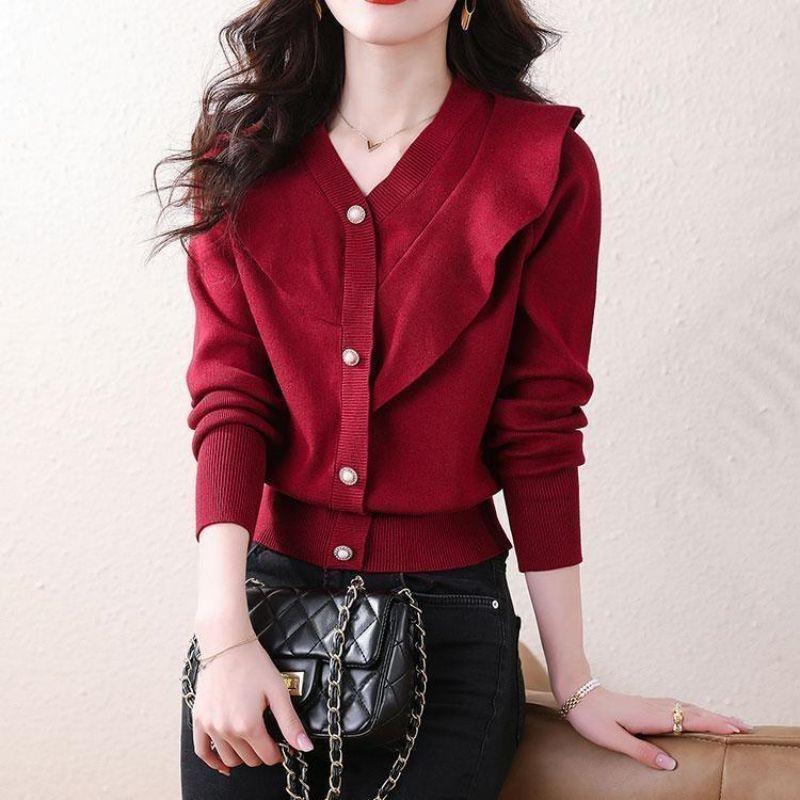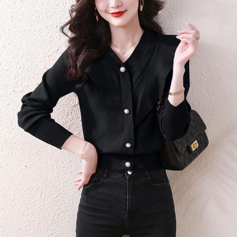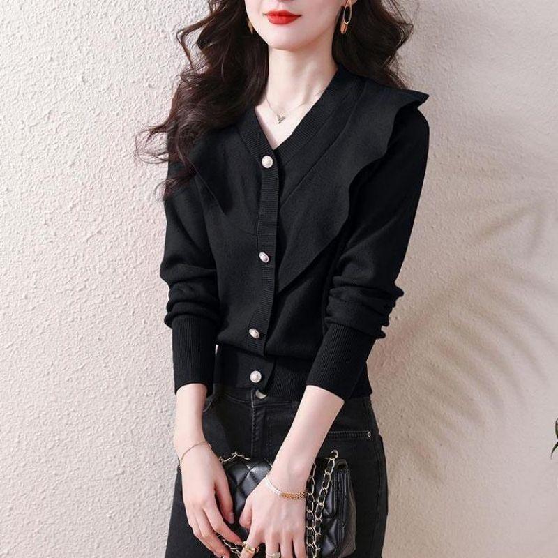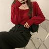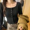 Suéter de cuello cuadrado para mujer, prenda exterior de clavícula, corto de invierno, tejido francés de alta calidad, estilo occidental, top de otoño, camisa de fondo para mujer, moda