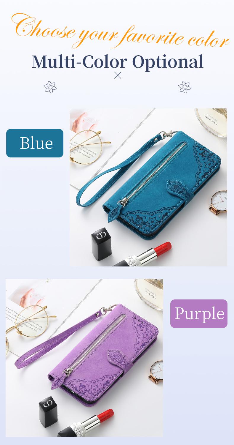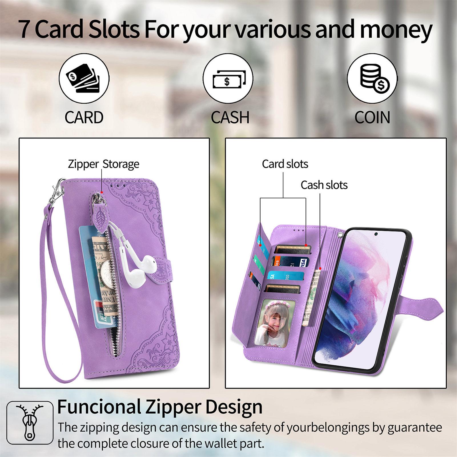 Adecuado para Samsung S25 Bolsa con Cremallera Teléfono Flip Funda de Cuero Cuero PU Repujado Samsung A17 Funda Protectora Tipo Billetera