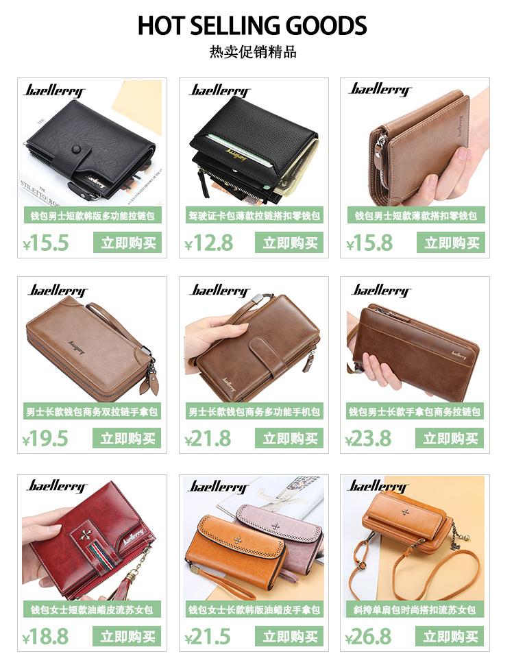 | | | | Nuevo bolso de pasaporte unisex Baellerry, elegante, sencillo, multifuncional, con cremallera, monedero compacto para teléfono móvil para mujer | | | | ¥ 15.50 | | Vendido:207Bolígrafo | | | | | | | | | | Nueva cartera corta para hombre Baellerry, cartera retro multitarjeta con borde cruzado, monedero de cuero aceitado con doble cremallera | | | | ¥ 24.50 | | Vendido:1564Bolígrafo | | | | | | | | | | Cartera corta de estilo nuevo para dama, versión coreana, con estampado de lichi, con ranura para múltiples tarjetas y cremallera, monedero de moda. | | | | ¥ 16.50 | | Vendido:3469Bolígrafo | | | | |