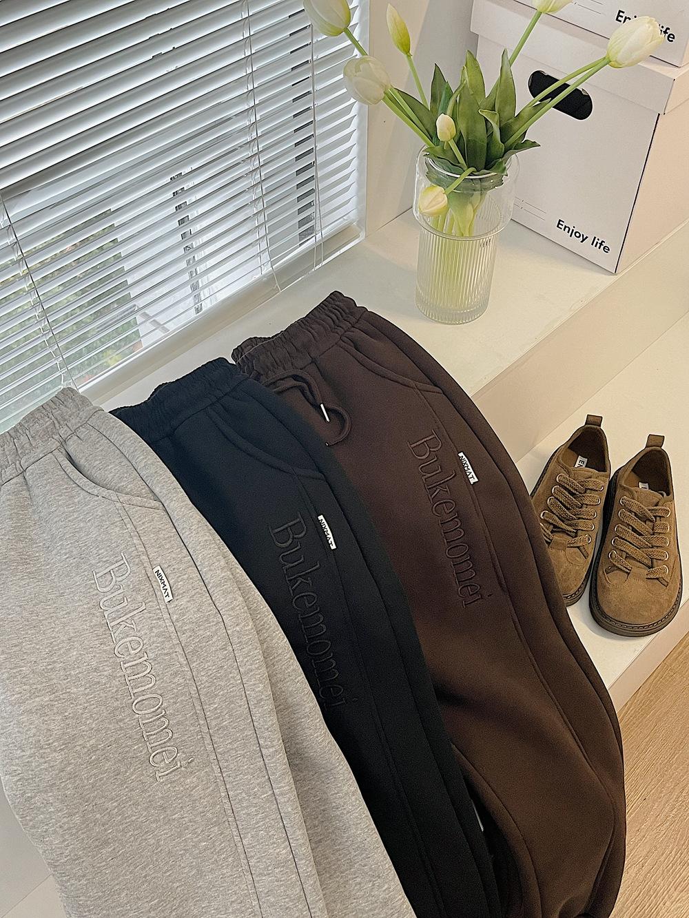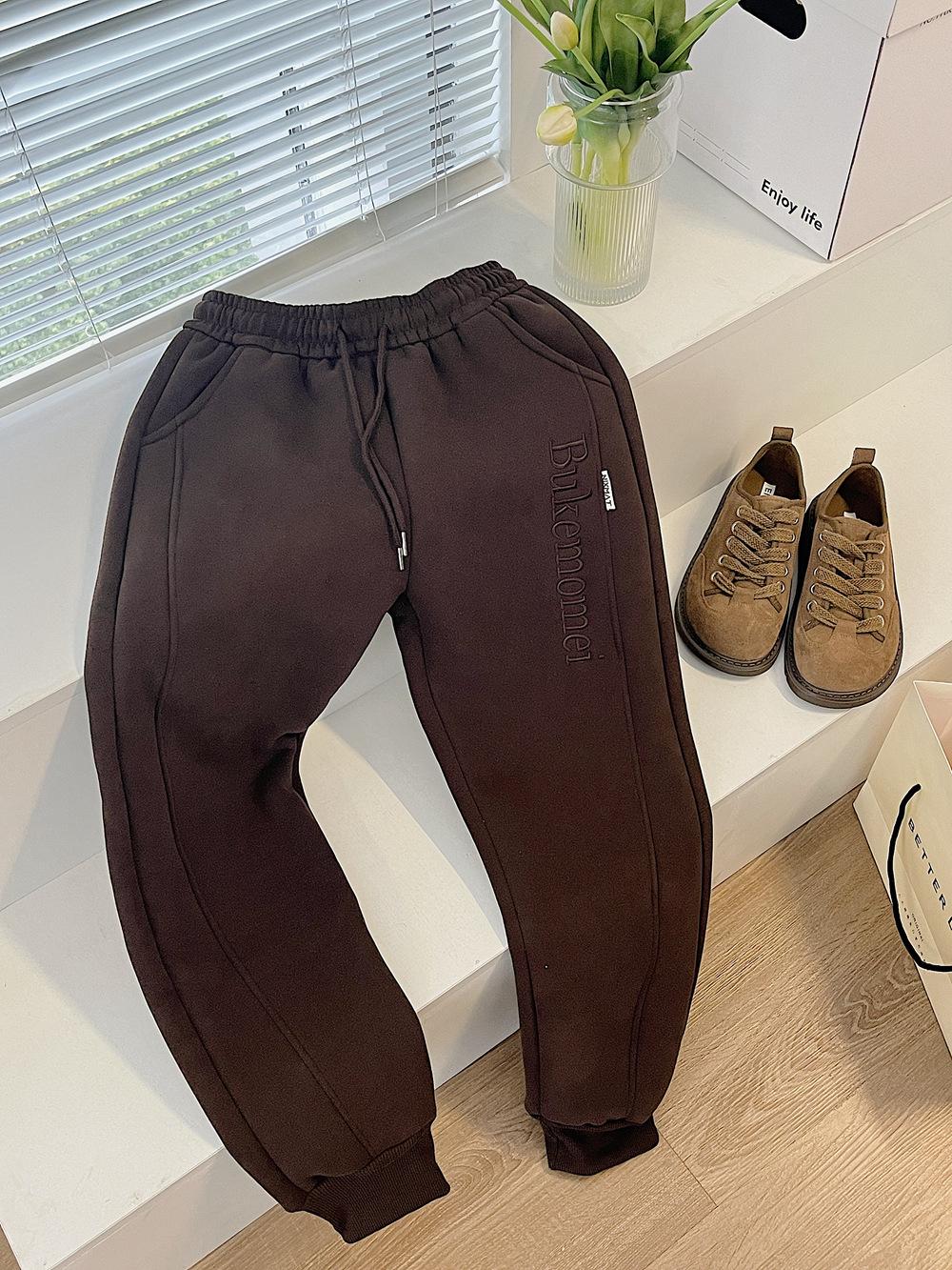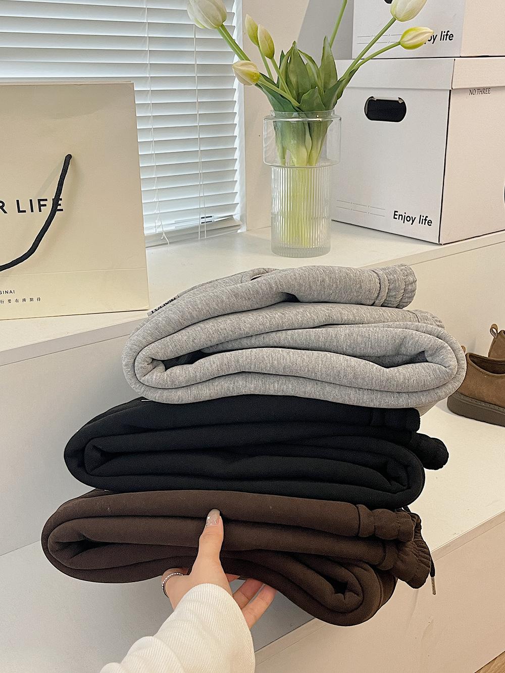 Pantalones deportivos de cachemir grueso con bolsillos para mujer, pantalones de algodón con cordones en los tobillos, pantalones casuales de cintura alta con forro polar