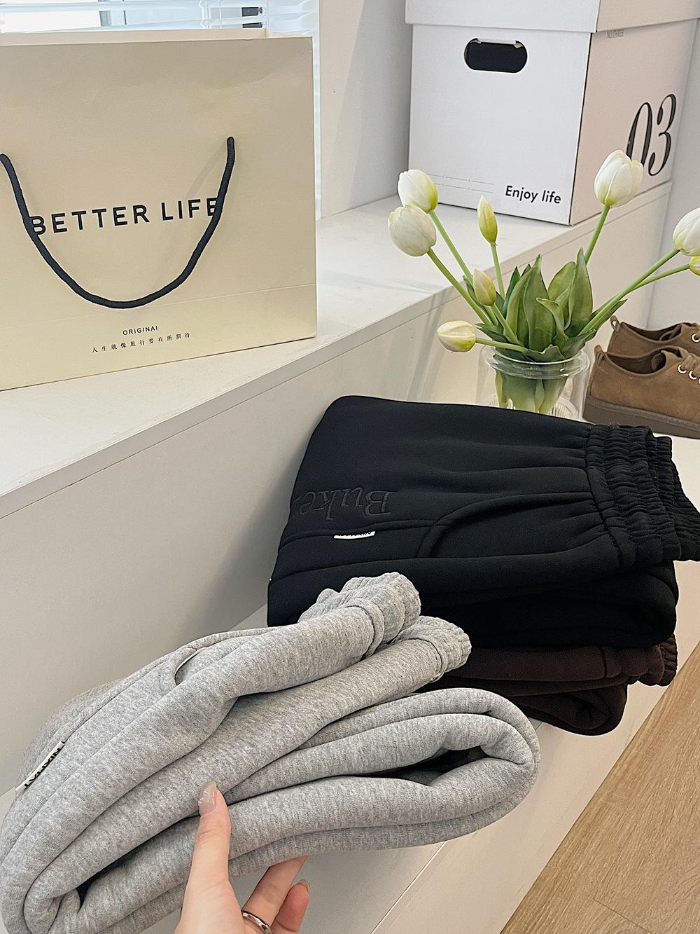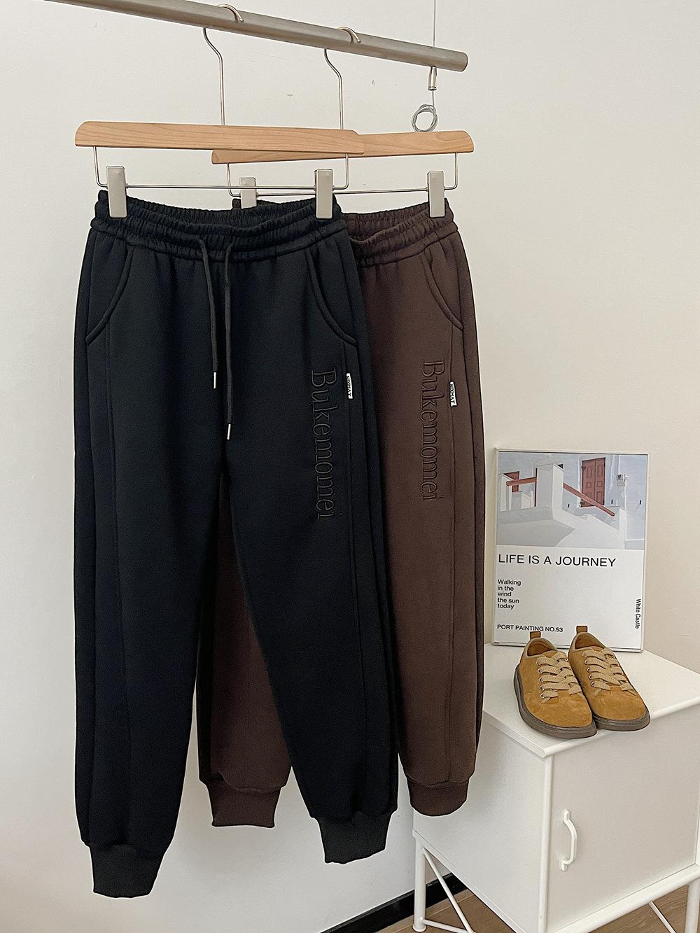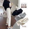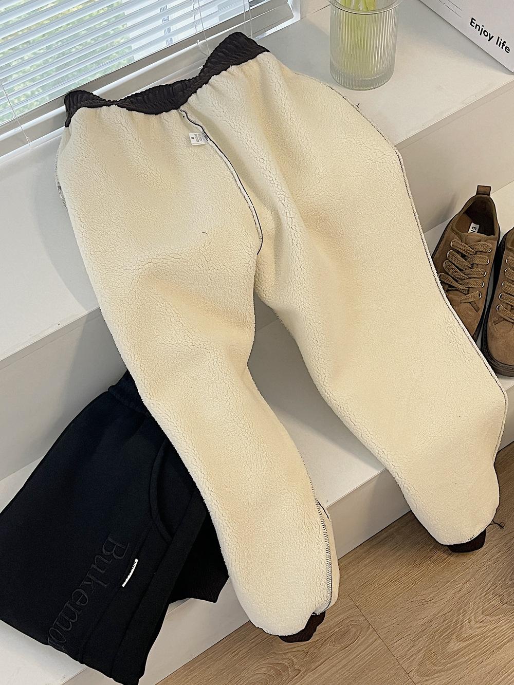 Pantalones deportivos de cachemir grueso con bolsillos para mujer, pantalones de algodón con cordones en los tobillos, pantalones casuales de cintura alta con forro polar