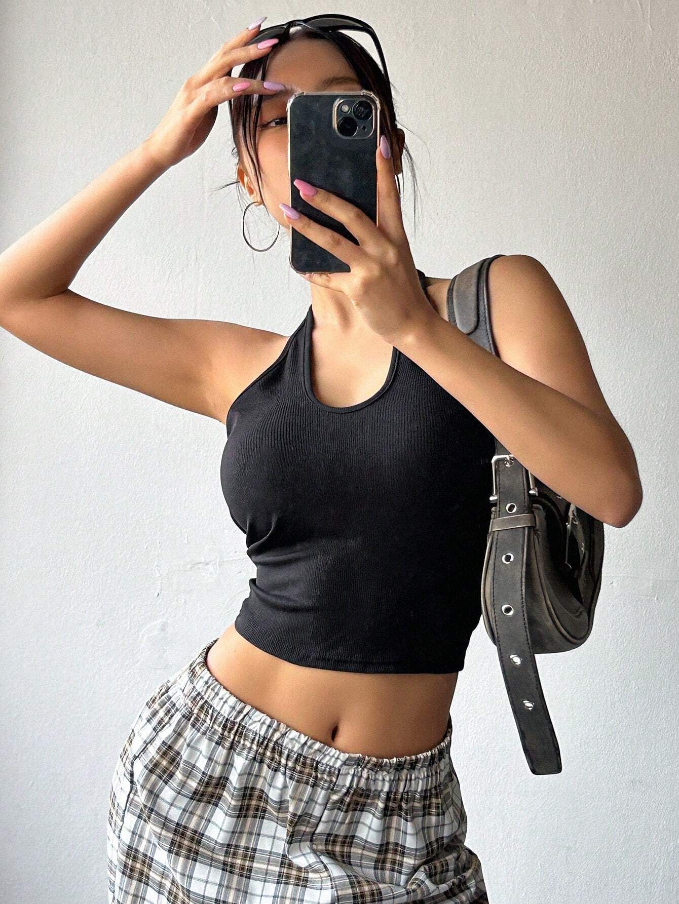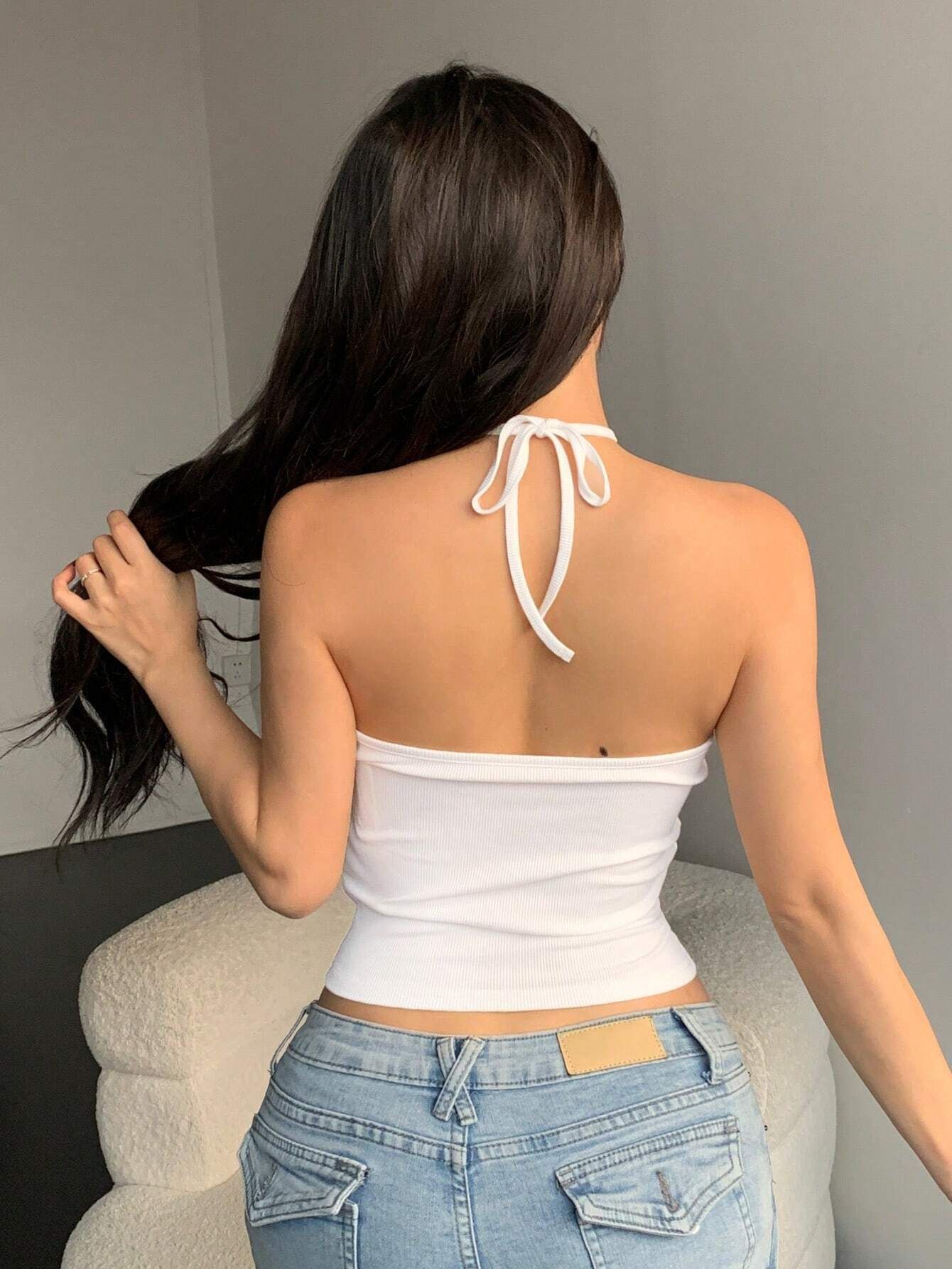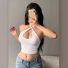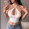 Sexy chica caliente estilo europeo y americano nuevo producto transfronterizo espalda cruzada cuello halter con cordones top camisola corto ajustado que expone el ombligo