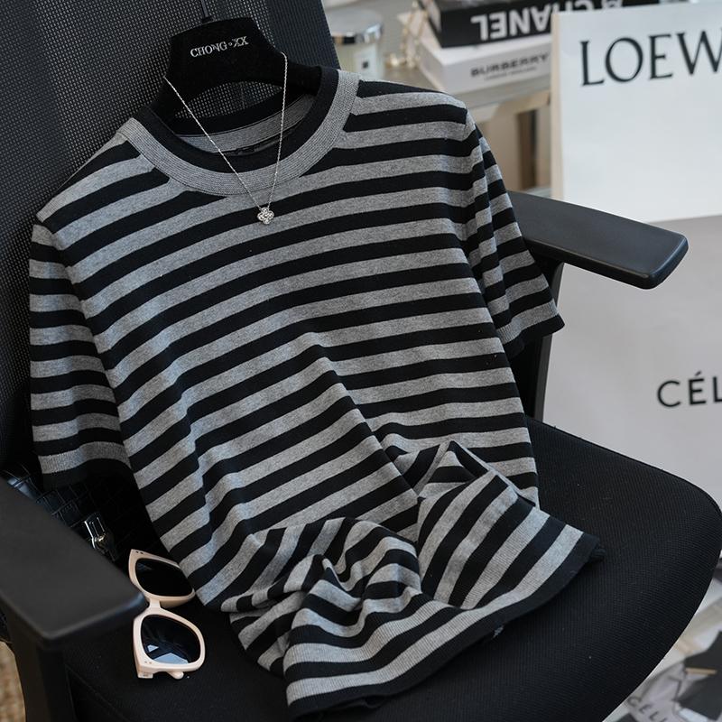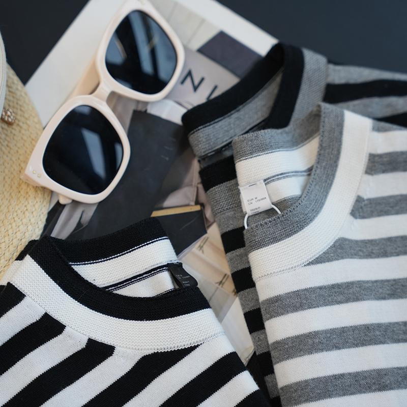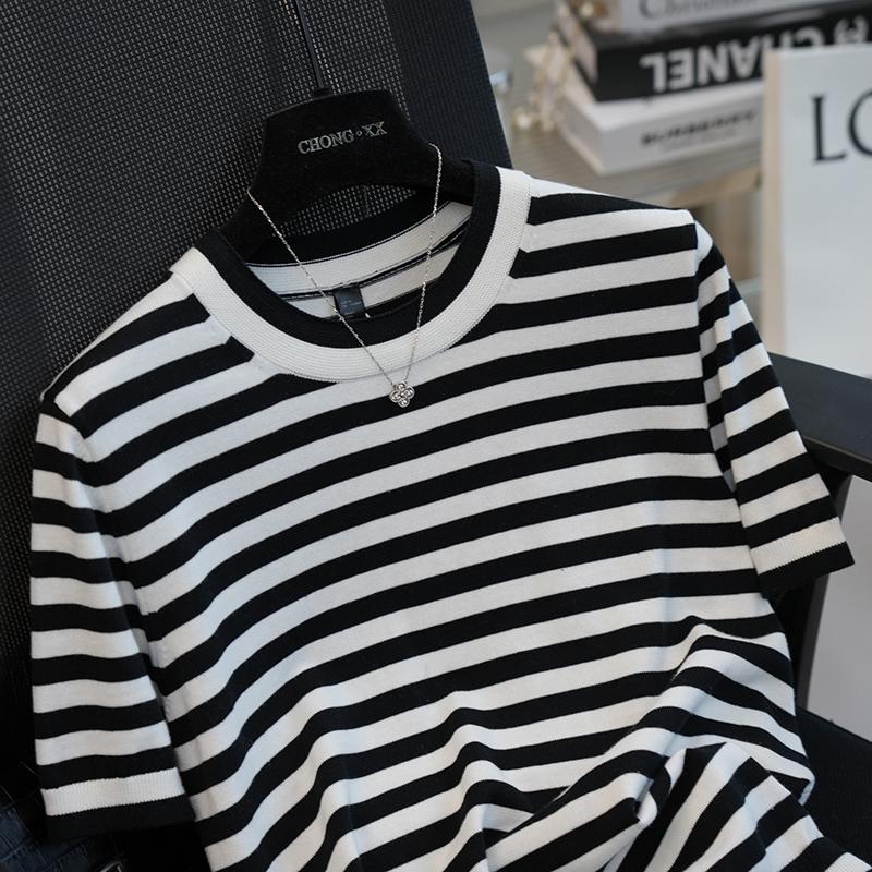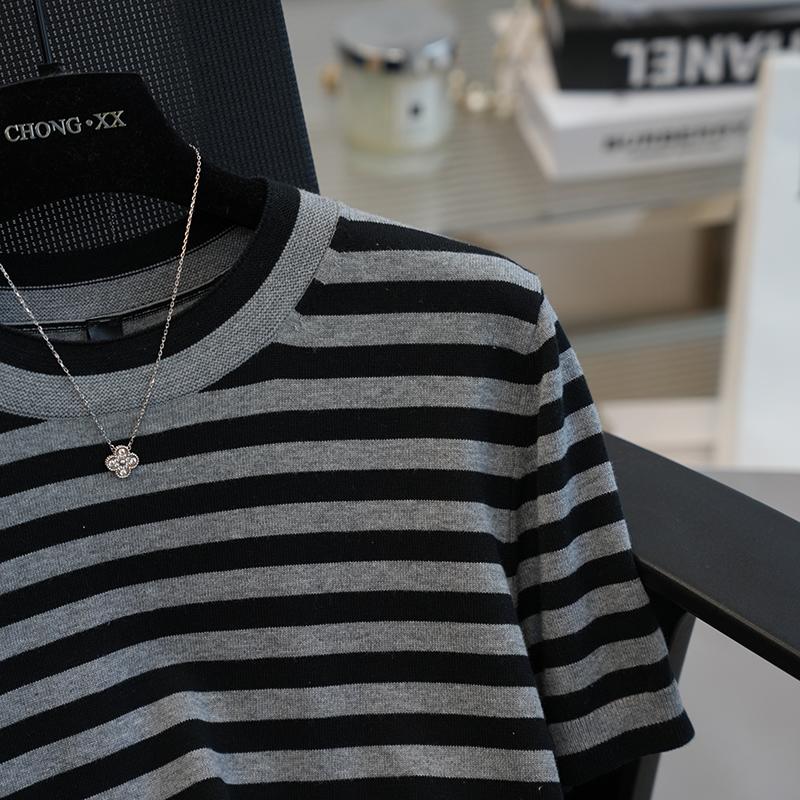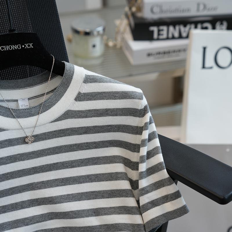 Playera corta, el índice de moda de primavera y verano se dispara, las rayas añaden un look casual