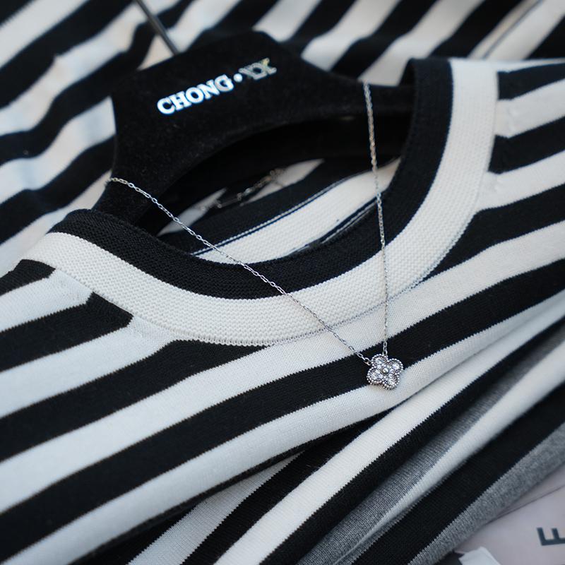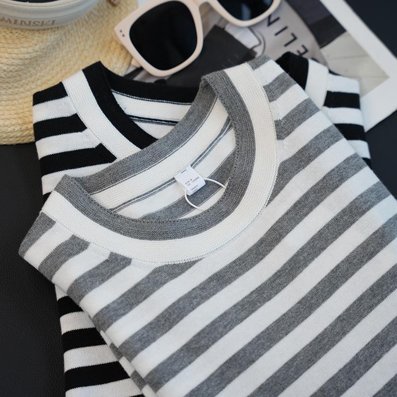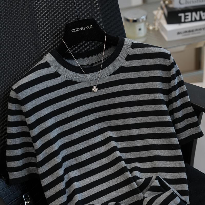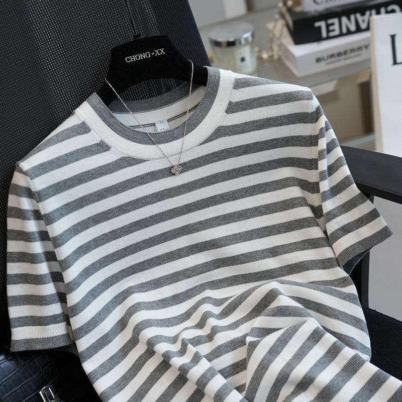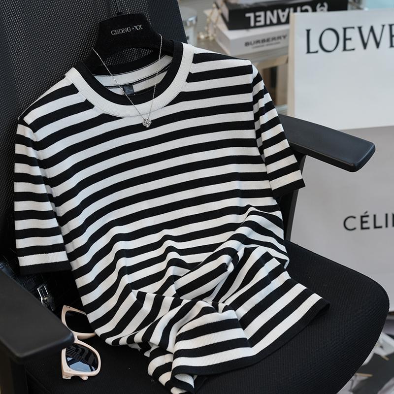 Playera corta, el índice de moda de primavera y verano se dispara, las rayas añaden un look casual