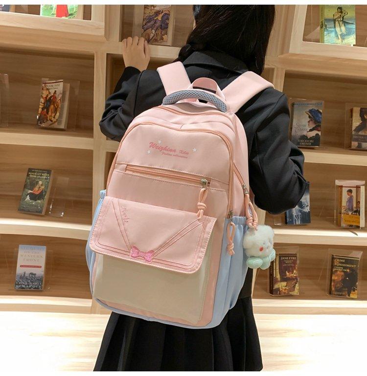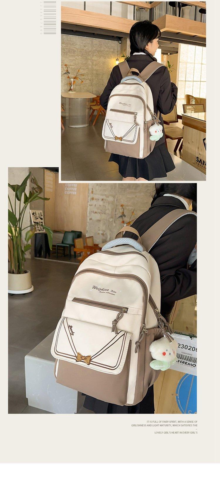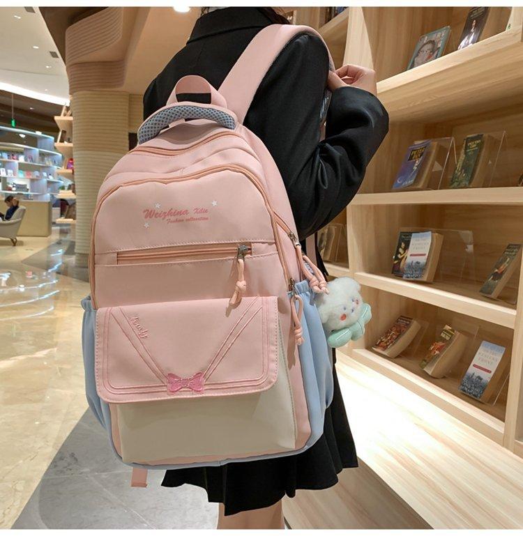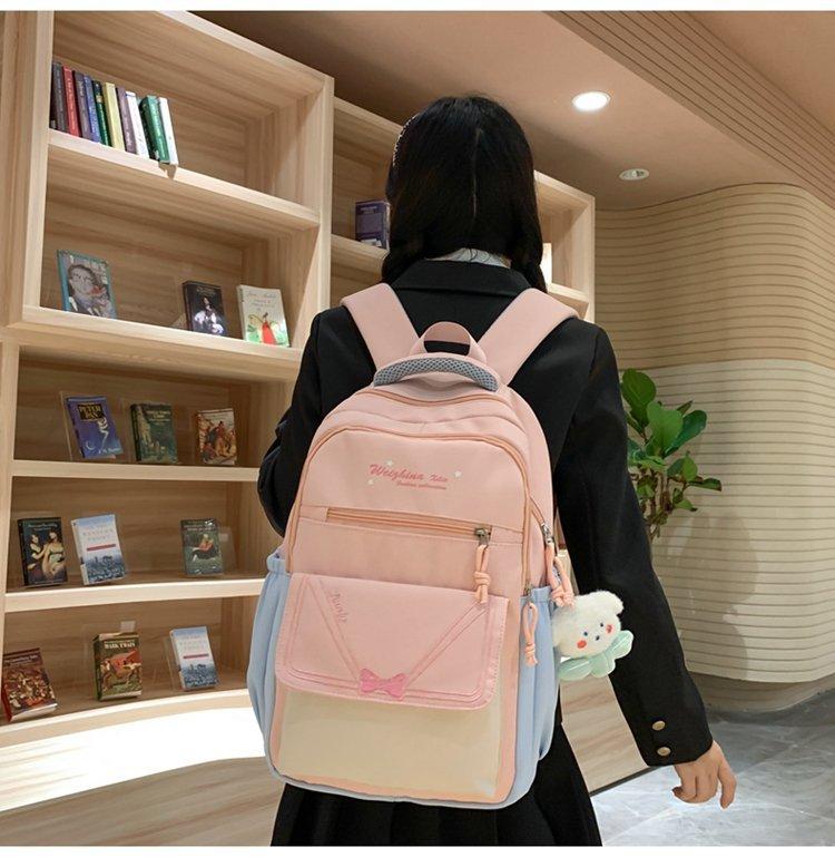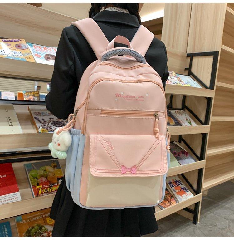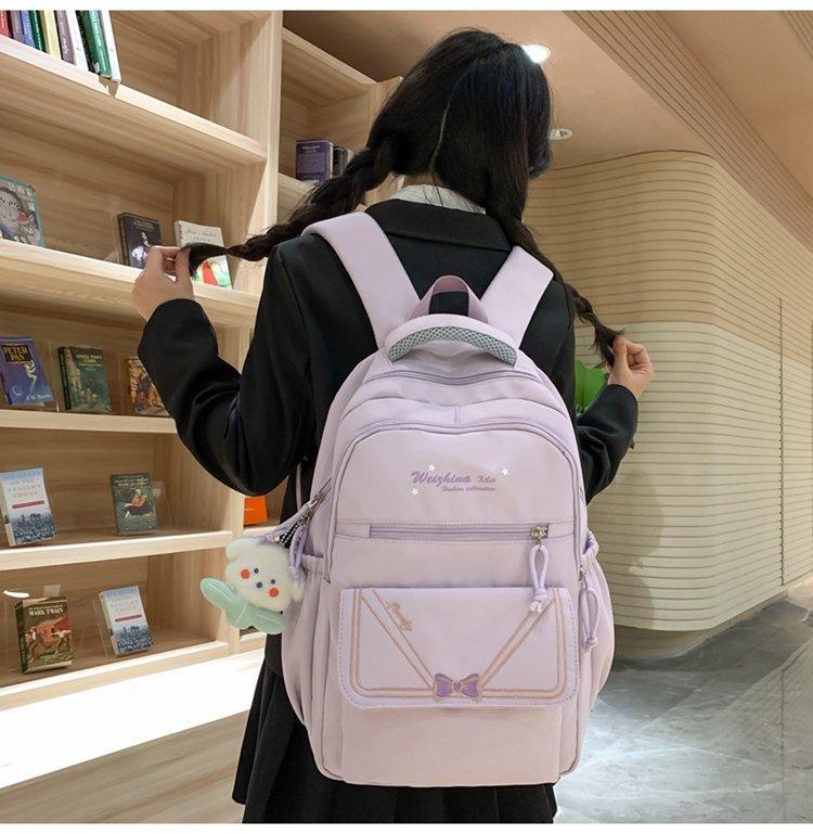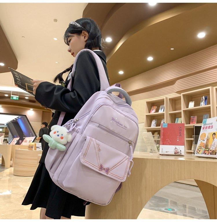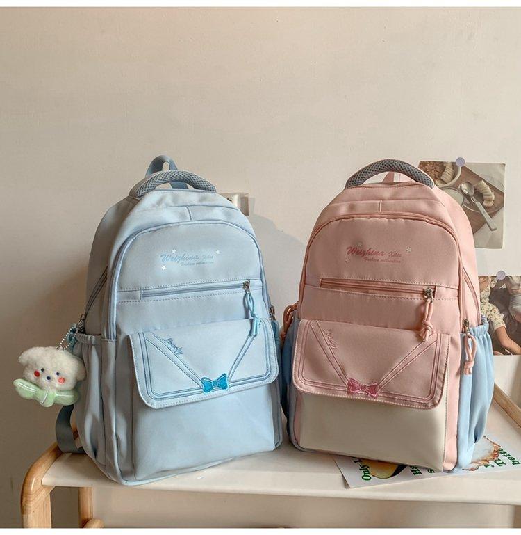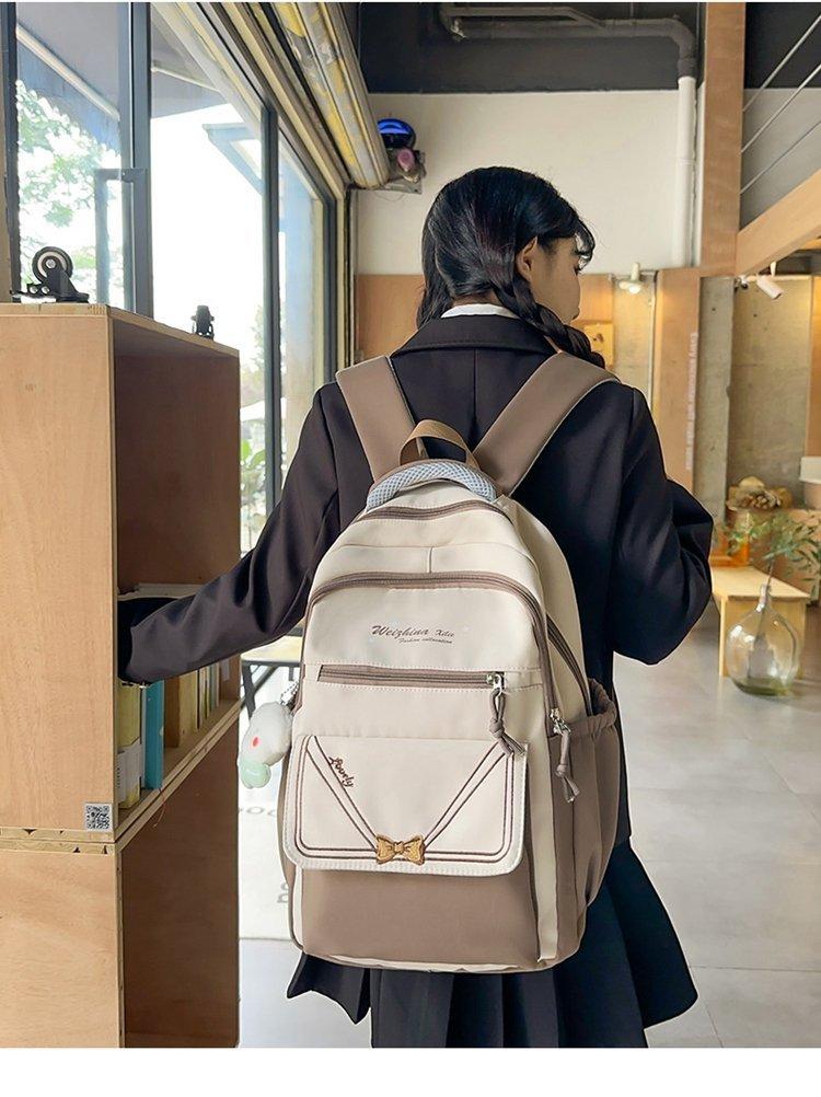 Mochila escolar estilo ins para niña, bonita mochila japonesa con lazo, mochila para estudiantes de secundaria, bolso para computadora de gran capacidad a la moda