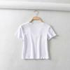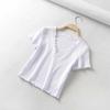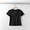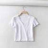 Camiseta de manga corta con cuello en V y encaje a cuadros de color liso para mujer, estilo europeo y americano, C6082