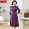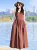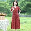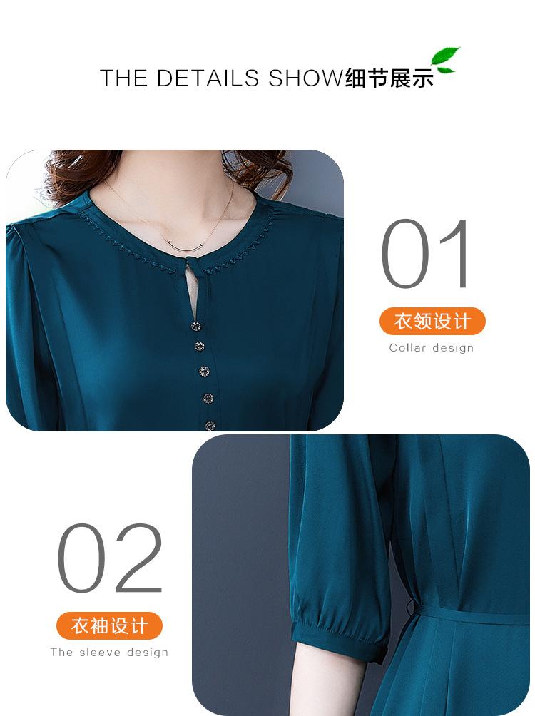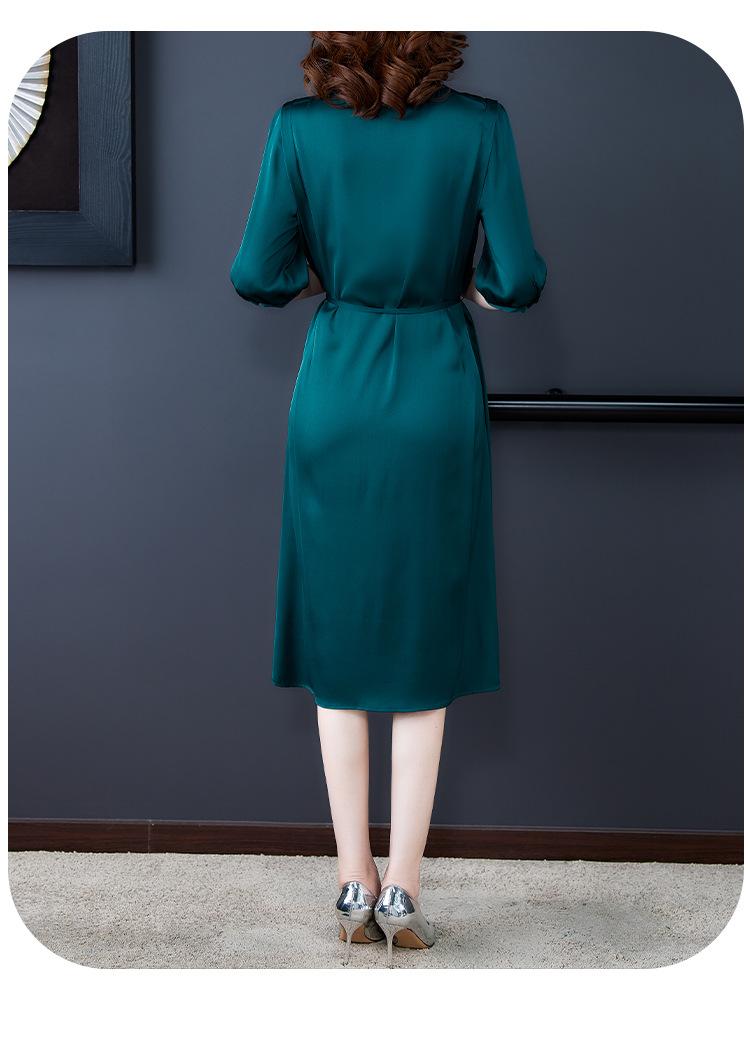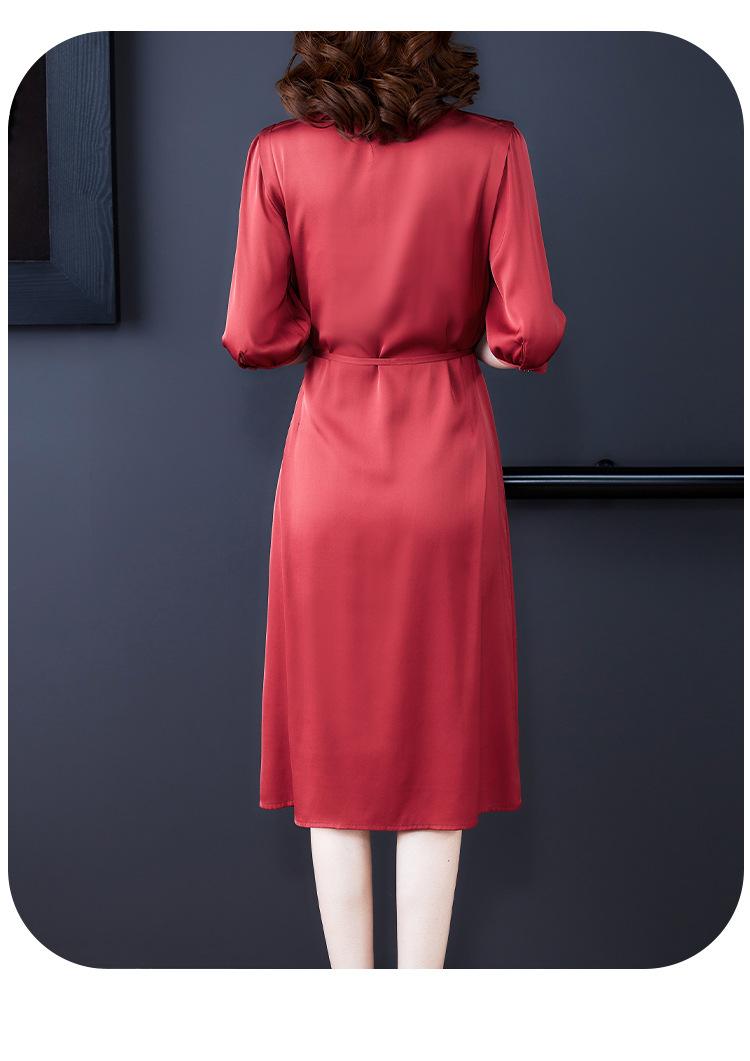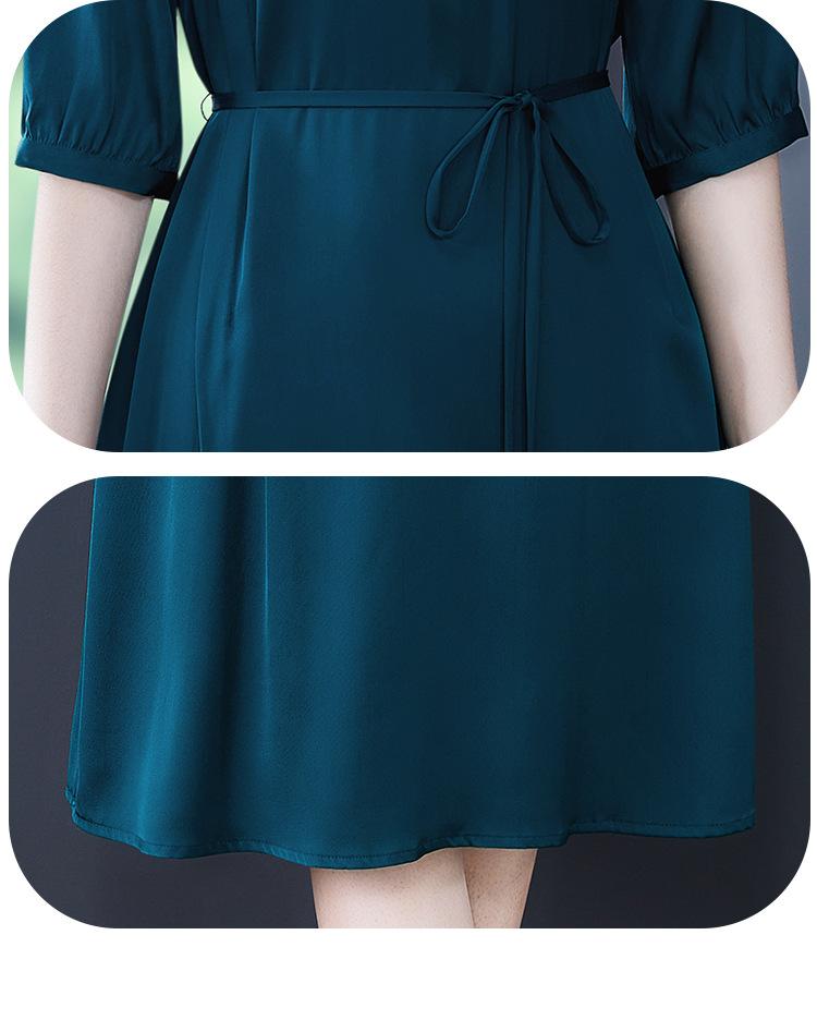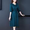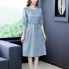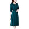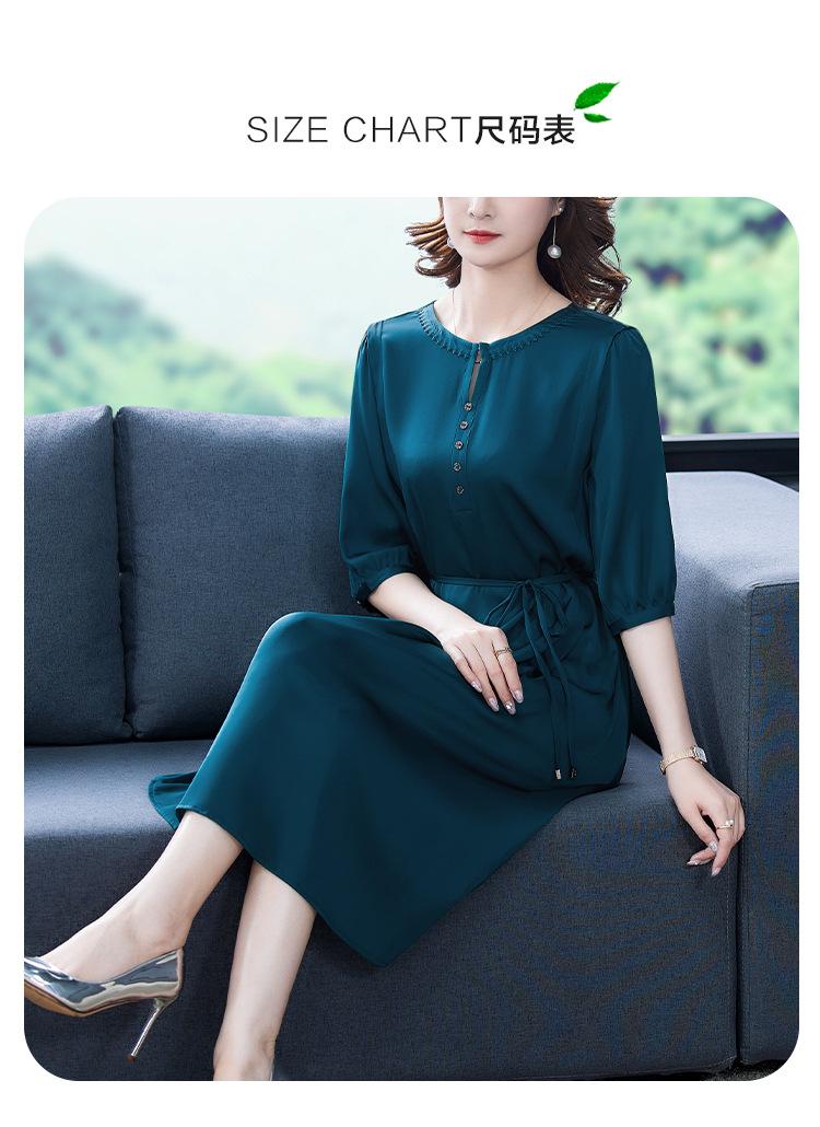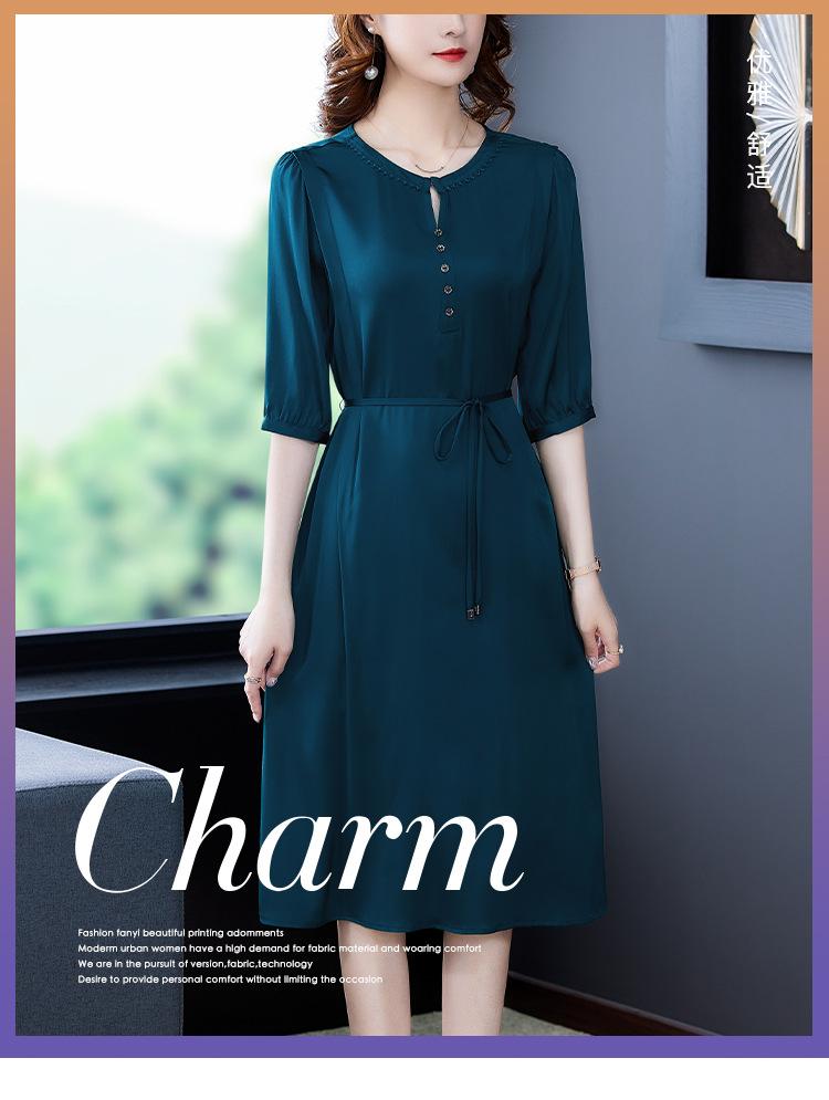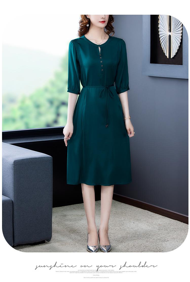 Vestido de Seda de Color Sólido con Cuello Redondo para Mujer 2023 Verano Nuevo Estilo Moda para Madre Retro Ajustado a la Cintura con Cordones Vestido Midi