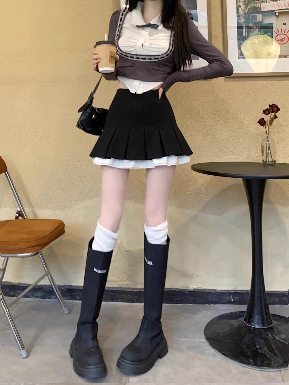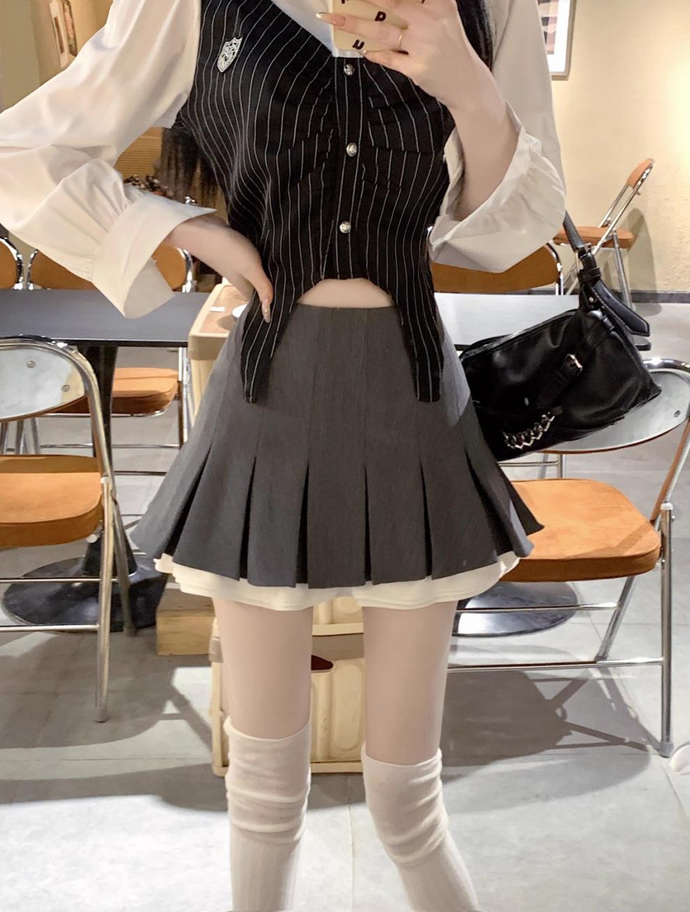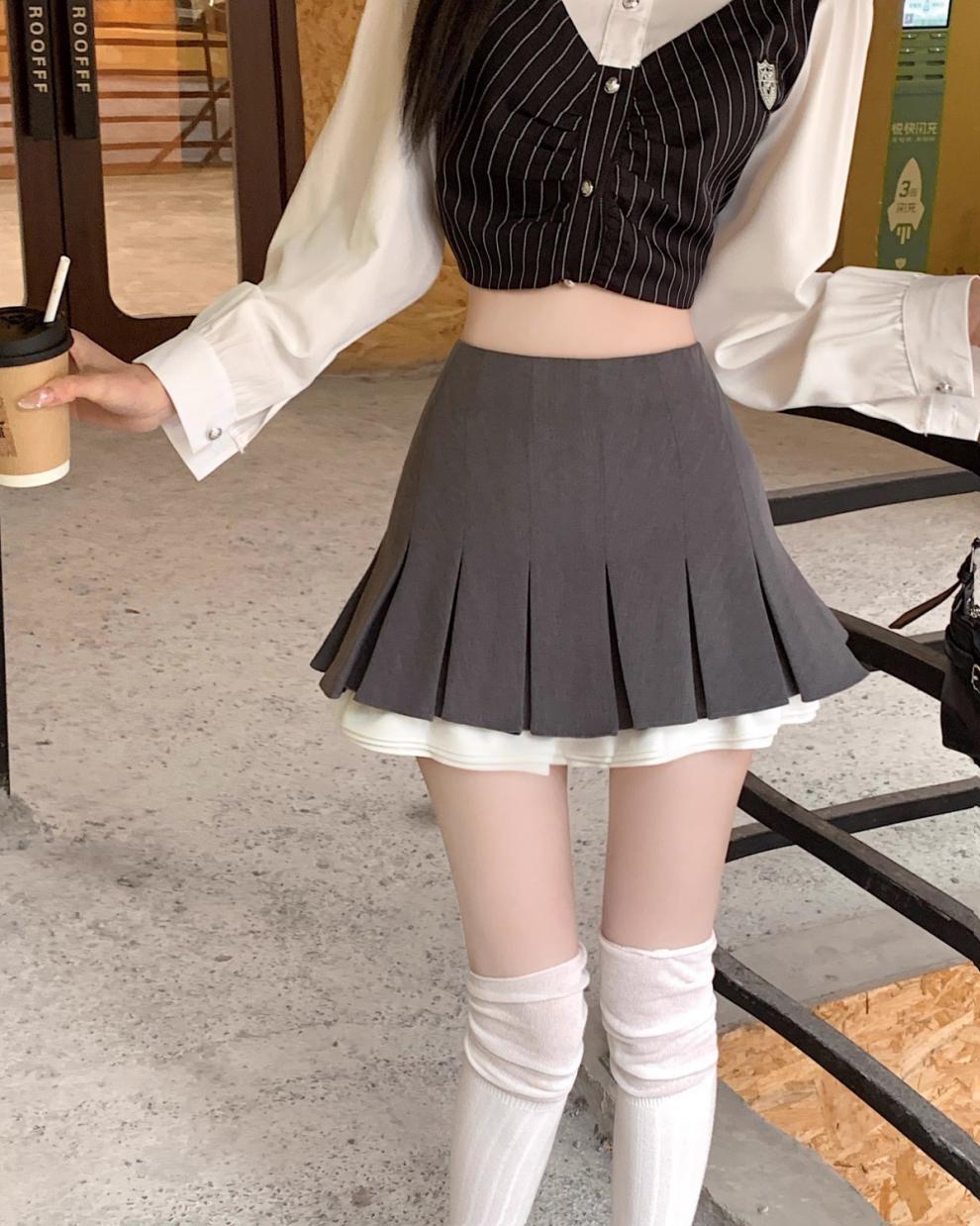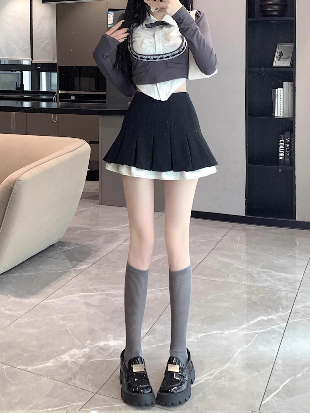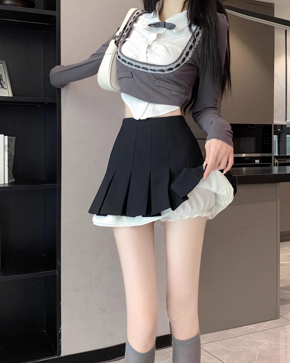 Falda Plisada de Verano para Mujer de Cintura Alta y Corte Ajustado con Costuras de Color en Contraste Dulce y Picante Negro Falda Corta Línea A Anti-transparente Spice Girl