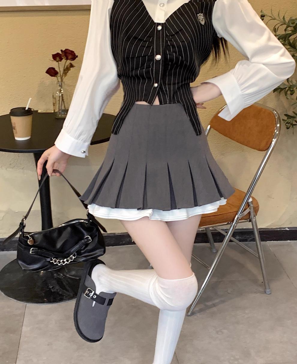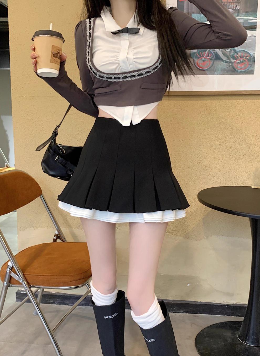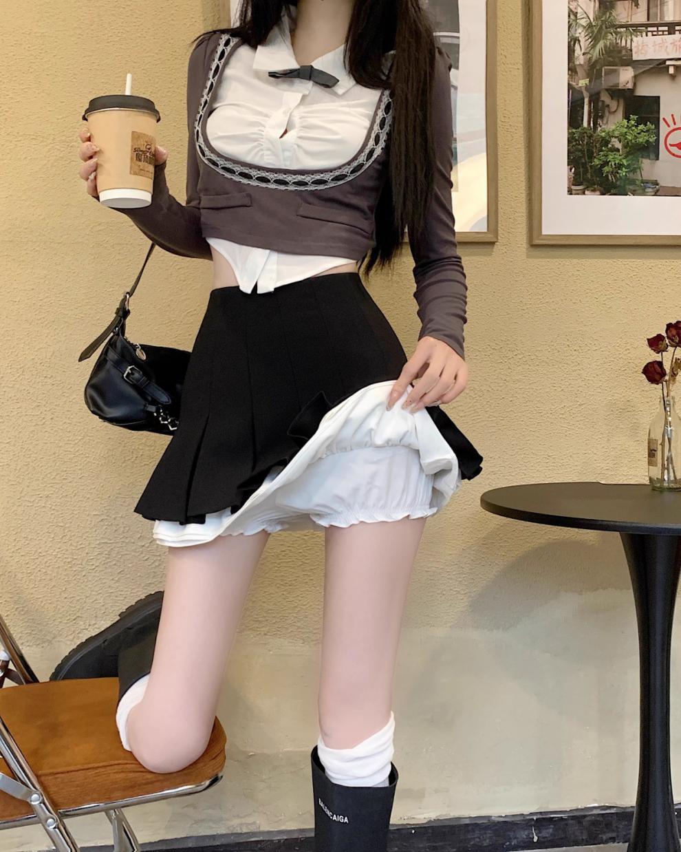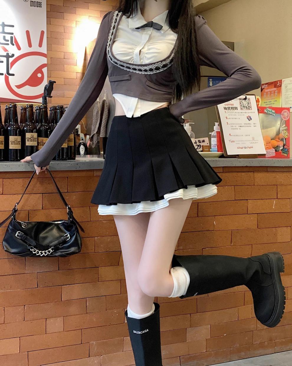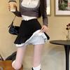 Falda Plisada de Verano para Mujer de Cintura Alta y Corte Ajustado con Costuras de Color en Contraste Dulce y Picante Negro Falda Corta Línea A Anti-transparente Spice Girl