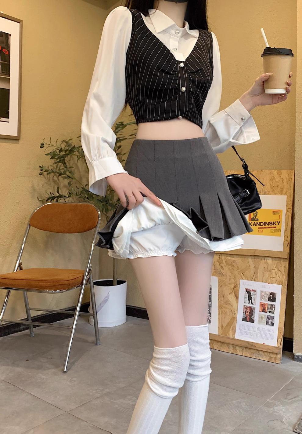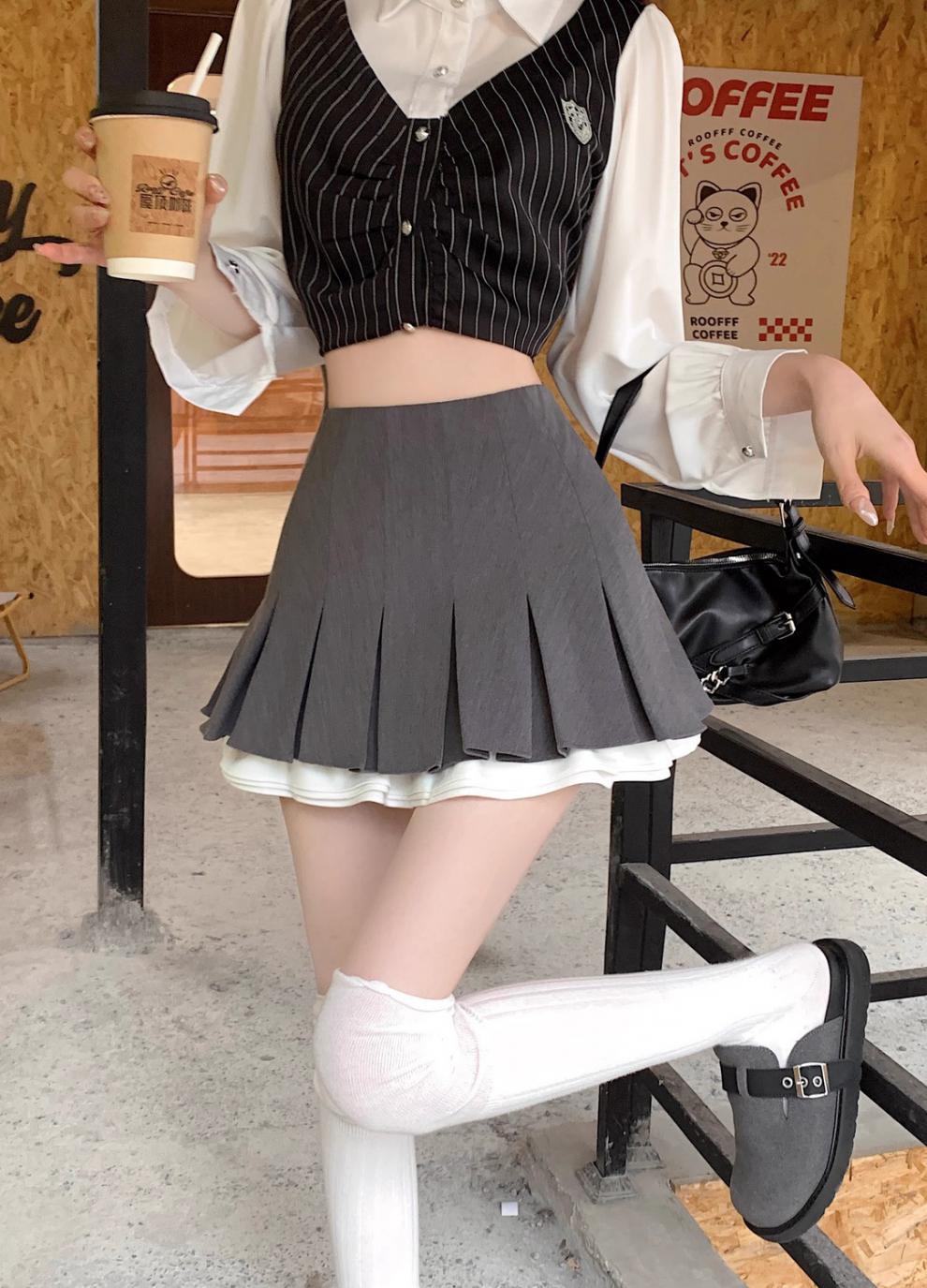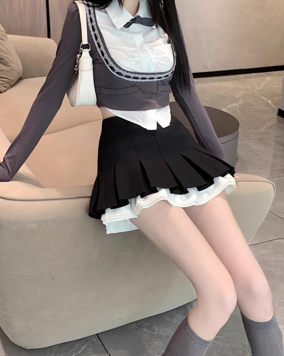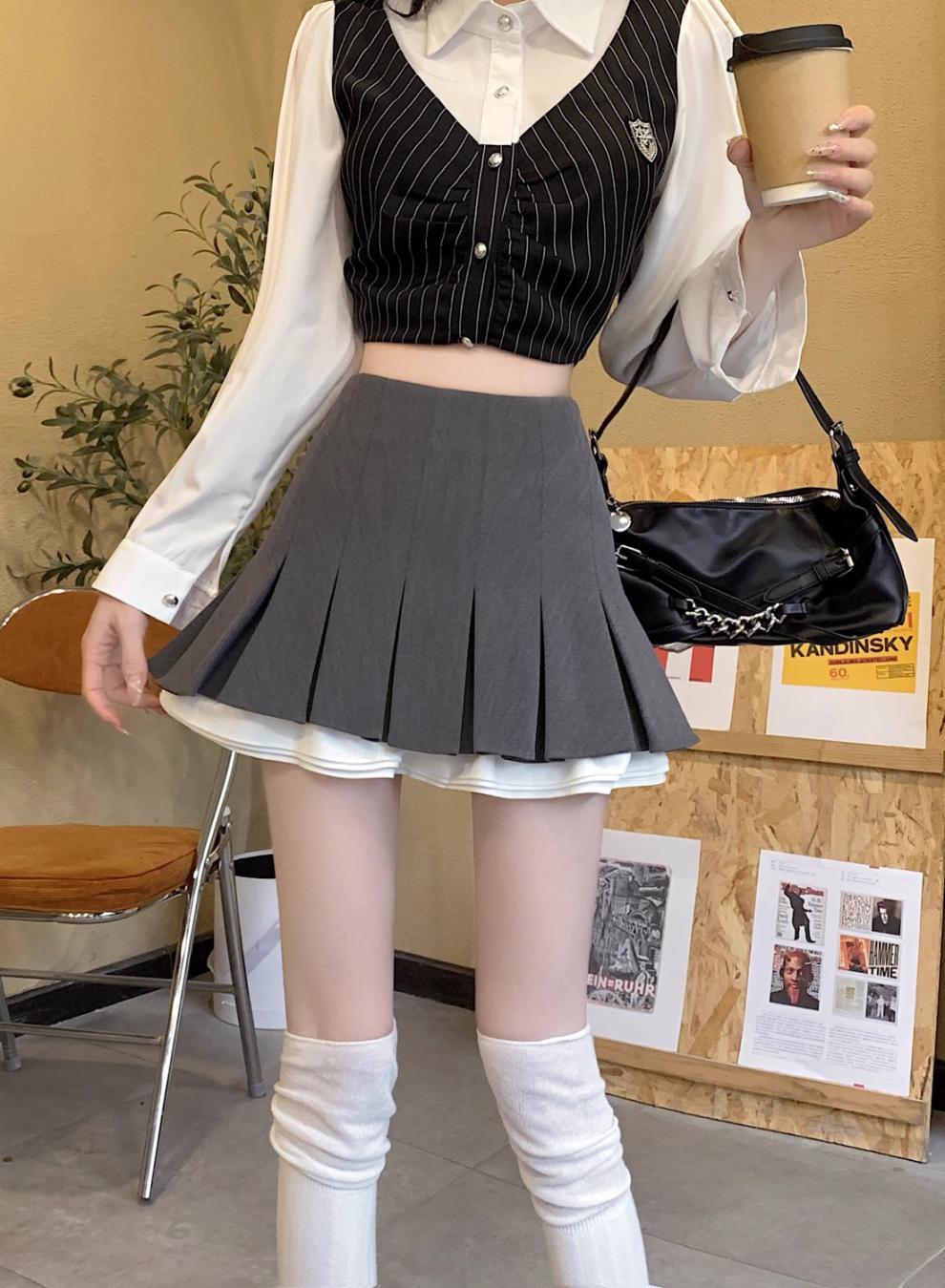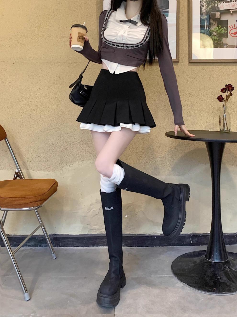 Falda Plisada de Verano para Mujer de Cintura Alta y Corte Ajustado con Costuras de Color en Contraste Dulce y Picante Negro Falda Corta Línea A Anti-transparente Spice Girl