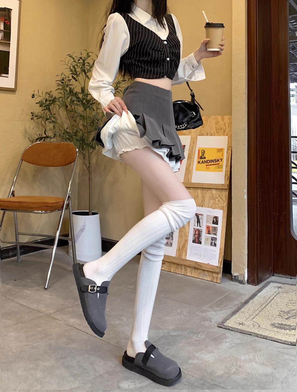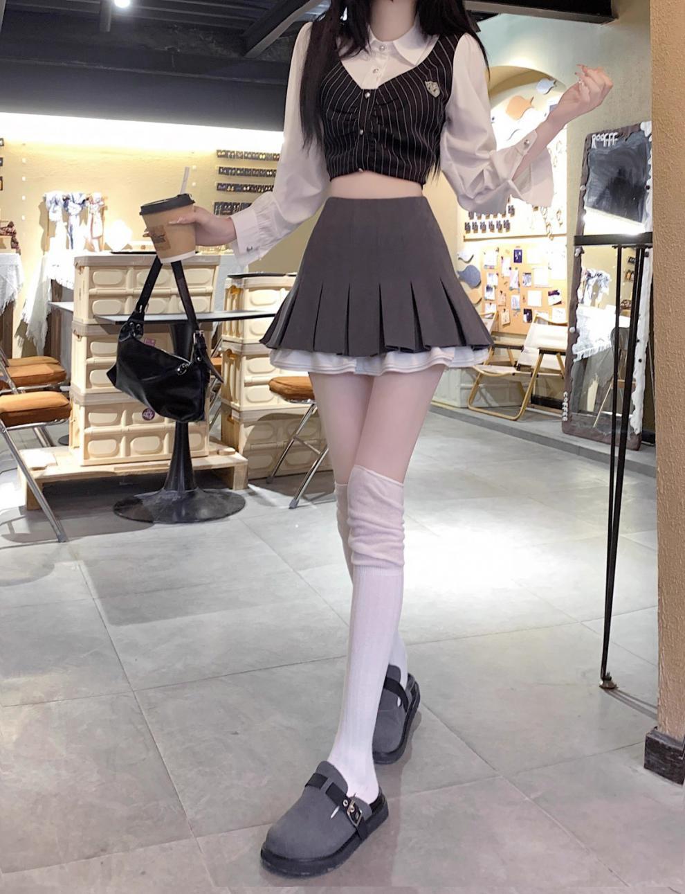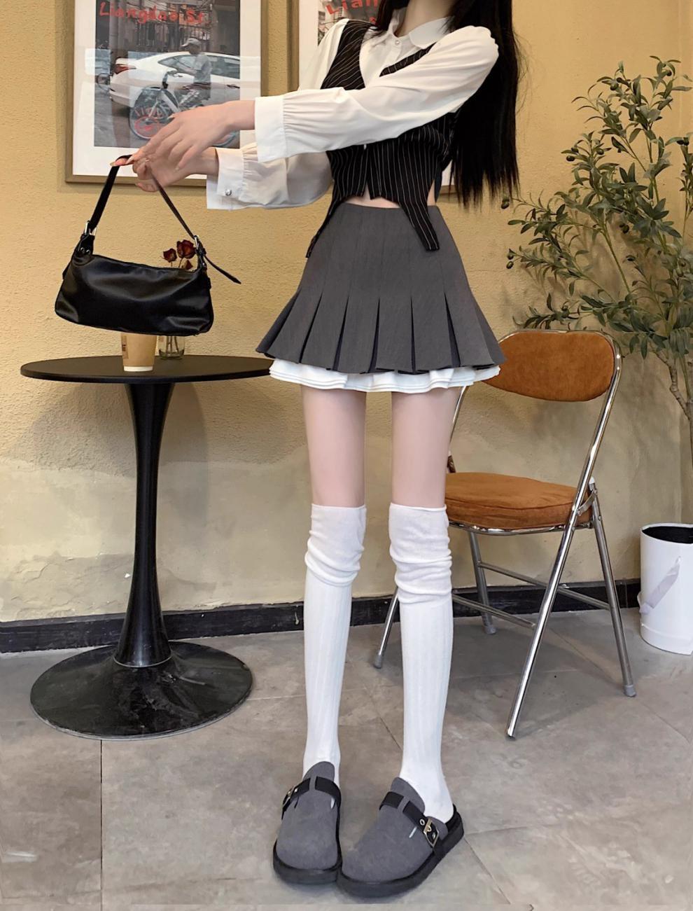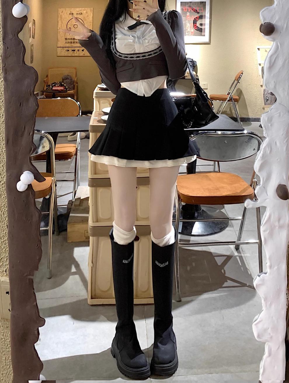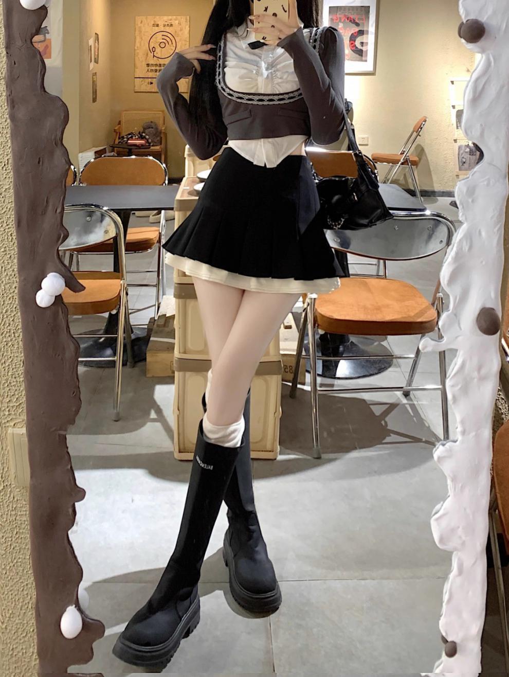 Falda Plisada de Verano para Mujer de Cintura Alta y Corte Ajustado con Costuras de Color en Contraste Dulce y Picante Negro Falda Corta Línea A Anti-transparente Spice Girl