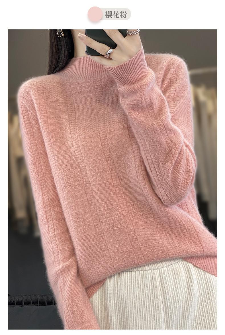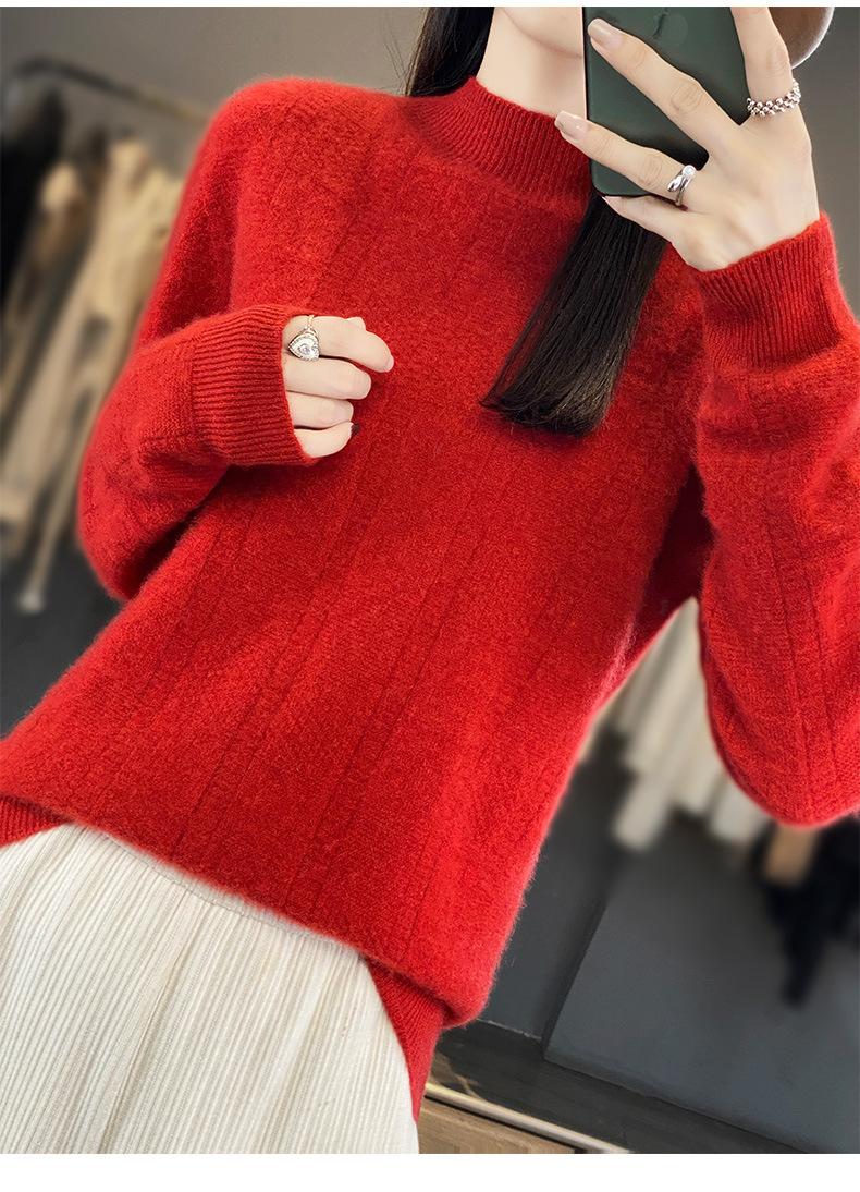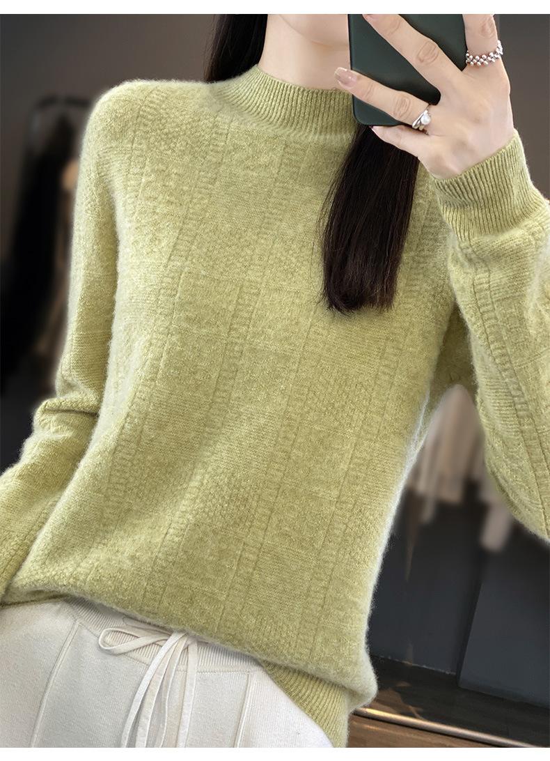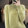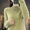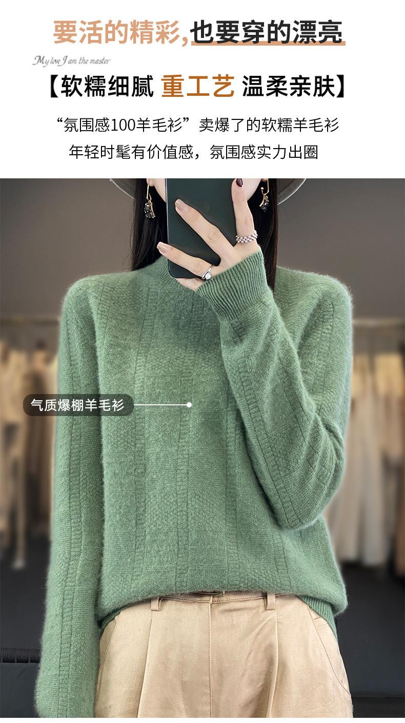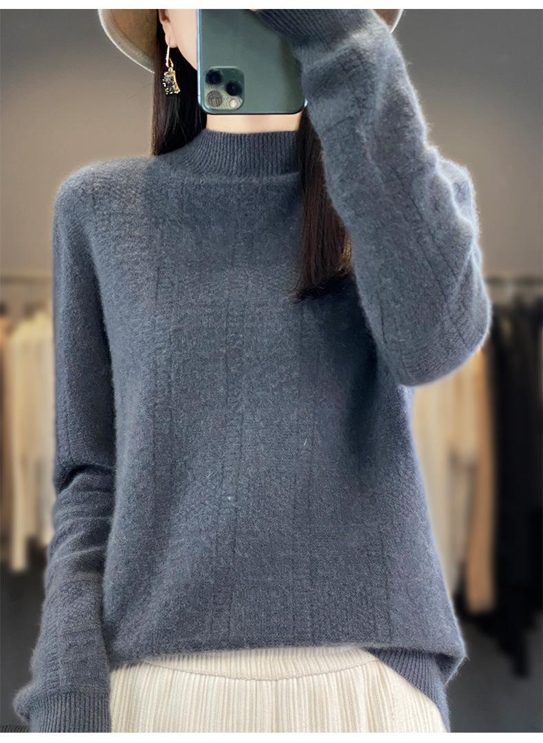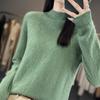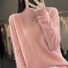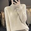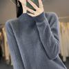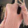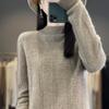 Otoño e Invierno nuevo suéter de lana pura para mujer suéter medio cuello alto estilo occidental suelto color sólido lana tejido camisa básica