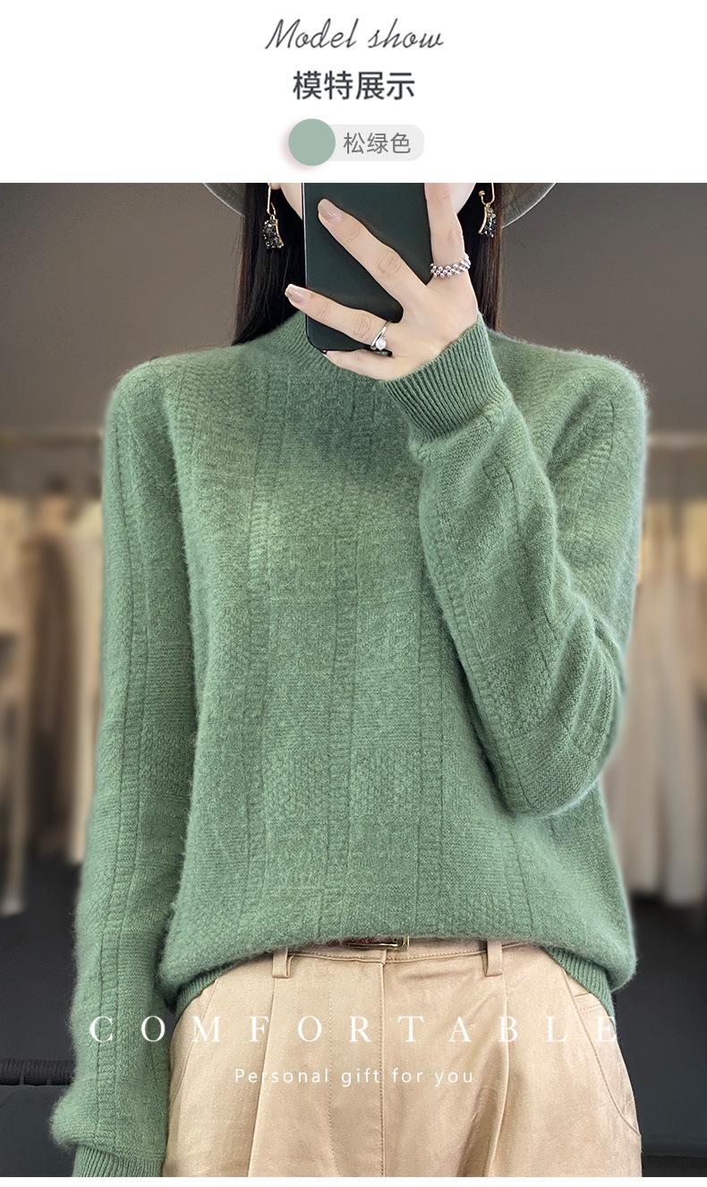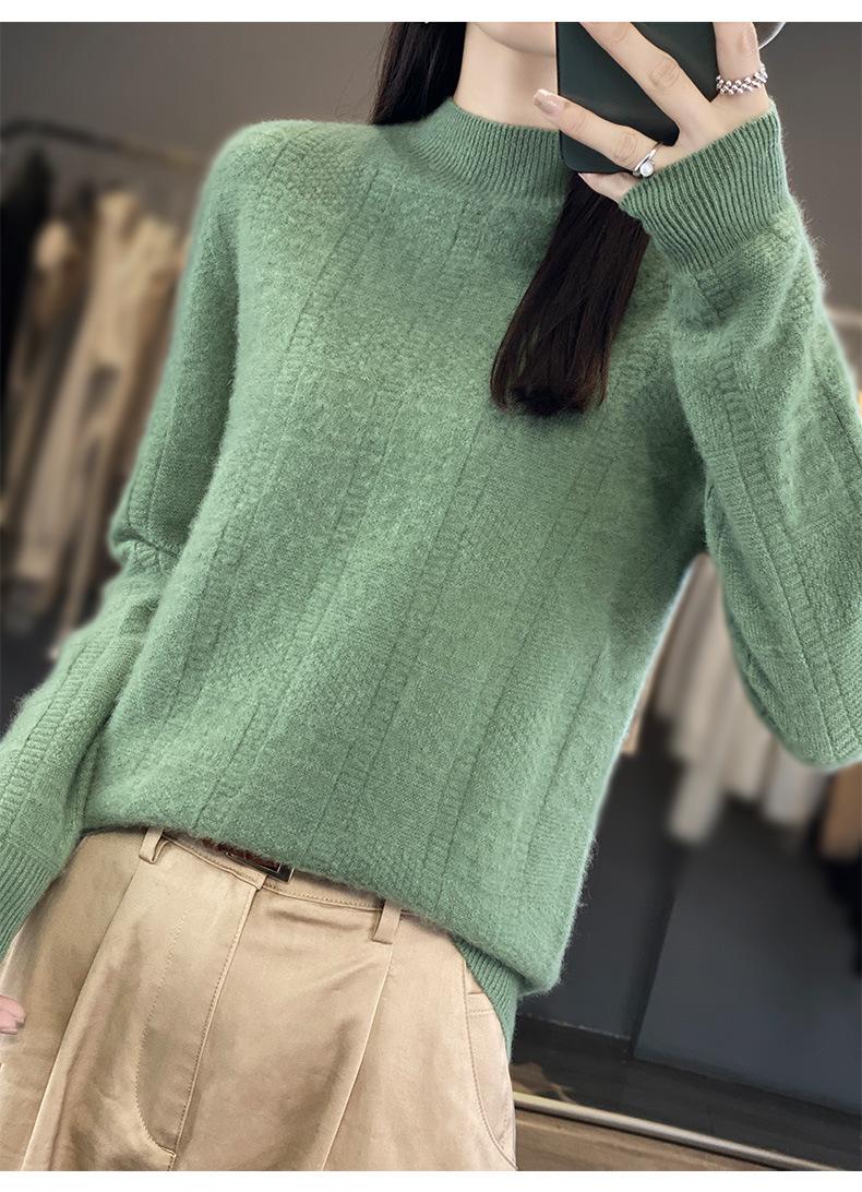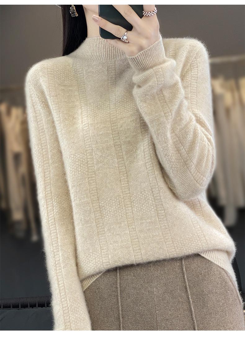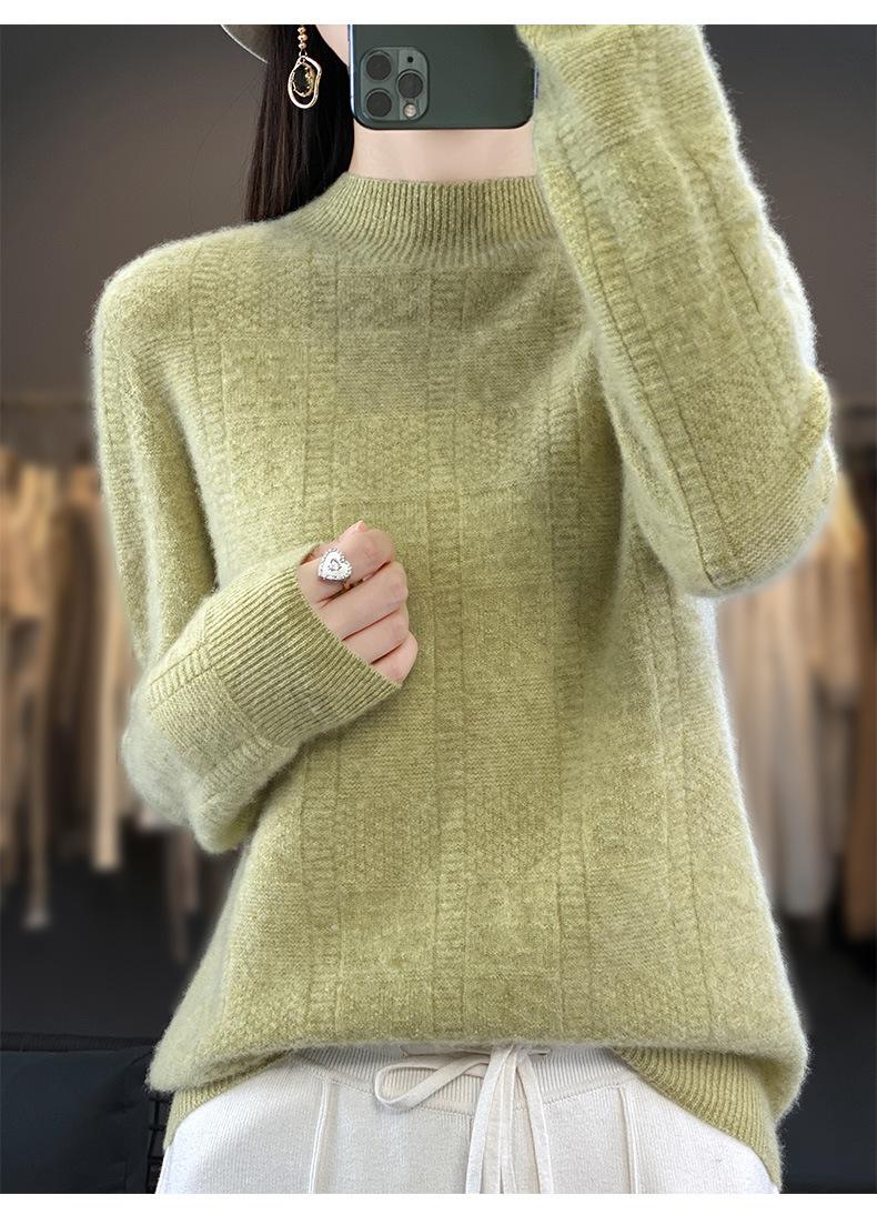 Otoño e Invierno nuevo suéter de lana pura para mujer suéter medio cuello alto estilo occidental suelto color sólido lana tejido camisa básica