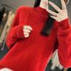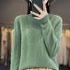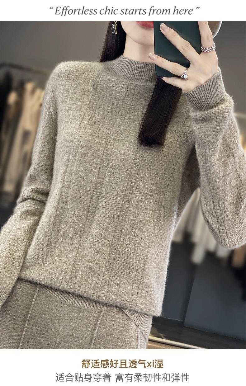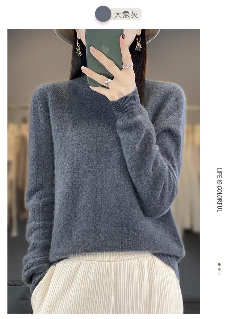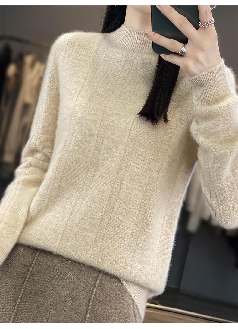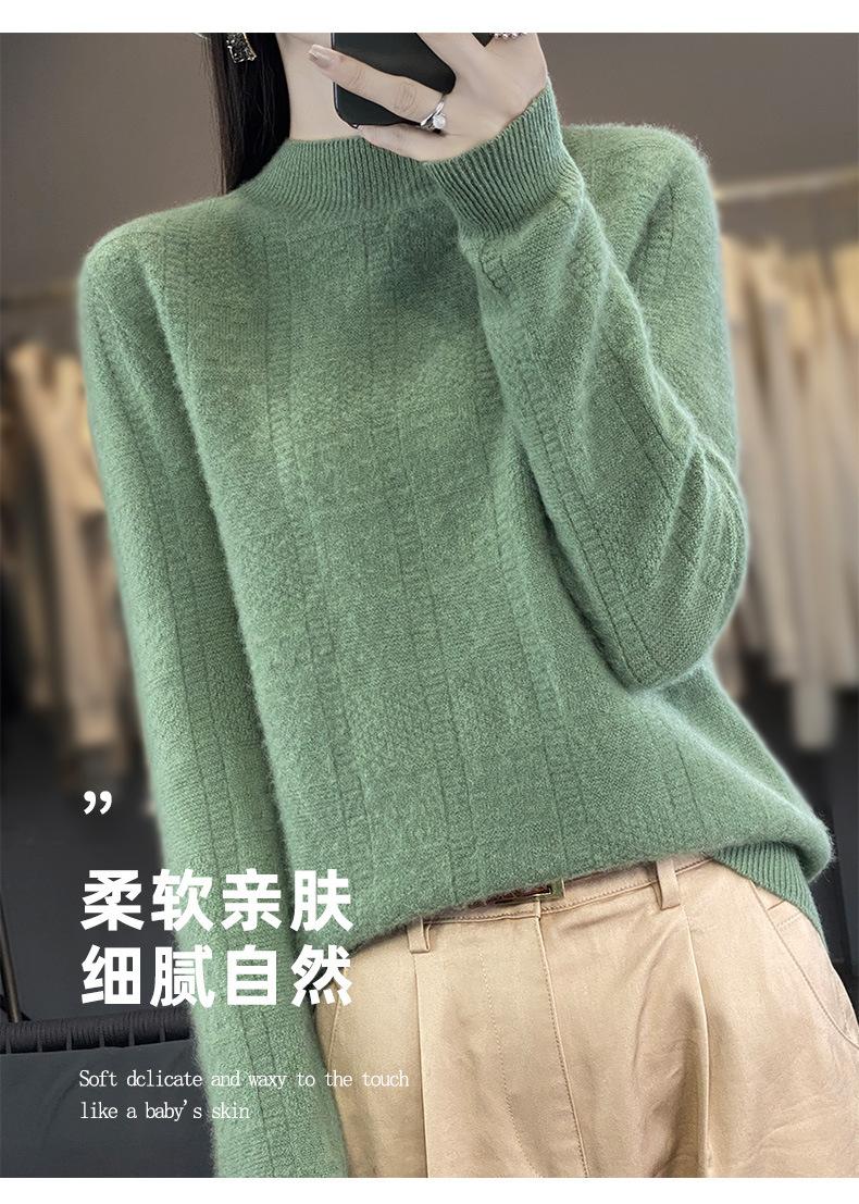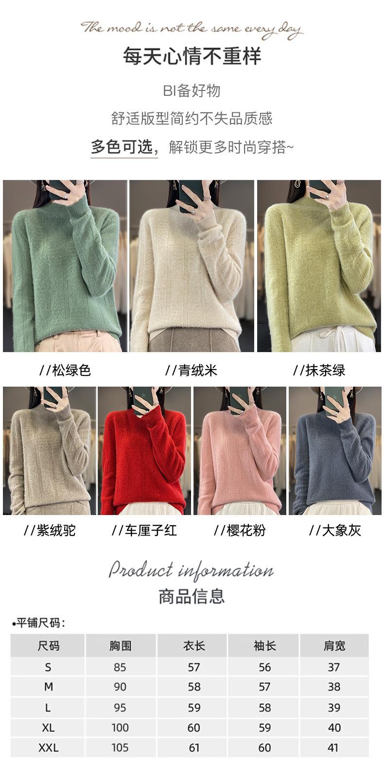 Otoño e Invierno nuevo suéter de lana pura para mujer suéter medio cuello alto estilo occidental suelto color sólido lana tejido camisa básica