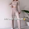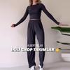 Otoño 2023, nuevo traje informal a juego con cuello redondo, manga larga y parte superior del ombligo, color sólido, Amazon transfronterizo, estilo europeo y americano