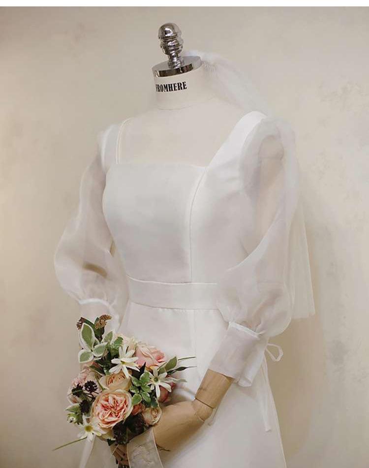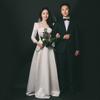 Vestido de Novia Francés Ligero Satén Blanco Novia 2025 Nuevo Sencillo Manga Larga Cola de Pez Retro Para Salir Gasa Largo hasta el Piso