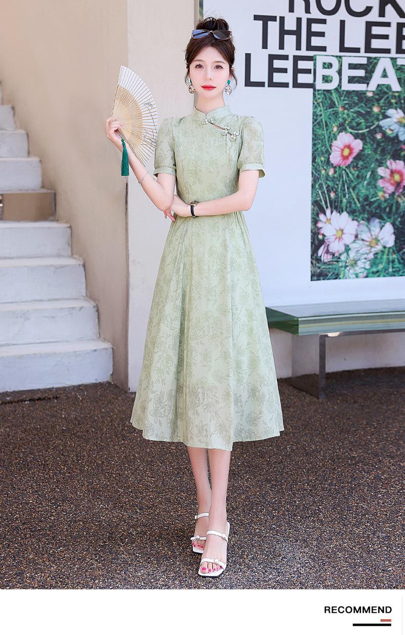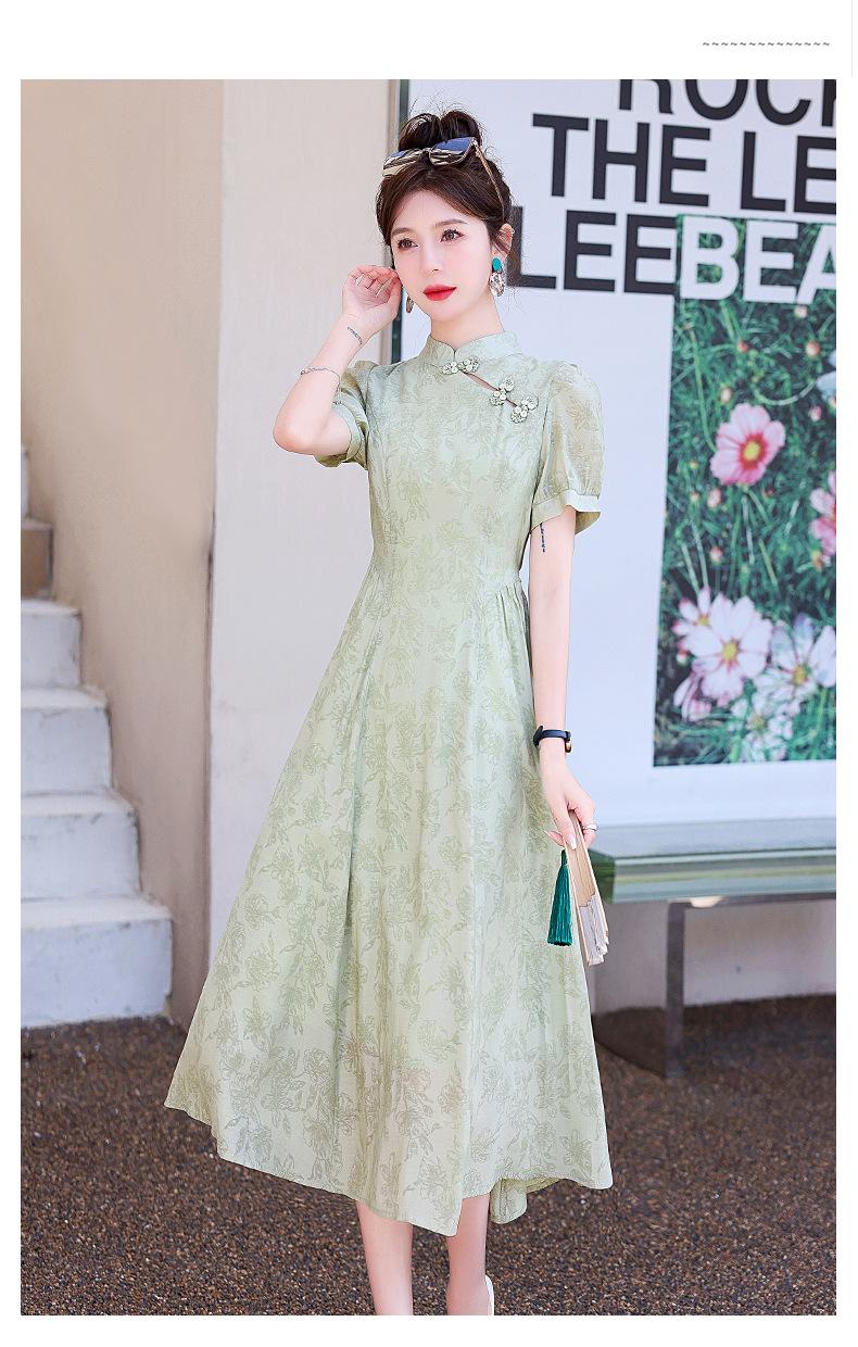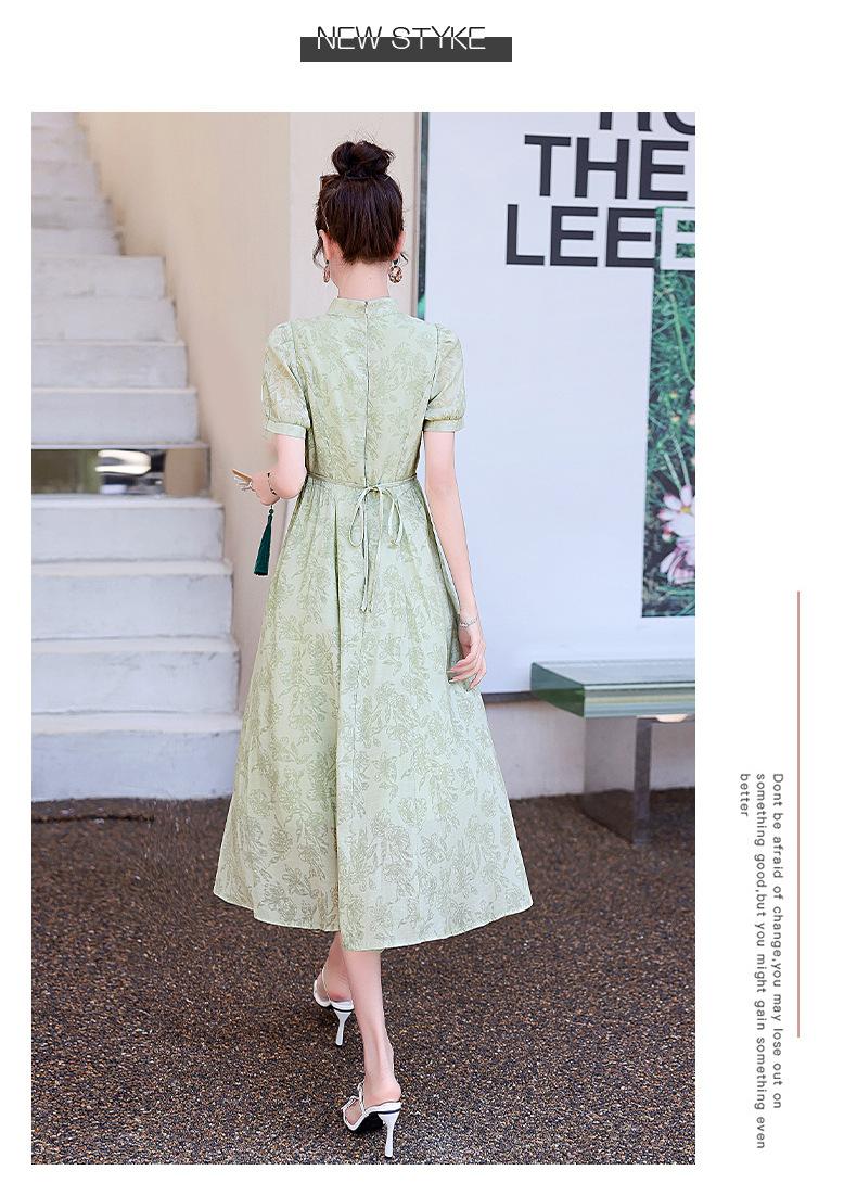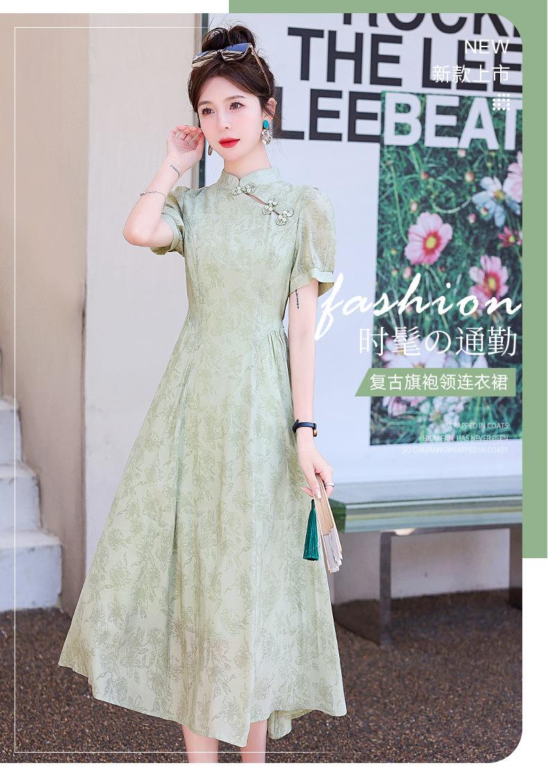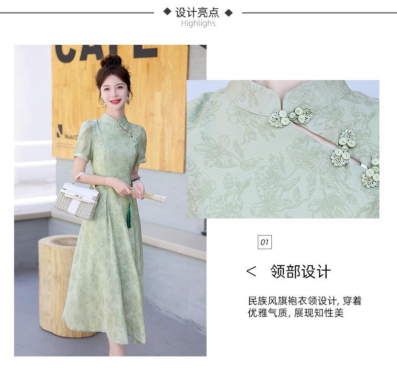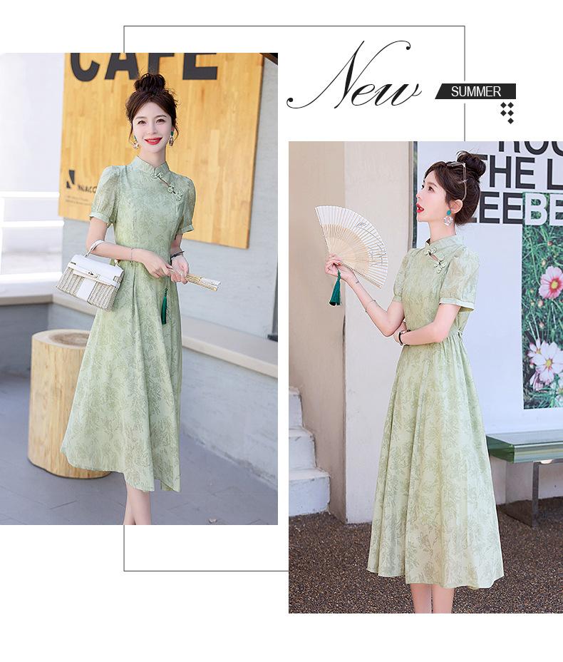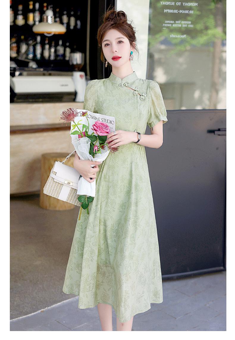 Nuevo vestido estilo chino ligero estilo nacional cintura ajustada para mujer verano 2024 nuevo botón retro mejorado cheongsam longitud media