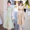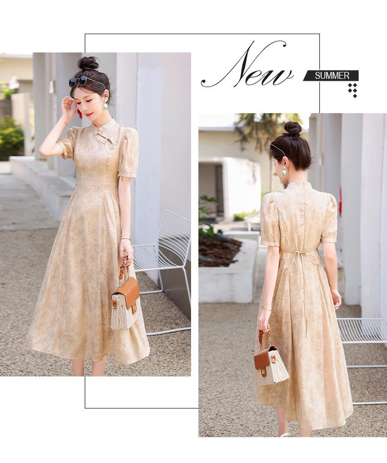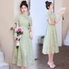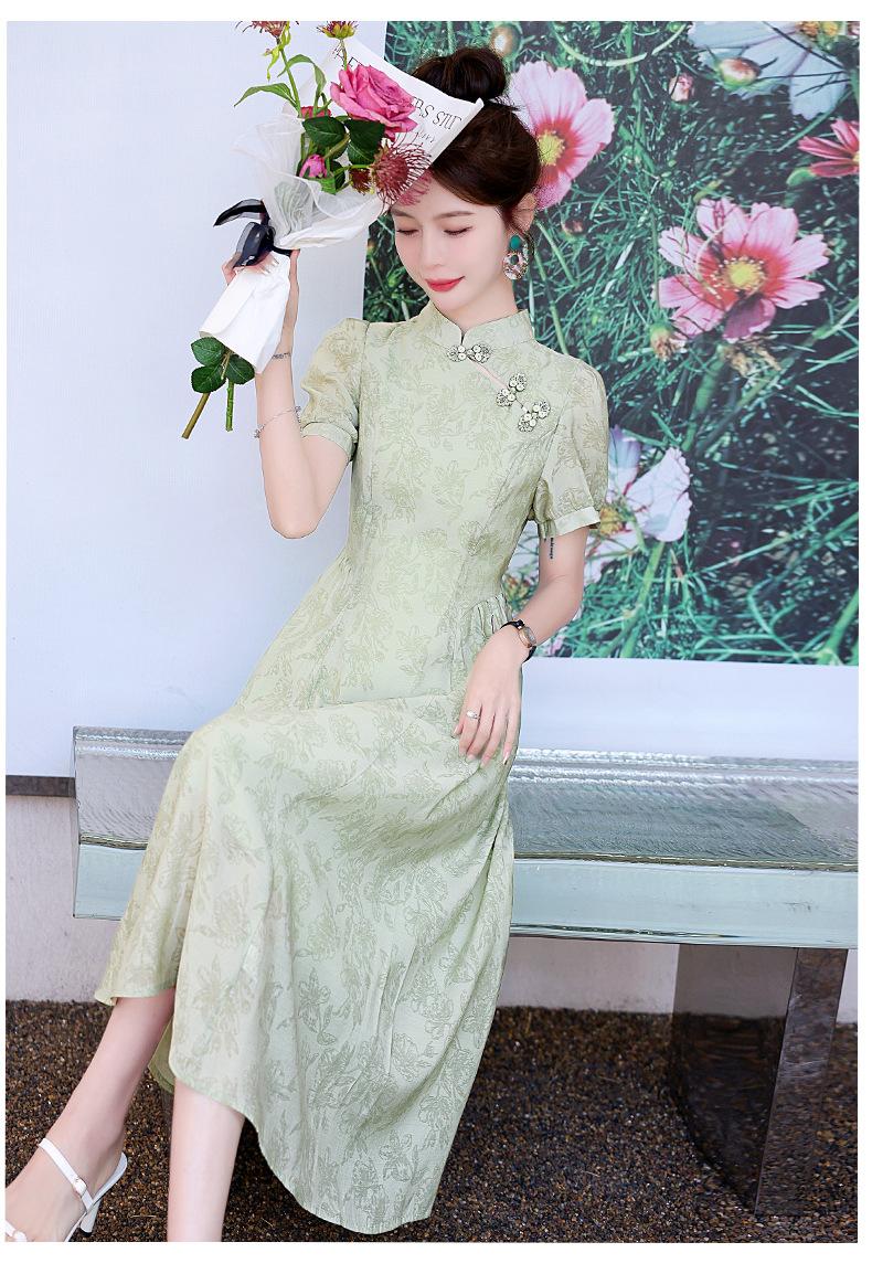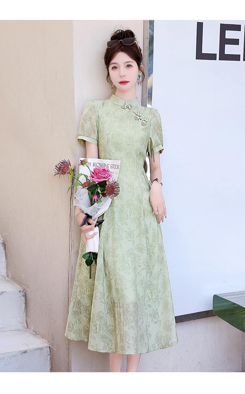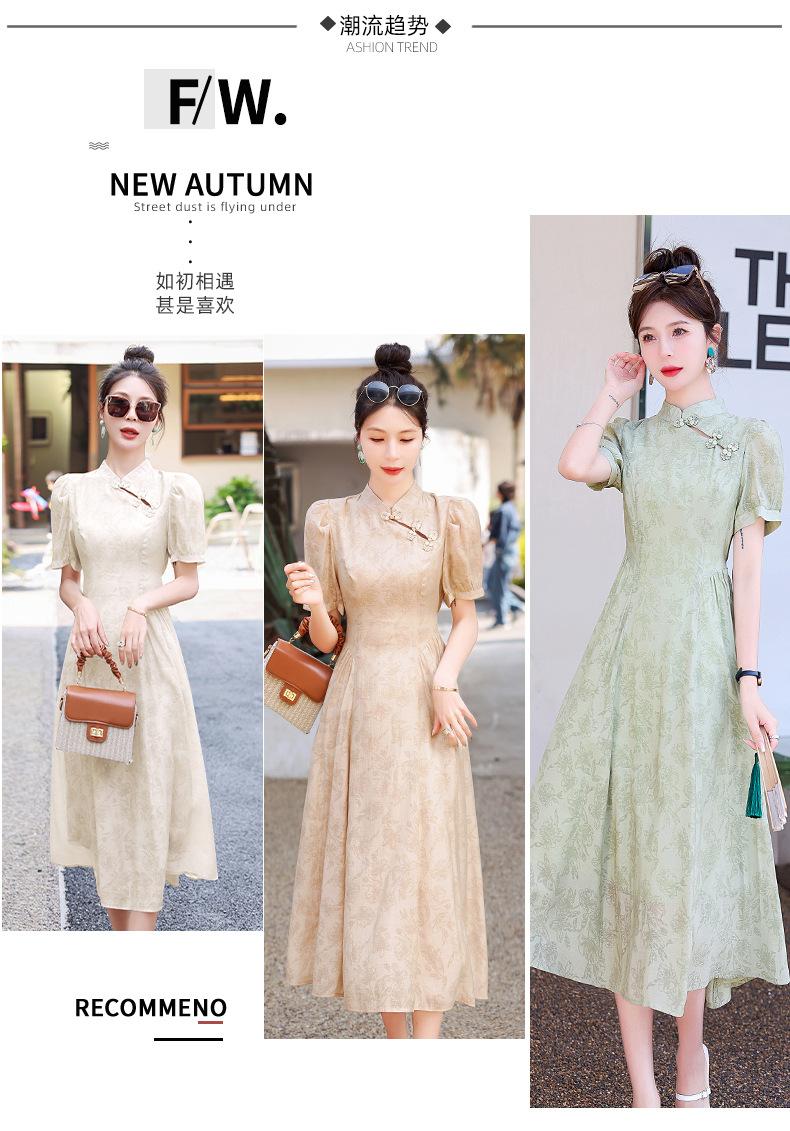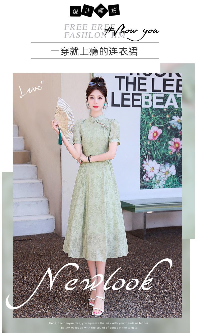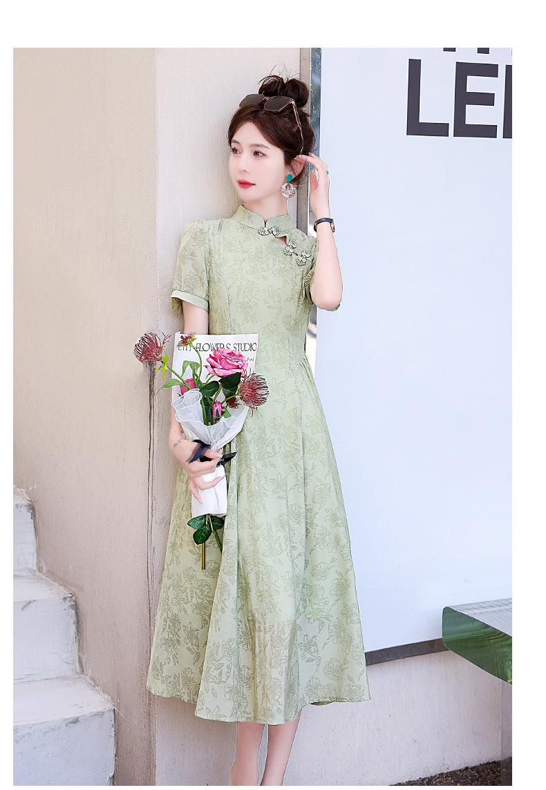 Nuevo vestido estilo chino ligero estilo nacional cintura ajustada para mujer verano 2024 nuevo botón retro mejorado cheongsam longitud media