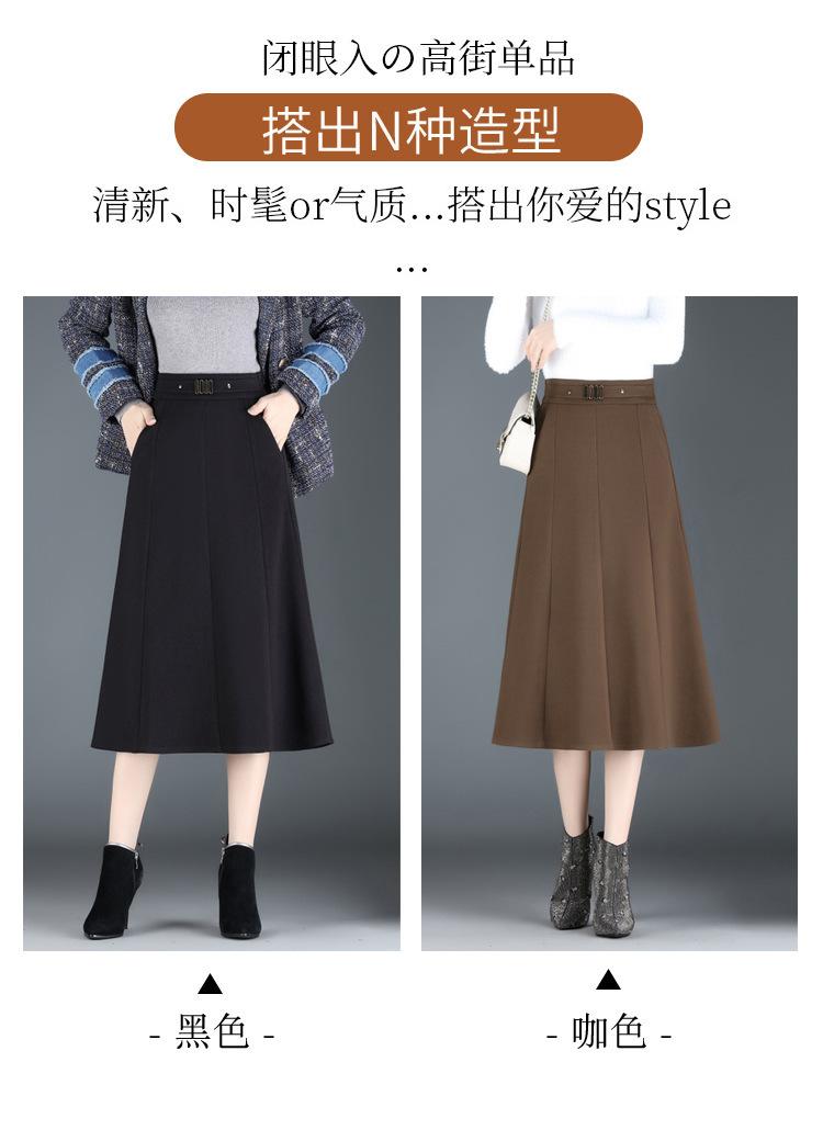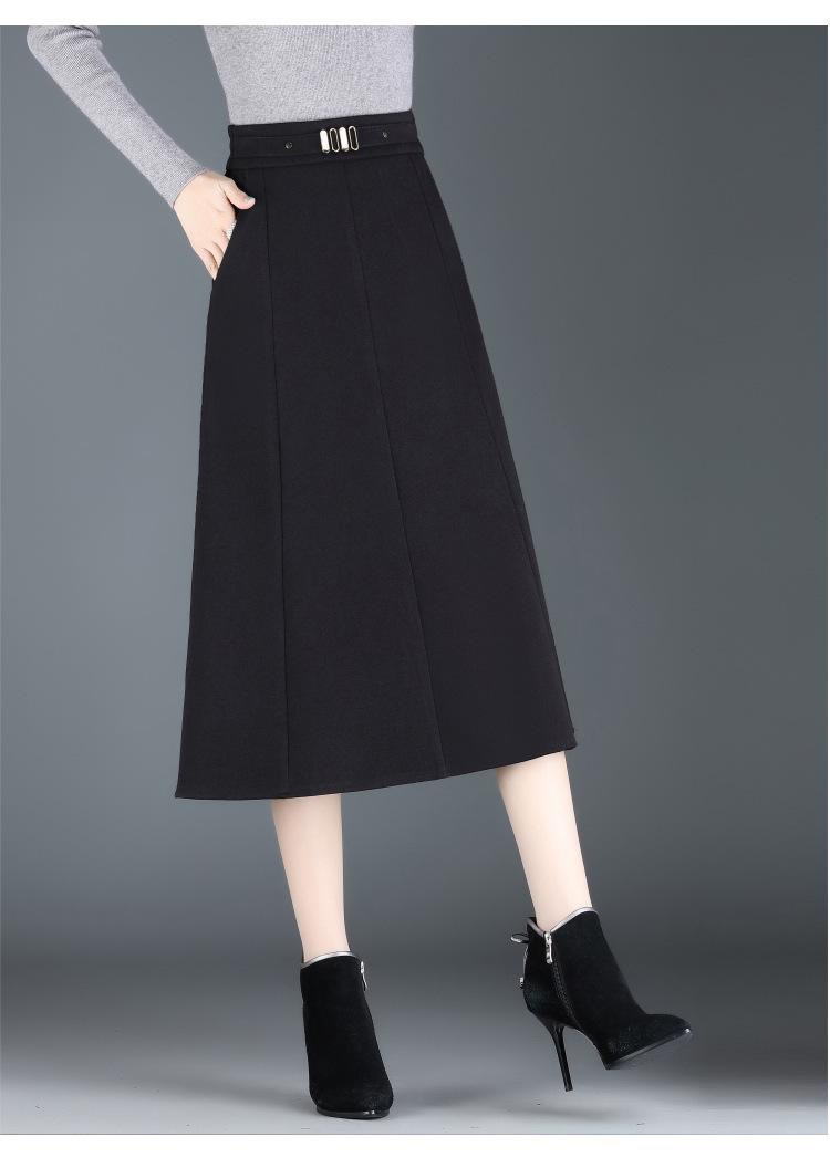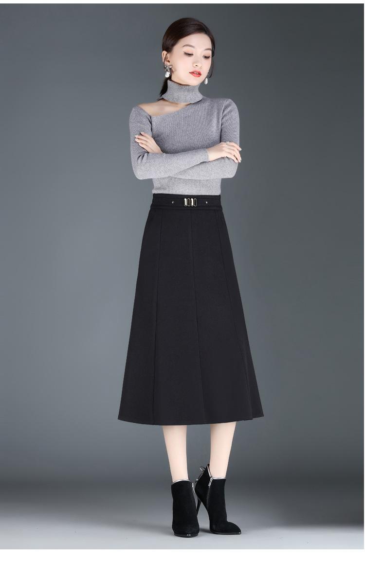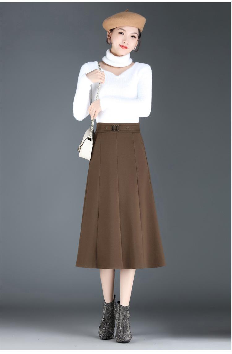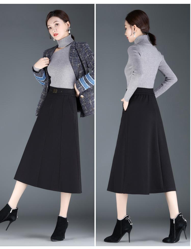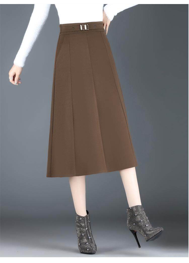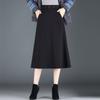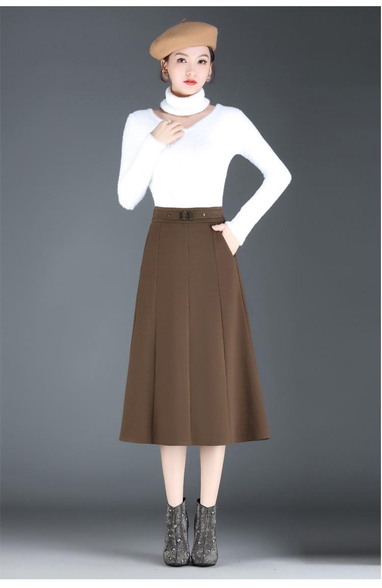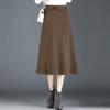 Elegante Falda A-line de Lana para Mujer 2024 Otoño e Invierno Nueva Falda Midi Plisada Adelgazante de Cintura Alta