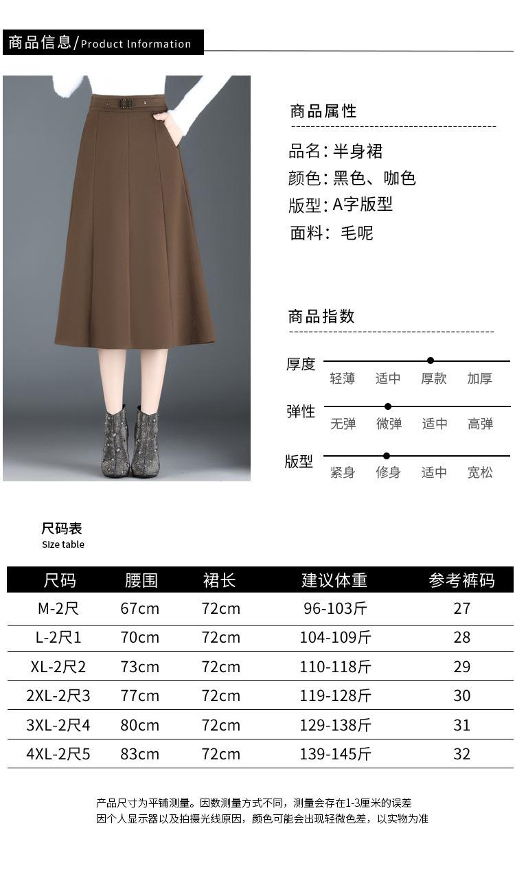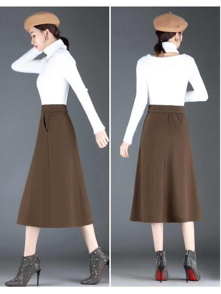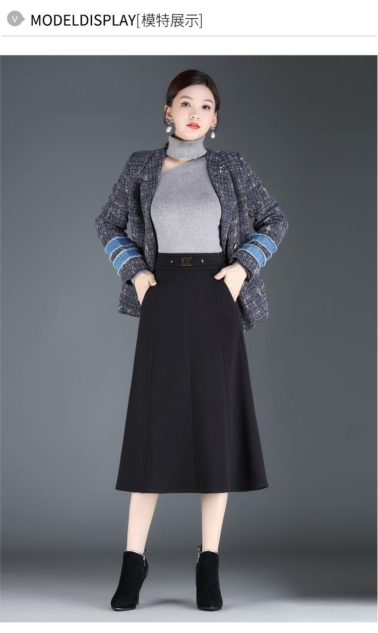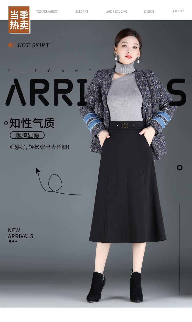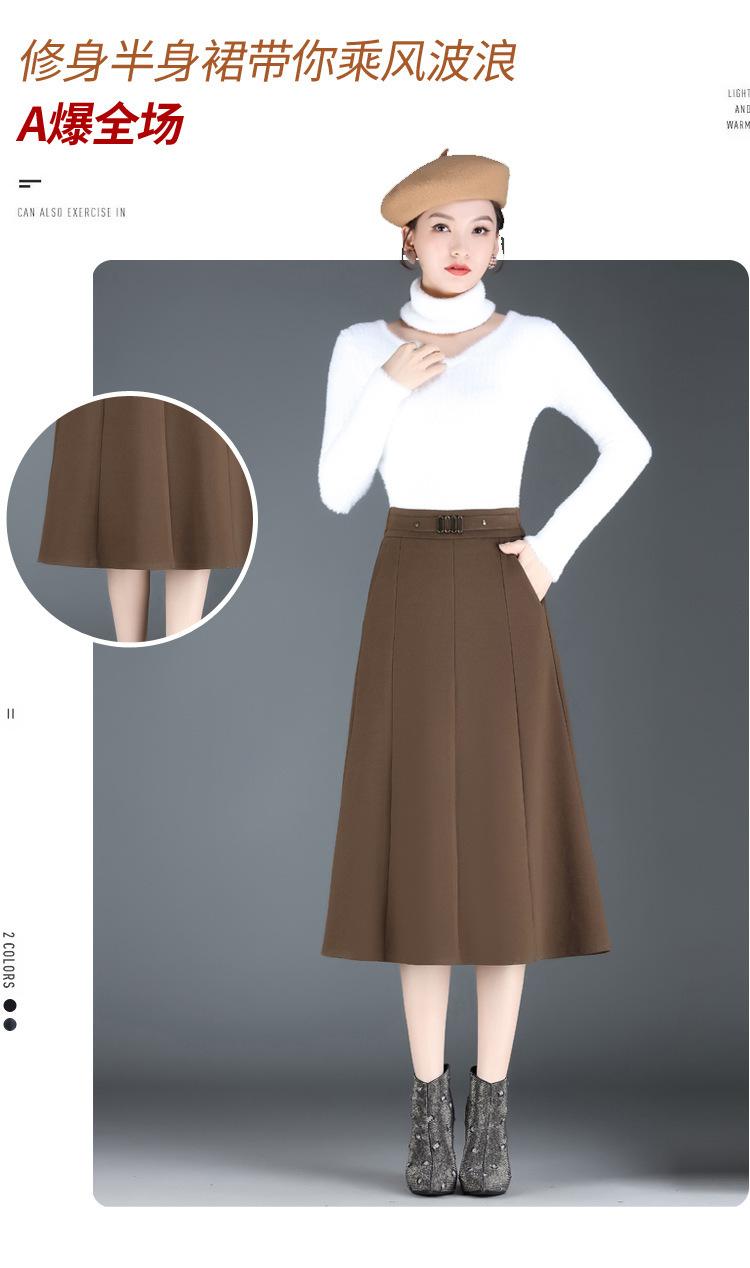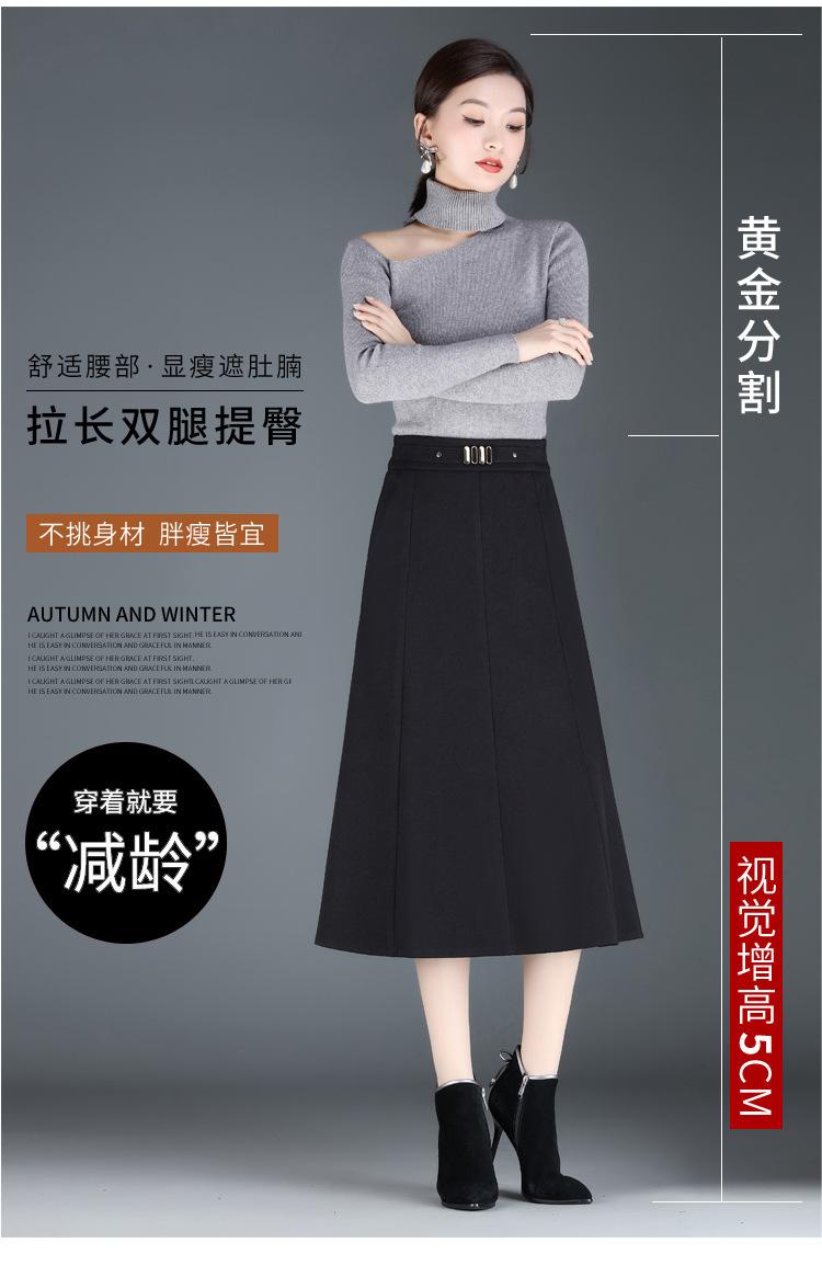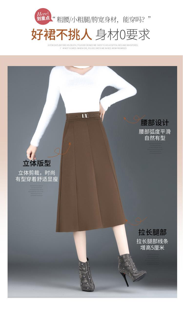 Elegante Falda A-line de Lana para Mujer 2024 Otoño e Invierno Nueva Falda Midi Plisada Adelgazante de Cintura Alta