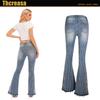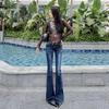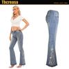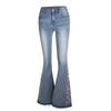 Pantalones vaqueros acampanados para mujer, de la industria pesada europea y americana, con bordado 3D, pantalones vaqueros para mujer, pantalones acampanados a rayas