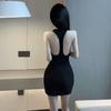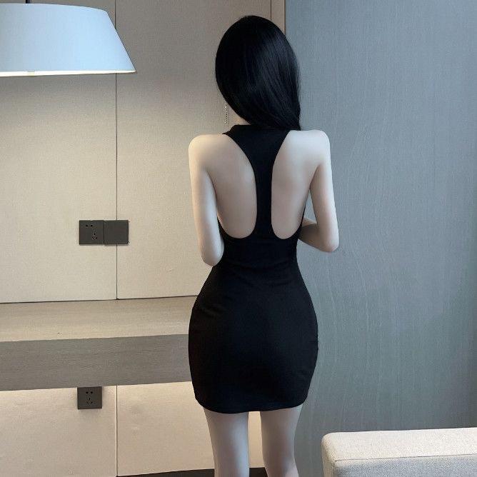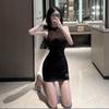 Vestido negro sexy para chica caliente, nuevo verano 2023, falda a la cadera con bolso, falda adelgazante, estilo puro deseo.