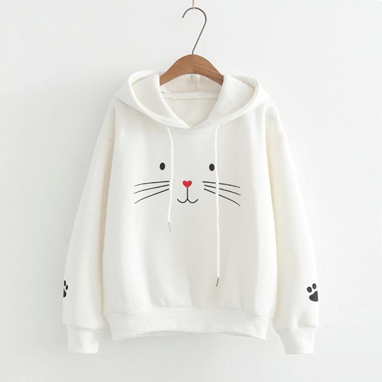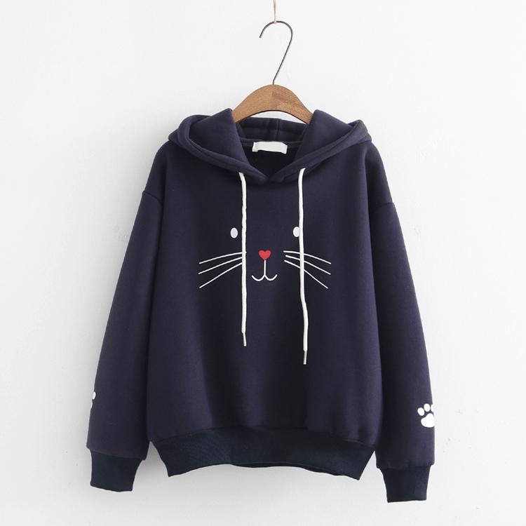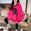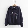 Suéter de Terciopelo para Estudiantes de Otoño Temprano Coreano Bordado Suelto Cuello Alto Cara de Gato Sudadera con Capucha Ropa de Clase Combinable Ropa para Niñas